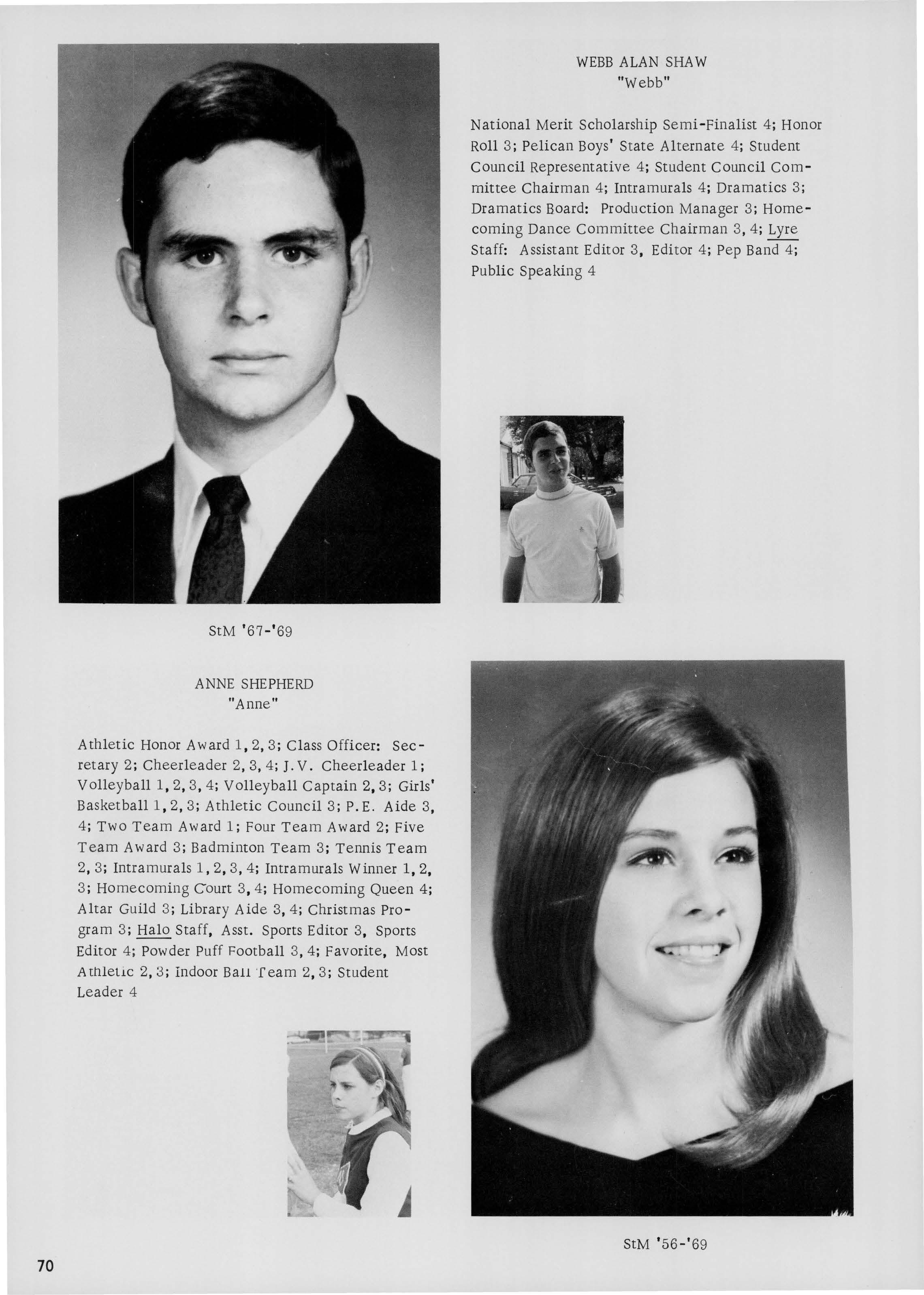 All of these have been captured most eloquently in this 1969 volume ofTheSHIELD. To Mrs. Horace Vallas, the faculty sponsor, to Miss Lee Edwards, the editor-in-chief, and all the members of her staff, we express a grateful "well done."