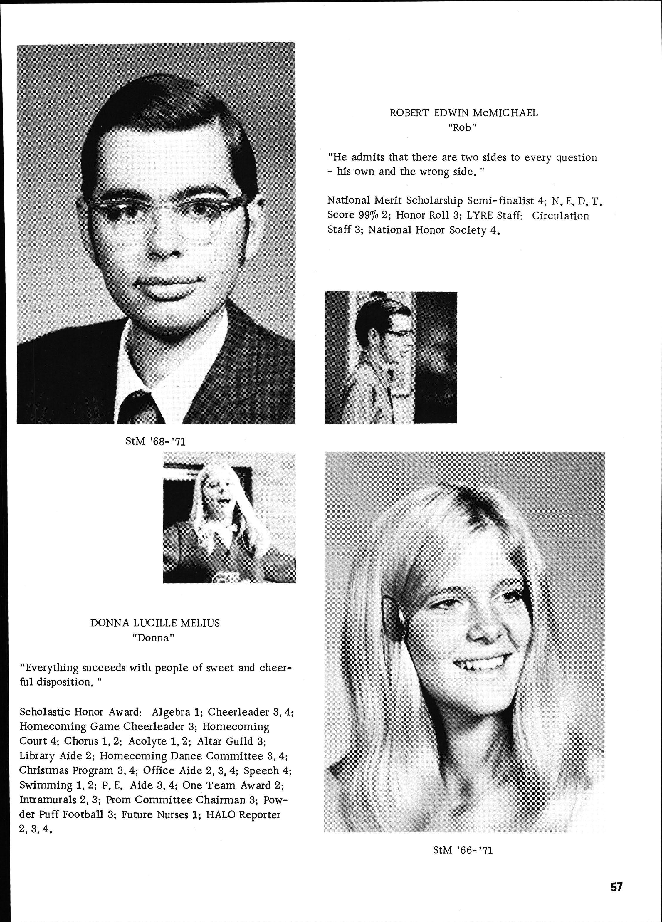 At St. Martin's, as in most other secondary schools, there has been considerable change in the mathematics curriculum. For the L970 -71 year, we have offered calculus for the tirst time. This is an advanced placement course and may earn college credit for those who pass the advanced placement exam with a sufficiently high score. Only those ,rrdents who have taken Math IV in their junior year will be qualified for the calculus course.