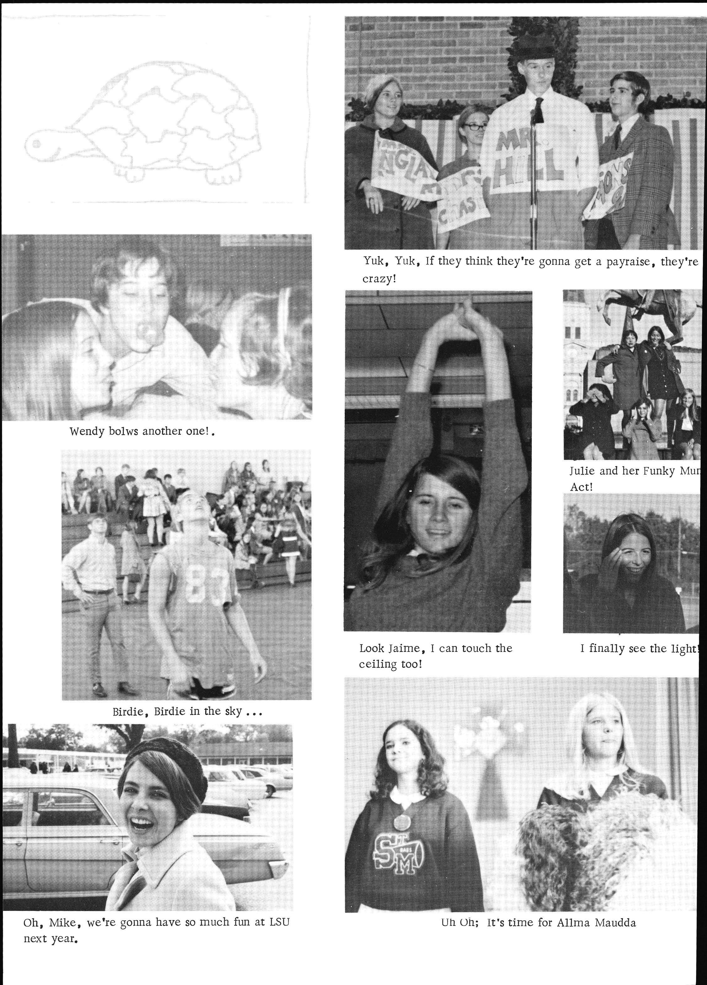 JUNIORS SHOOT THE MOON! making stars, and more stars, and more stars? the TKO dating service? bouncing grits in the c afeteria? the car showroom we made out of the parking lot? Calhoun and her animal imitations? the great loss to the StM football line when Calhoun left ?