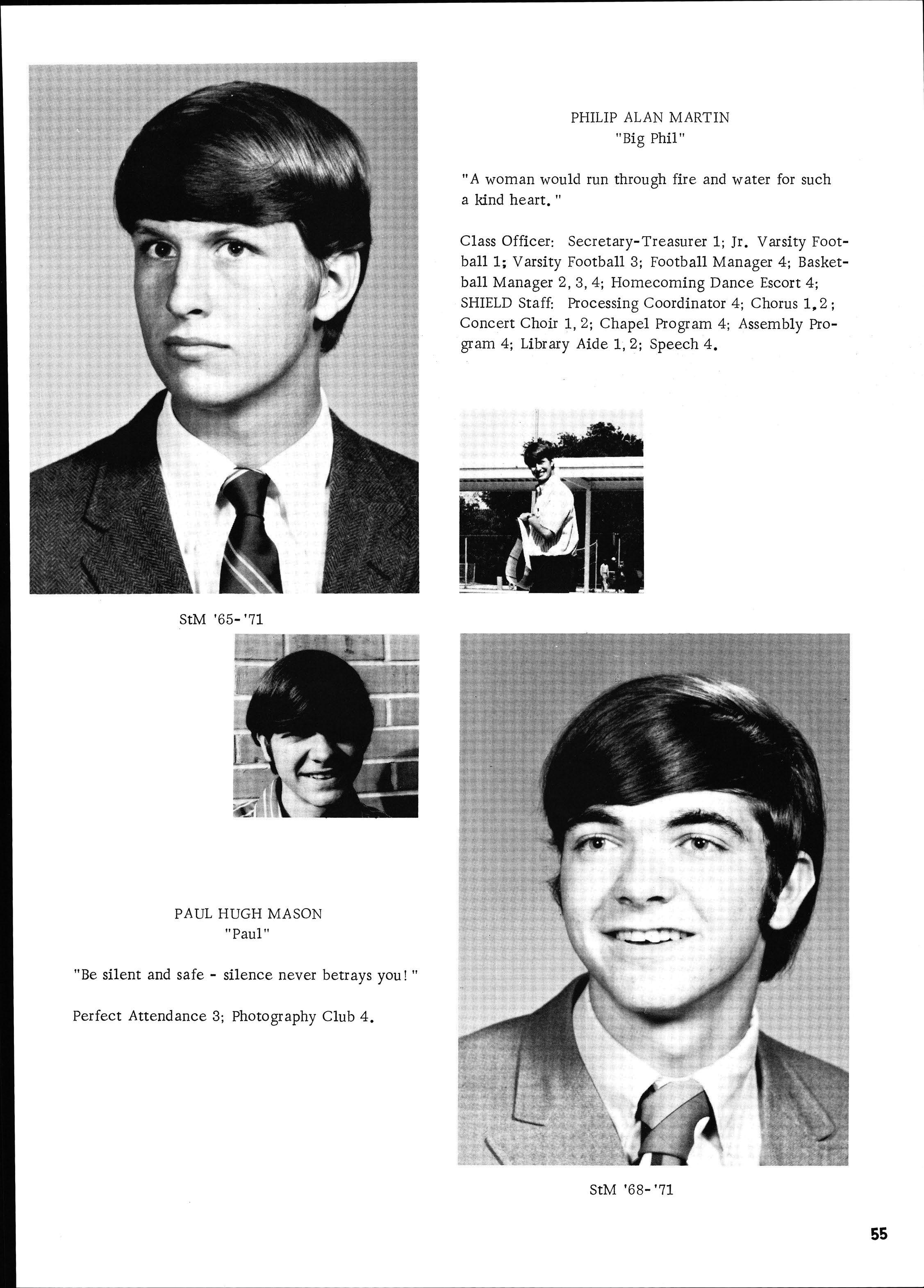 The faces of the St. Martin's students are m a nY and v a ri ed . In order to Present these changing m o o d s, the SHIELD staff uses emotion as the theme for the 1971 edition. It is ourhope that through pictures, the v a ri ous school activities will dePict the diversified feelings of St. Martin's student life.