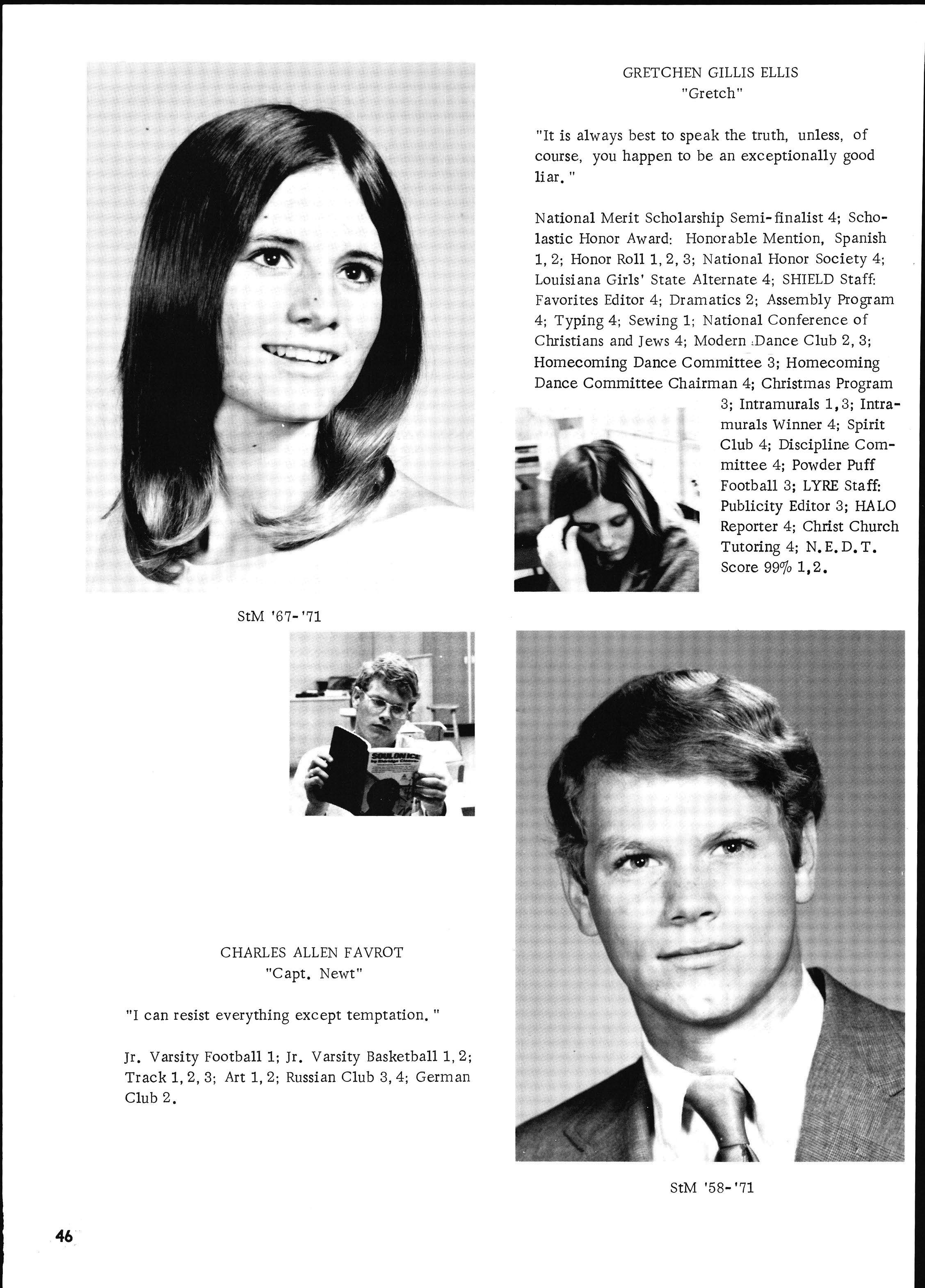 JOHN MEADE, IJ. S. A. (Ret.), B. S., Princeton University. Bottom Left: BARBARA SAIK, B. A., Tulane University. Right: LYNN BOLLES, B. S. , Southeastern Louisiana University.