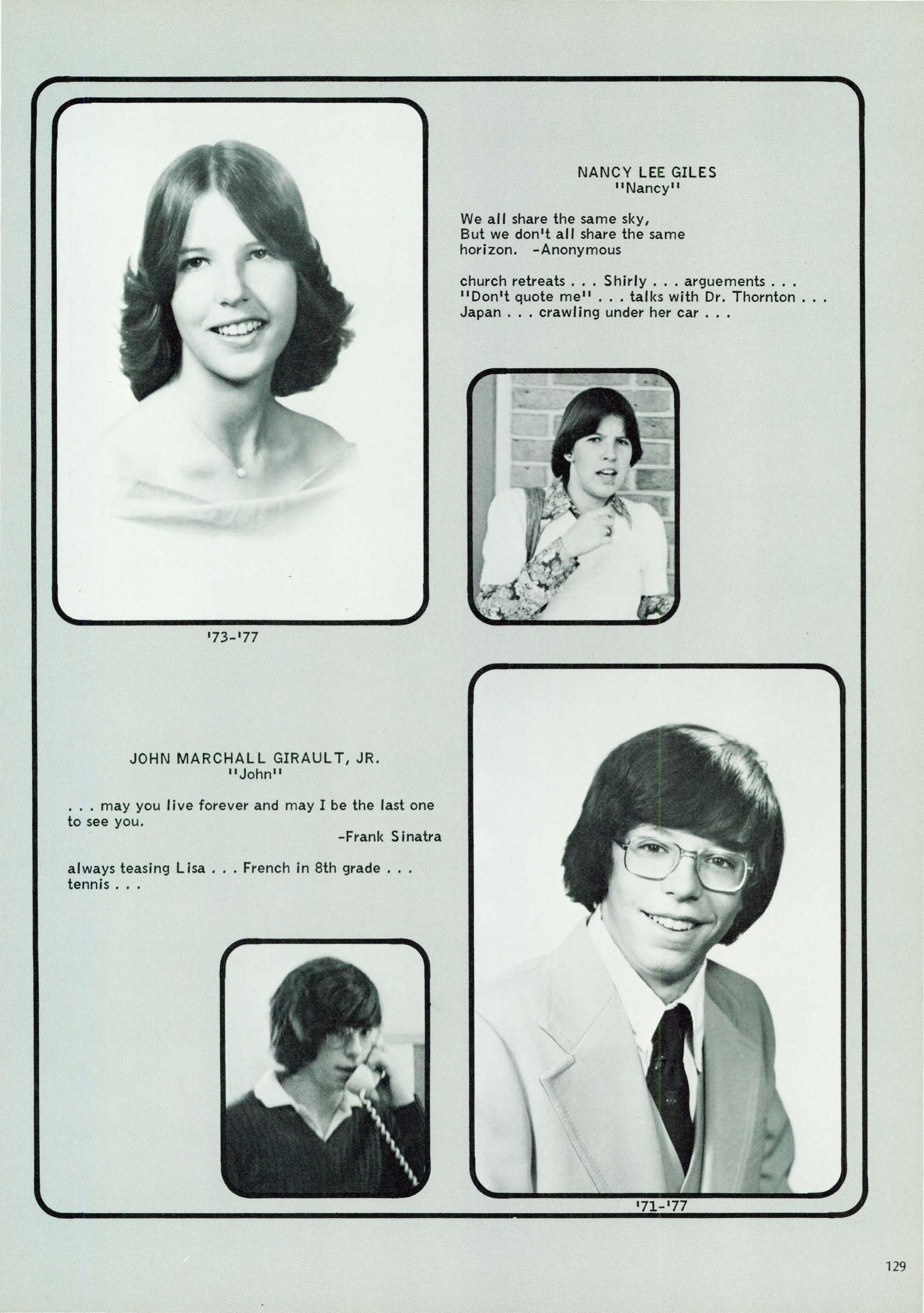 NANCY GILES - Spanish Three Honorable Mention; Honor Roll 3; National Honor Society 3, 4; Chorus 1; Typing 1; SHIELD staff 4; HALO staff 3, feature editor 4; LYRE staff 2, 3; Homecoming Dance Comm. 2; Beautification Comm. 2, 3.