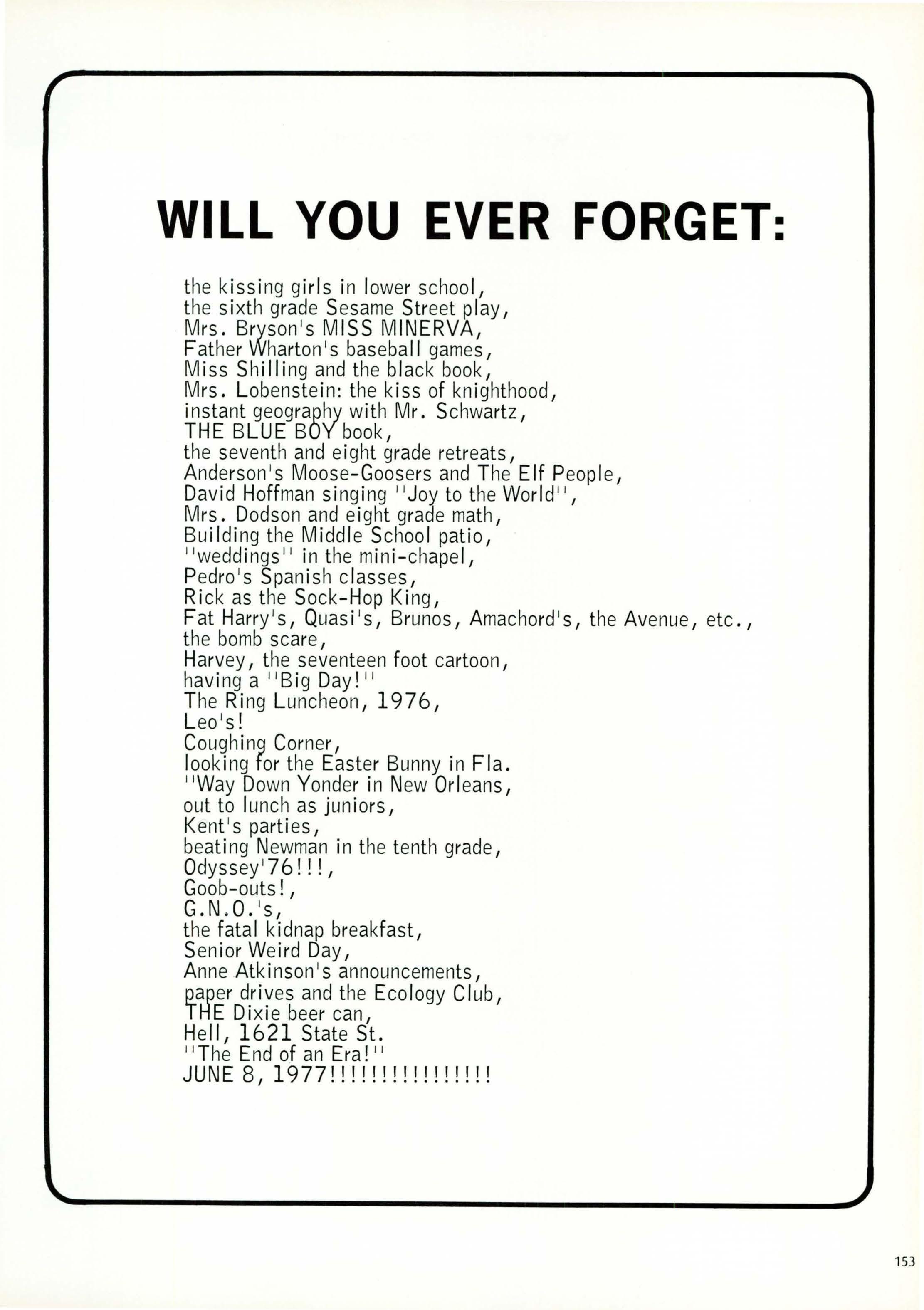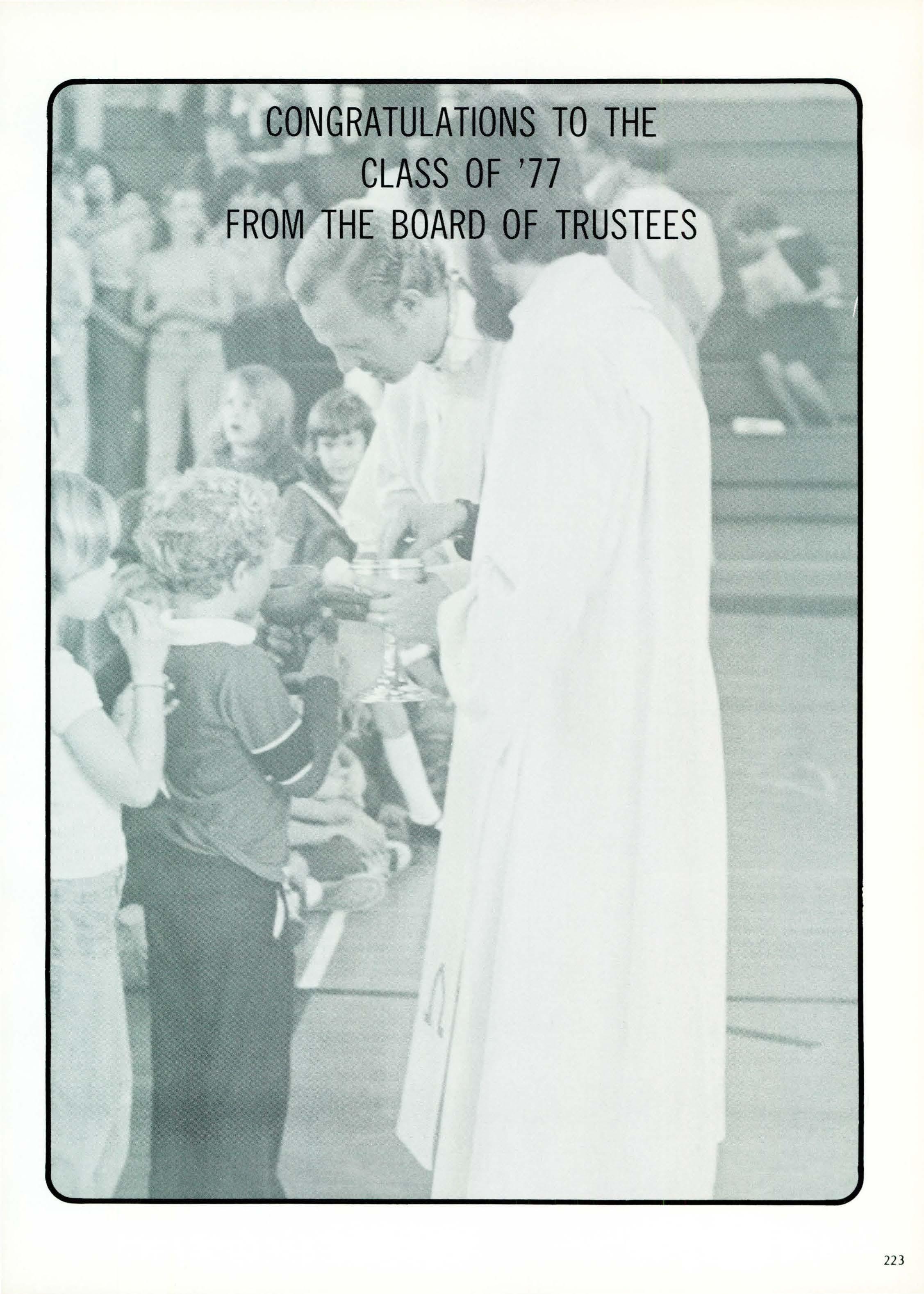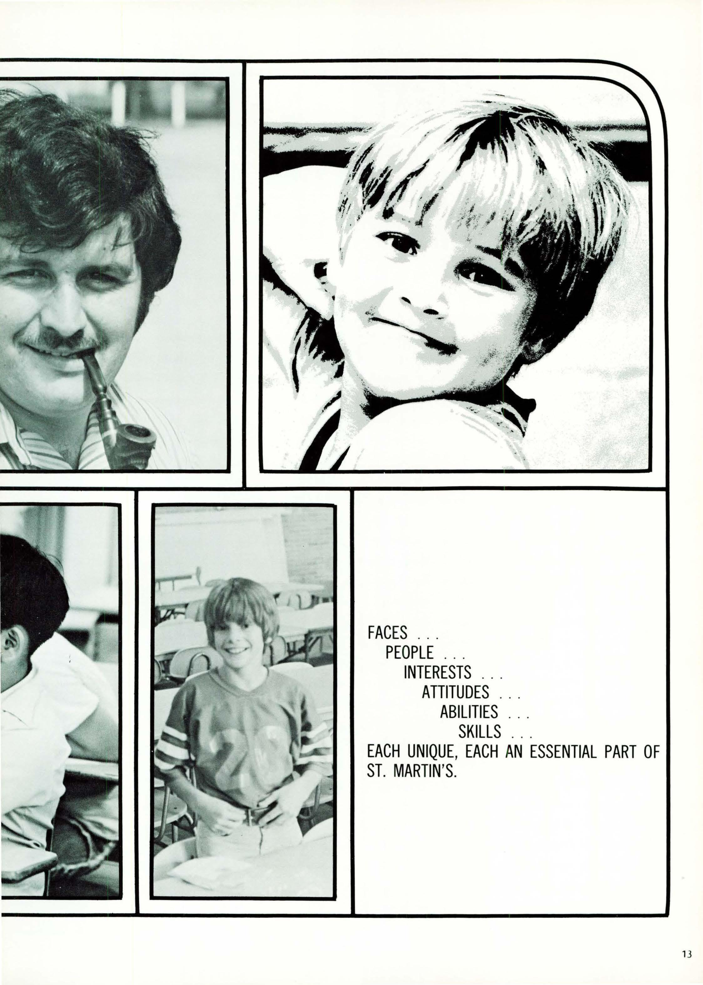 A school is, in essence, a community of people, people who interact, who give to each other and who receive rrom each other. You have given and received, and you have left your mark inelibly on the history of this, your school. You will always be St. Martin's men and women and those of us at the schoo I wi II retain a special pride in you, the Class of 1977.