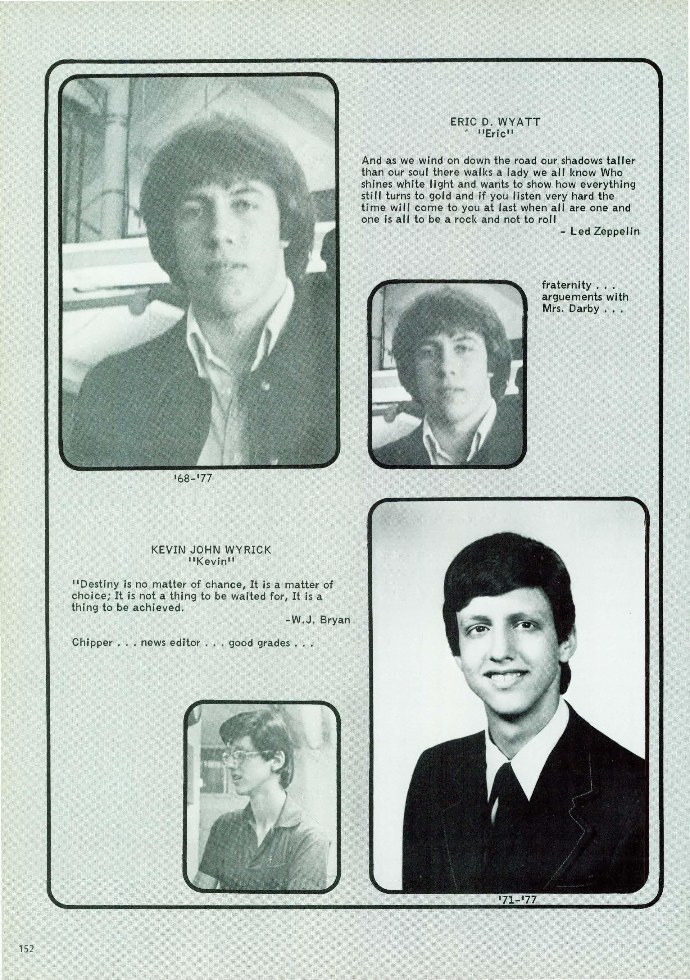 KEVIN WYRICK - Honor Roll 2, 3; National Honor Society 3; Typing 2; Art 1, 4; HALO staff 1, 2, 3, 4.