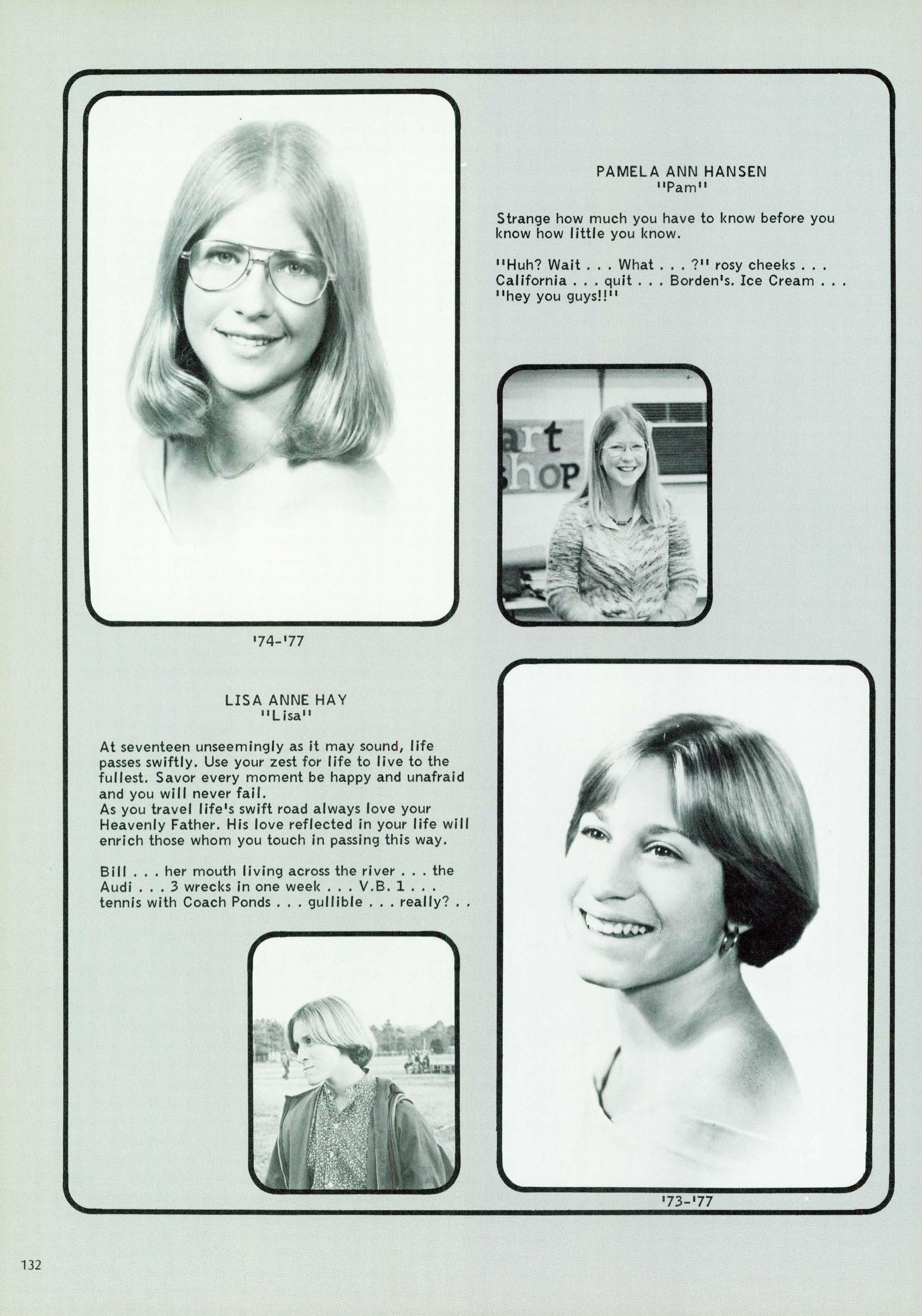 LISA HAY - Honor Roll 1; Ivy League Swimming 2 1 3; Cheerl~ader 3, 4; Volleyball 2, 3, 4; Chorus 1; Jr.Sr. Prom Comm. Homecoming Court 4; Favorite 4.