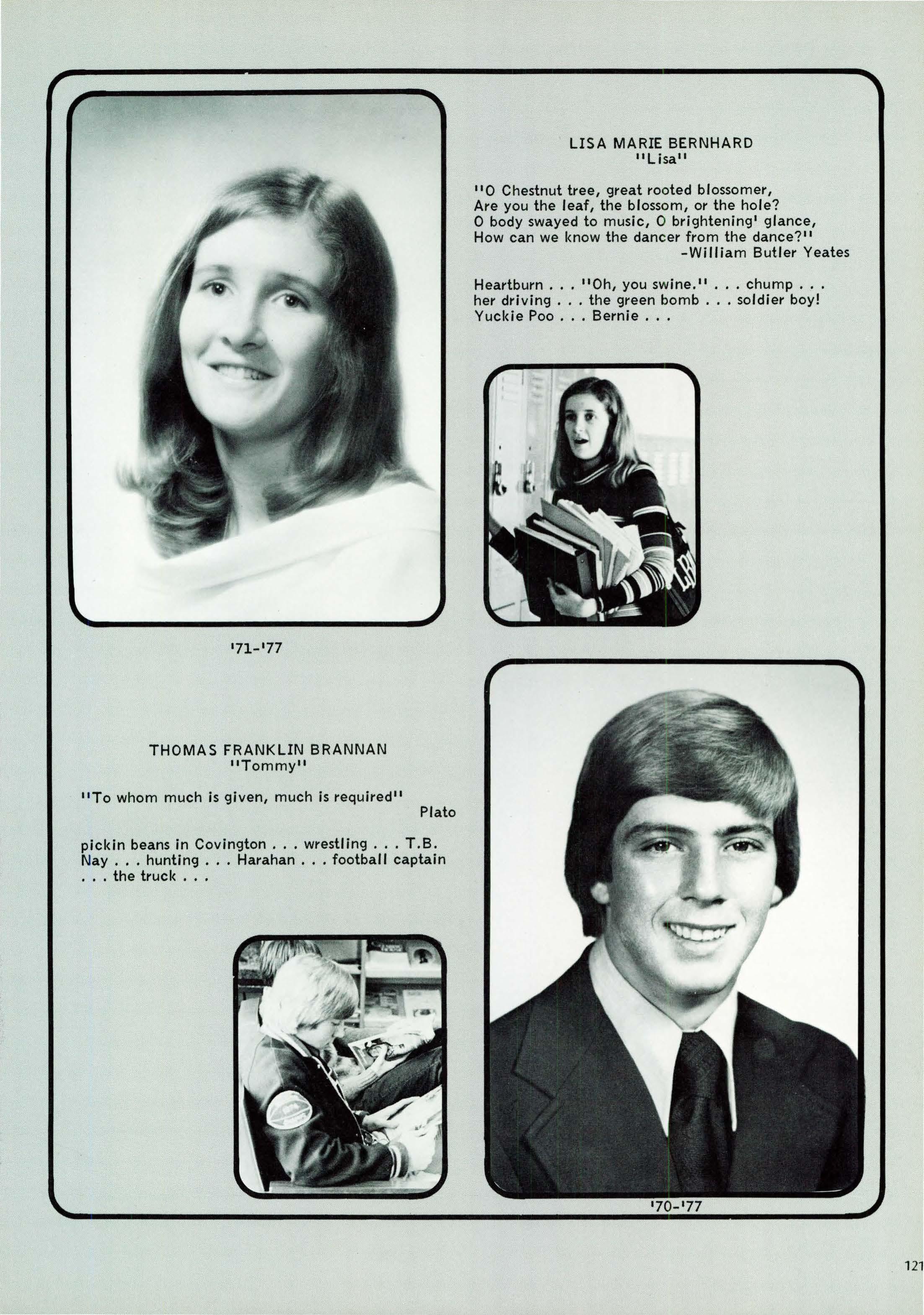 TOMMY BRANNAN - J.V. Football 1; Varsity Football 2, co-captain 3, 4; Wrestling 1, 2, co-captain 3, 4; A~t 1, 2, 4.