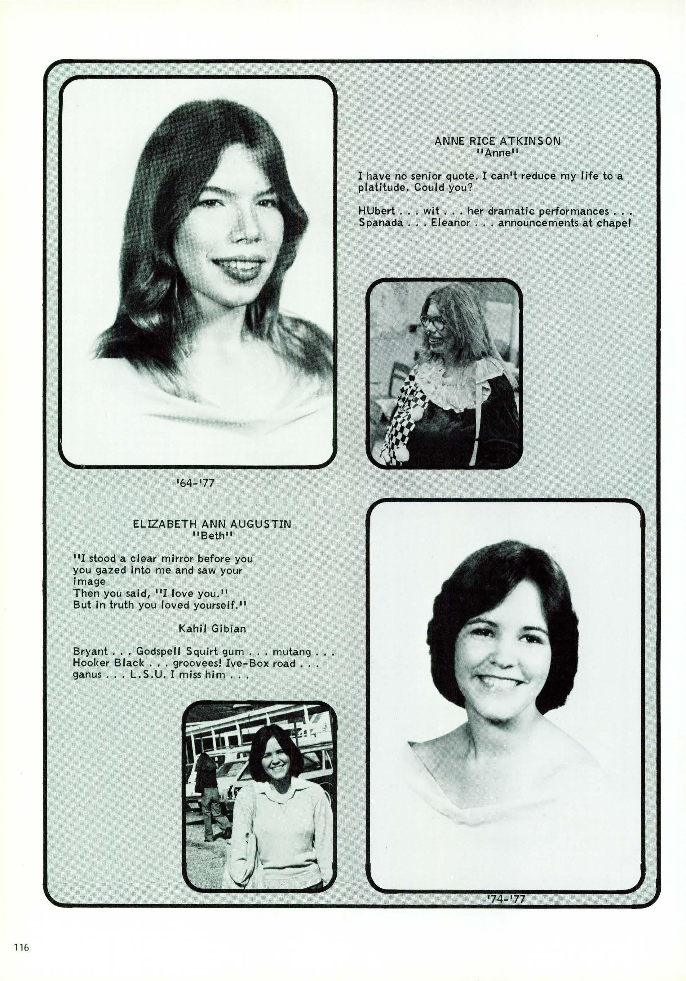 ANNE ATKINS ON - Honor Roll 4; Chorus 3, 4; Typing 4; Art 1, 2; Dramatics 3, 4; HALO staff 2, feature editor 3,4; LYRE staff 1, 2, 3, editor, 4; Favorite 4.