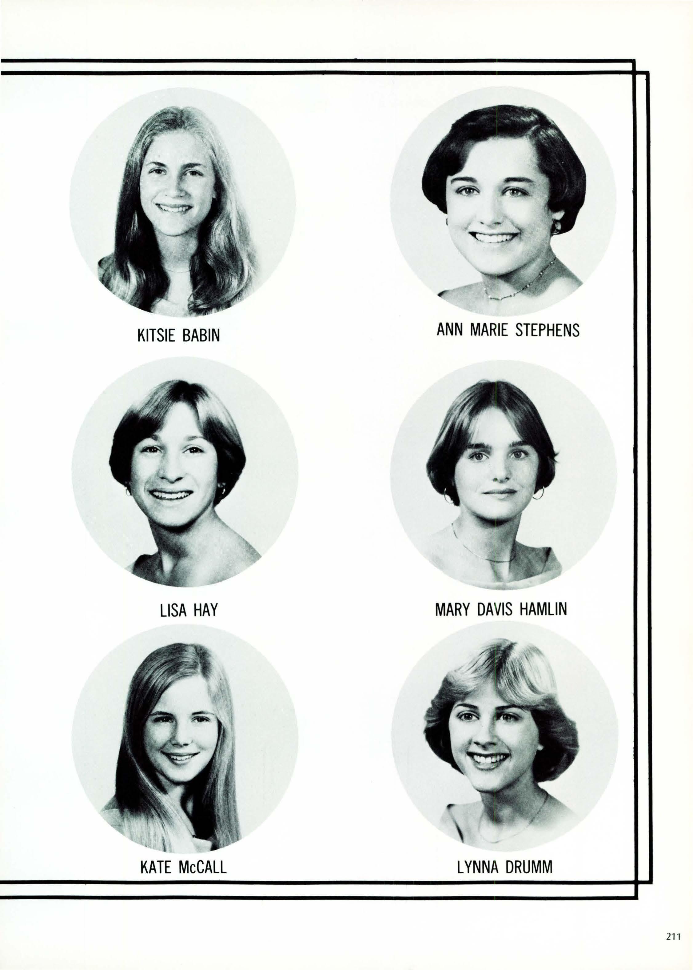 KITSIE BABIN - Honor Roll 1, 2, 3, 4; National Honor Society 4; Cheerleader 2, 3, 4; Volleyball 1, 2, 3, 4; Badminton 2, 3; Intramural Board 1, 2, 3, 4; Art 1, 2; Student Council 2, 3; SHIELD staff 4; Jr.Sr Prom Comm. 3; Homecoming Dance Comm. 3, 4; Homecoming Court 2, 3, 4; Favor ite 4.