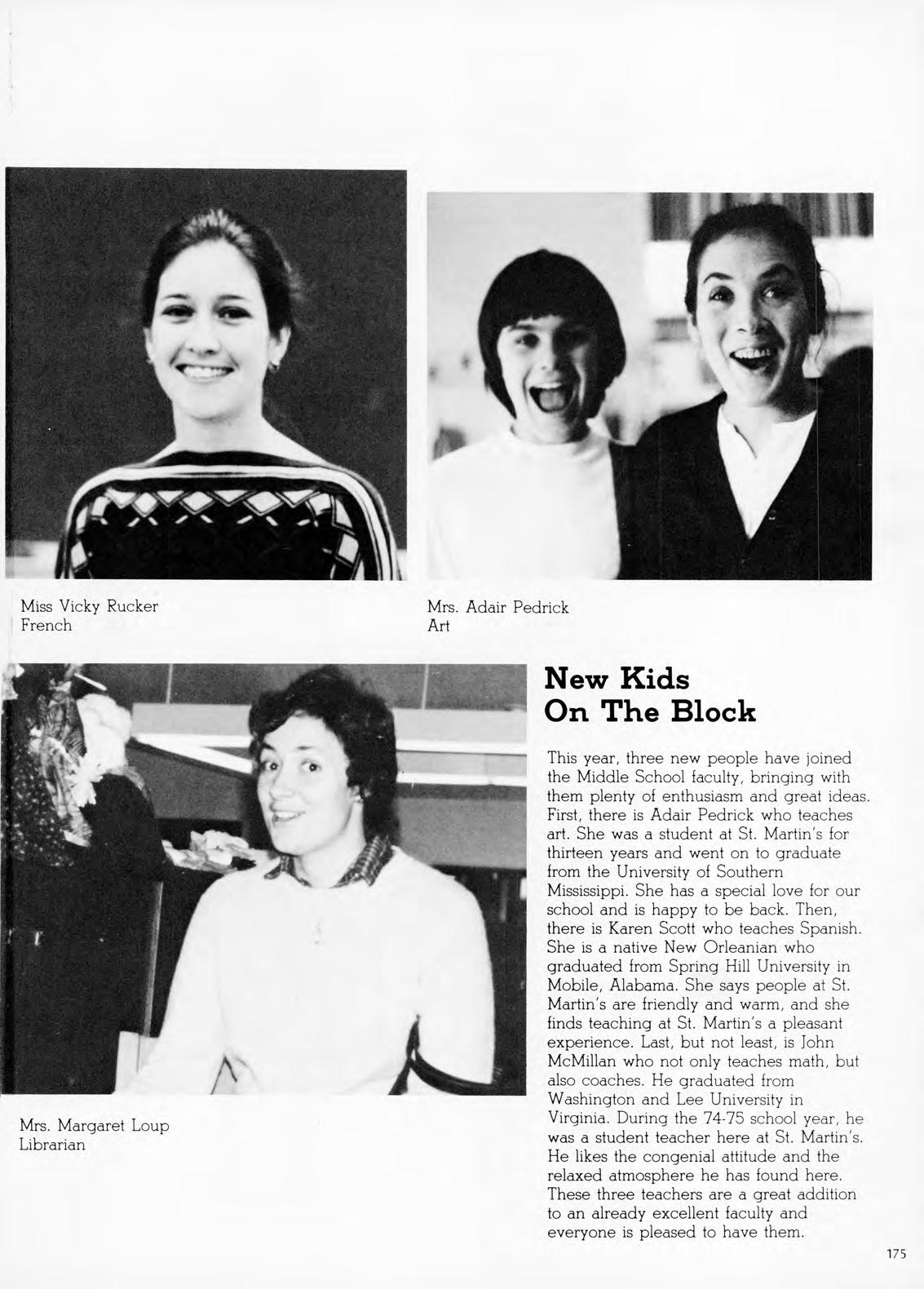Mr . James Latham has been teach ing at St. Martin 's for th e past 27 yea rs. In 1954, wh en he began , he taught Math , Scie n ce, and Span ish in th e Middle School. Beginning in 1956 he taught o nly math in the Upper Sc h o o l. He has been Chairman of th e Math Department for the p as t 20 years and at present tea c he s Math IV and C alculu s. When asked why he stayed at St. Martin's, he replied that it was a nice place and that he enjoyed work in g with the students Mr. Latham also enjoys talking to Alumni to find ou t h ow h is former student s are doing. The thing Mr. Latham considers most interesting is the fact that he h as taught several ch ildr en of his former students.