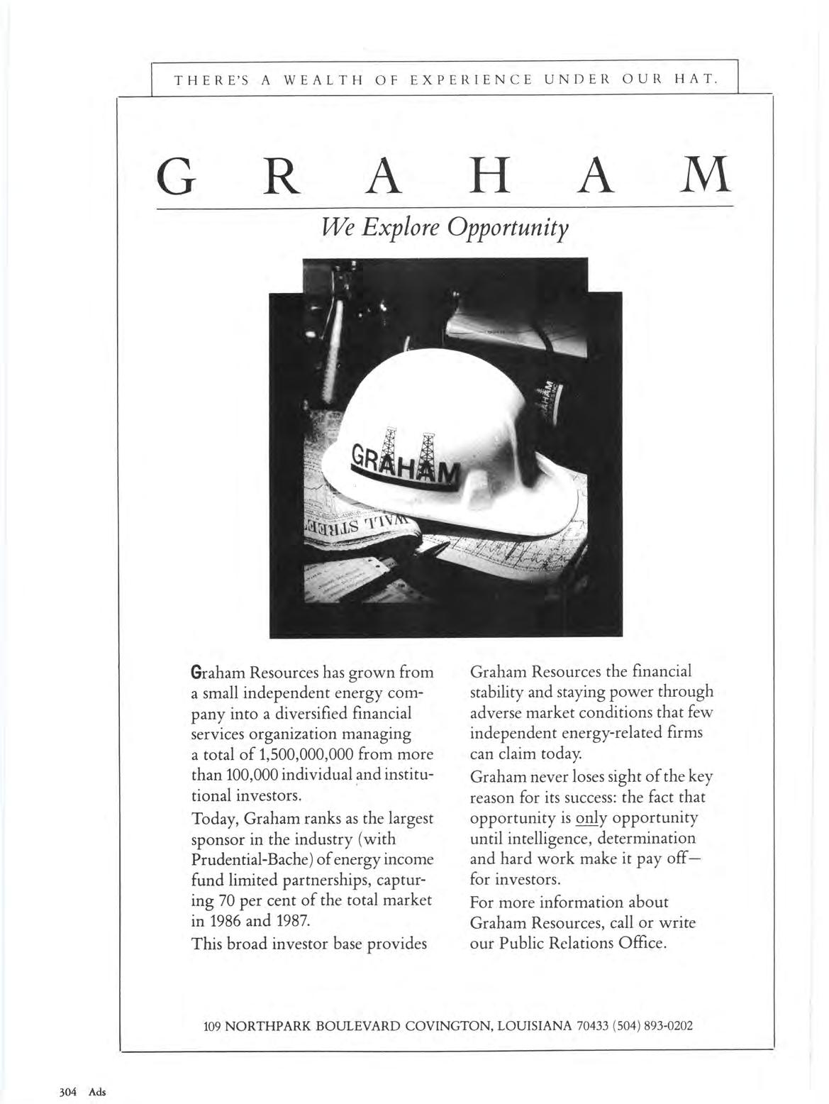 Graham Resources has grown from a small independent energy company into a diversified financial services organization managing a total of 1,500,000,000 from more than 100 ,000 individual and institutional investors.