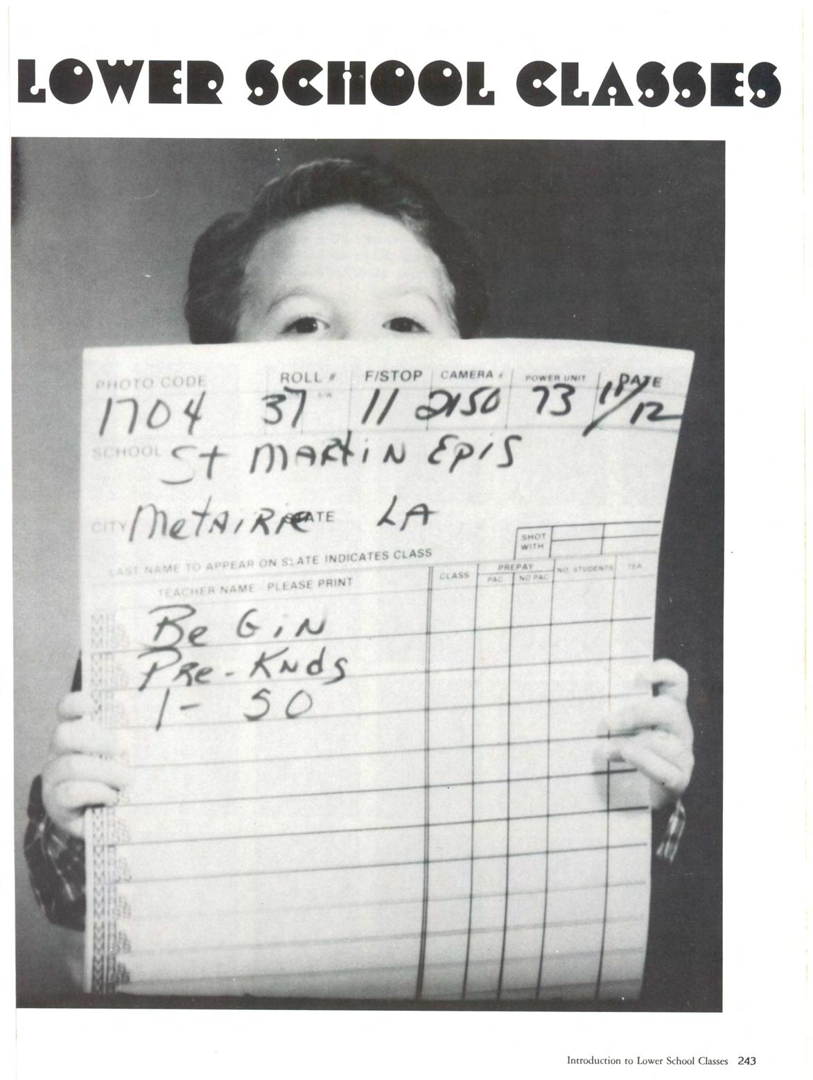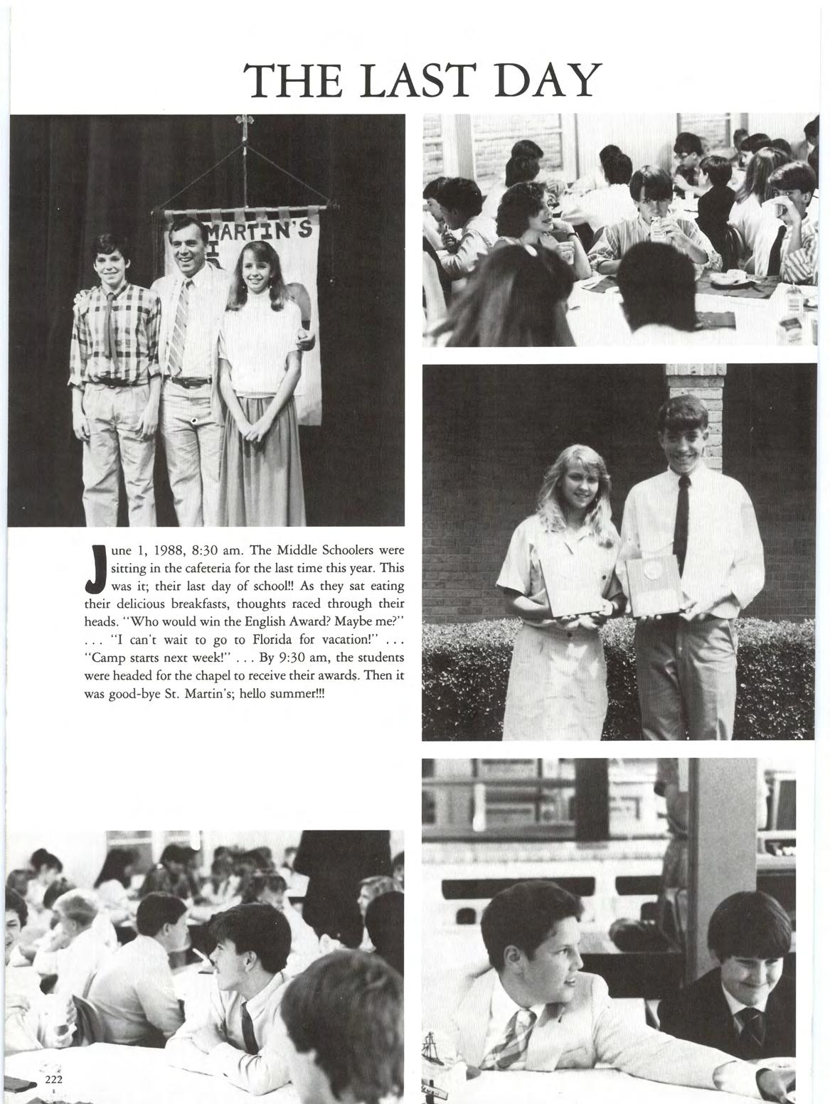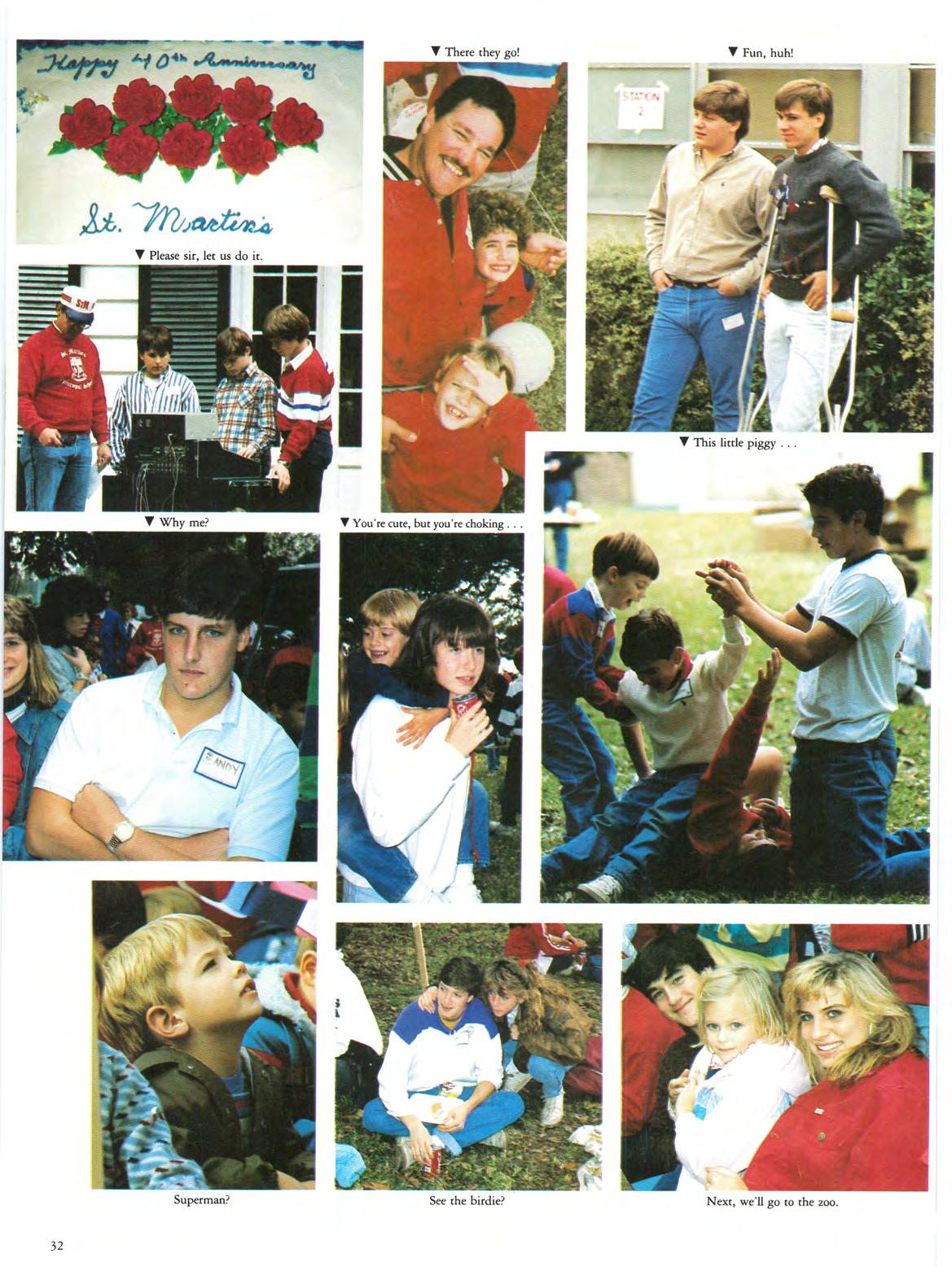 A Yearbook is the picrorial record of a school. This book attempts co show through pictures and copy the accomplishments, activities, disappointments, wins, losses , and most important, the people of St. Martin's 1988. The faculty, staff, students, parents and alumni that comprise our school are represented. St. Martin 's Episcopal School offers many opportunities for all of us to grow, learn and enrich our lives. The Shield staff has attempted to cover it all