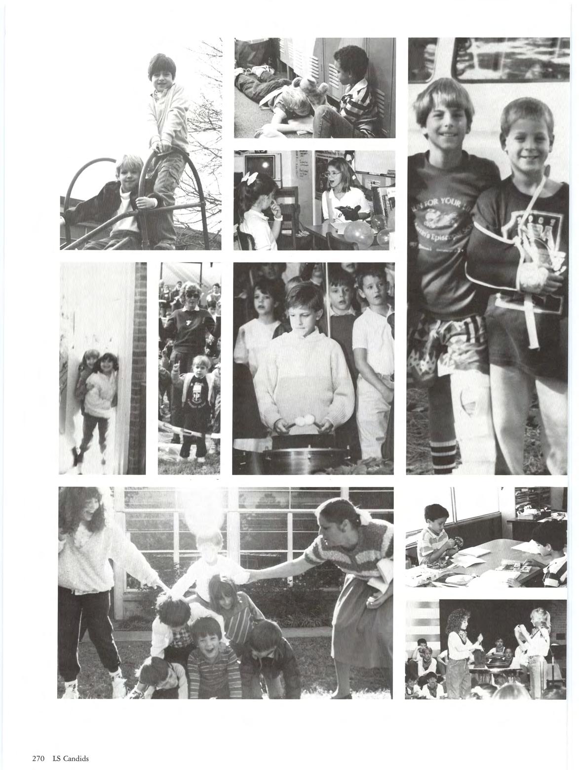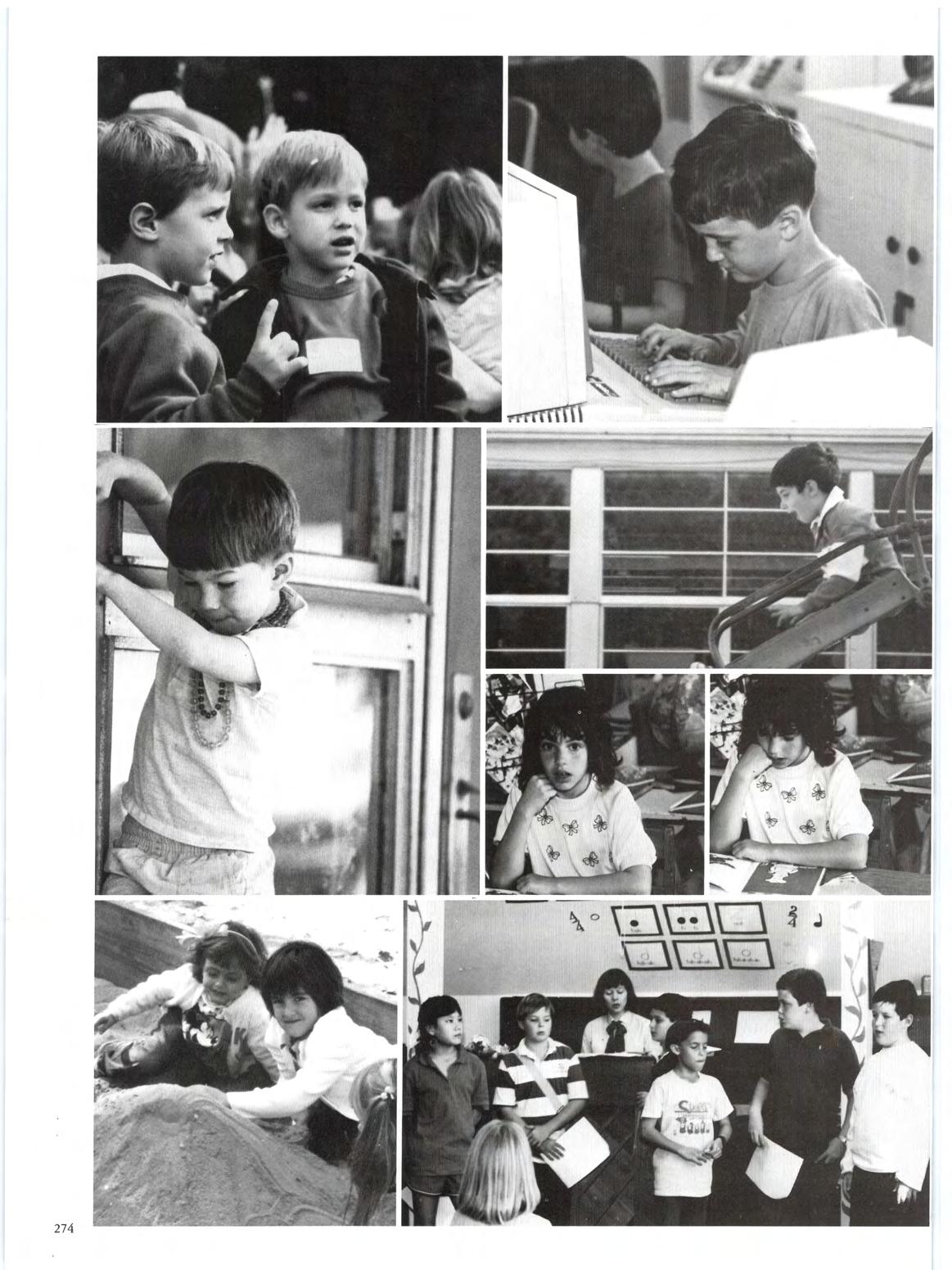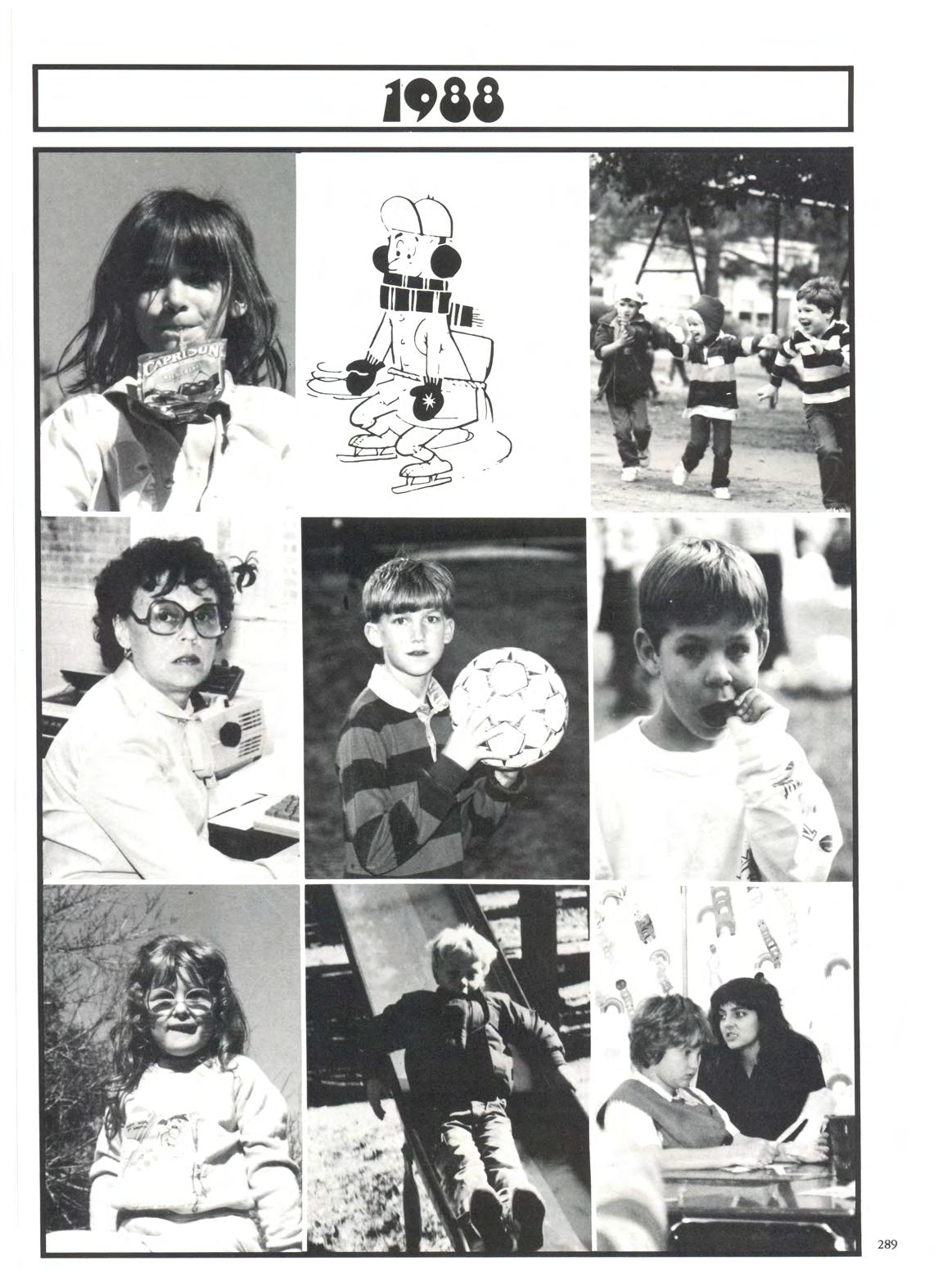 JANUARY - 1988 - field trips - flu - vision screeningSenior Teacher Day! The arrival of 1988 brought the flu bug, but that did not deter the enthusiasm of field trips The playground, a favorite spot for active minds and bodies, was busy as usual. Coated and hooded architects played their trade in the sand box with future skydivers daring the slides Senior Teacher Day gave the Lower Schoolers a new opponunity to test the patience of bewildered Upper School students .