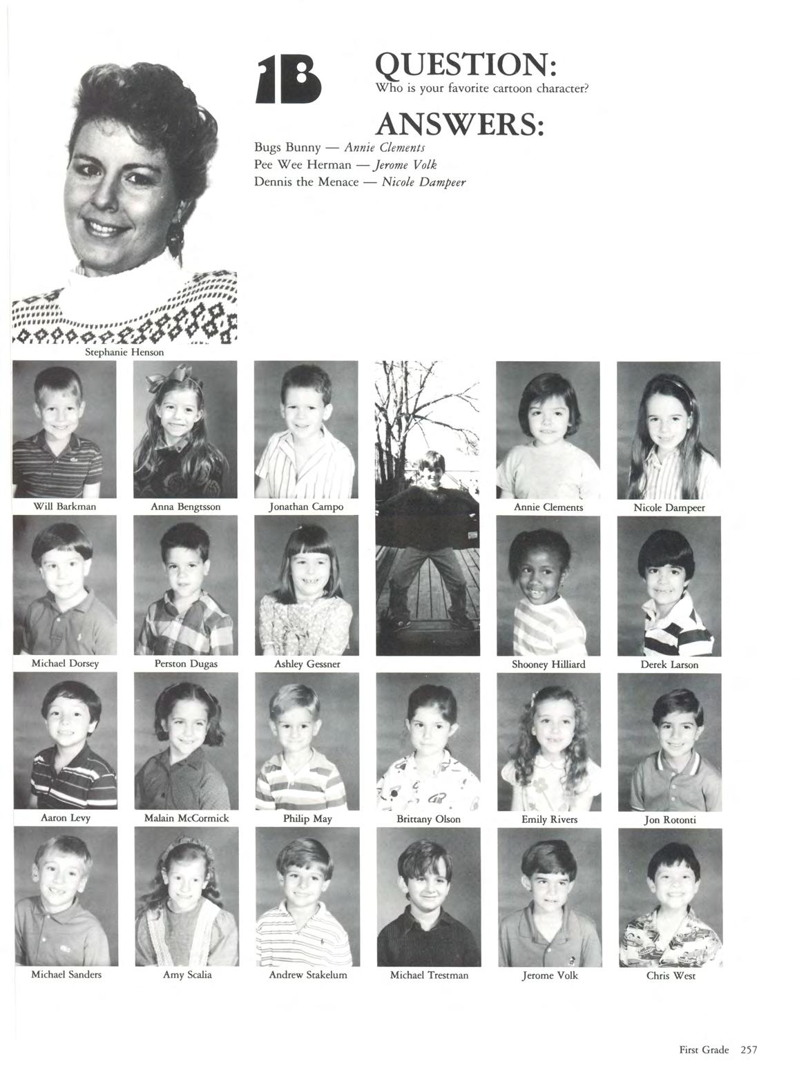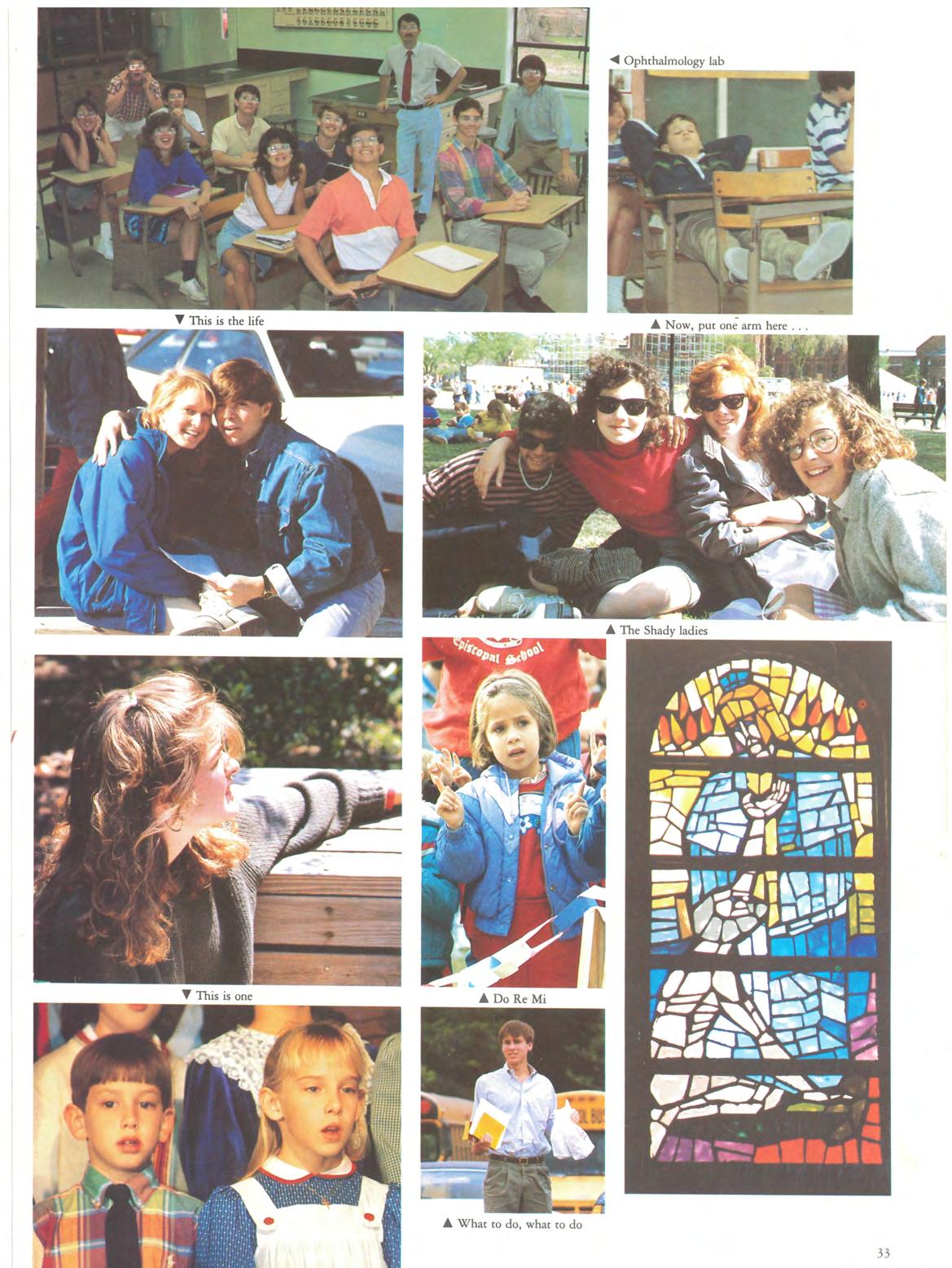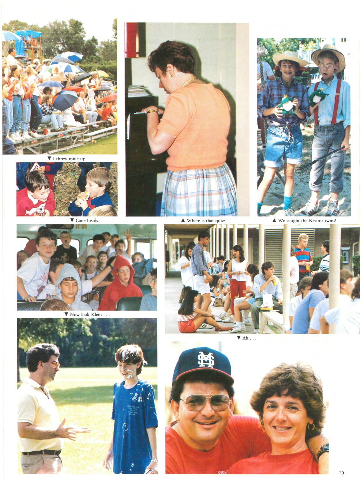 JANUARY - 1988 - field trips - flu - vision screeningSenior Teacher Day! The arrival of 1988 brought the flu bug, but that did not deter the enthusiasm of field trips The playground, a favorite spot for active minds and bodies, was busy as usual. Coated and hooded architects played their trade in the sand box with future skydivers daring the slides Senior Teacher Day gave the Lower Schoolers a new opponunity to test the patience of bewildered Upper School students .