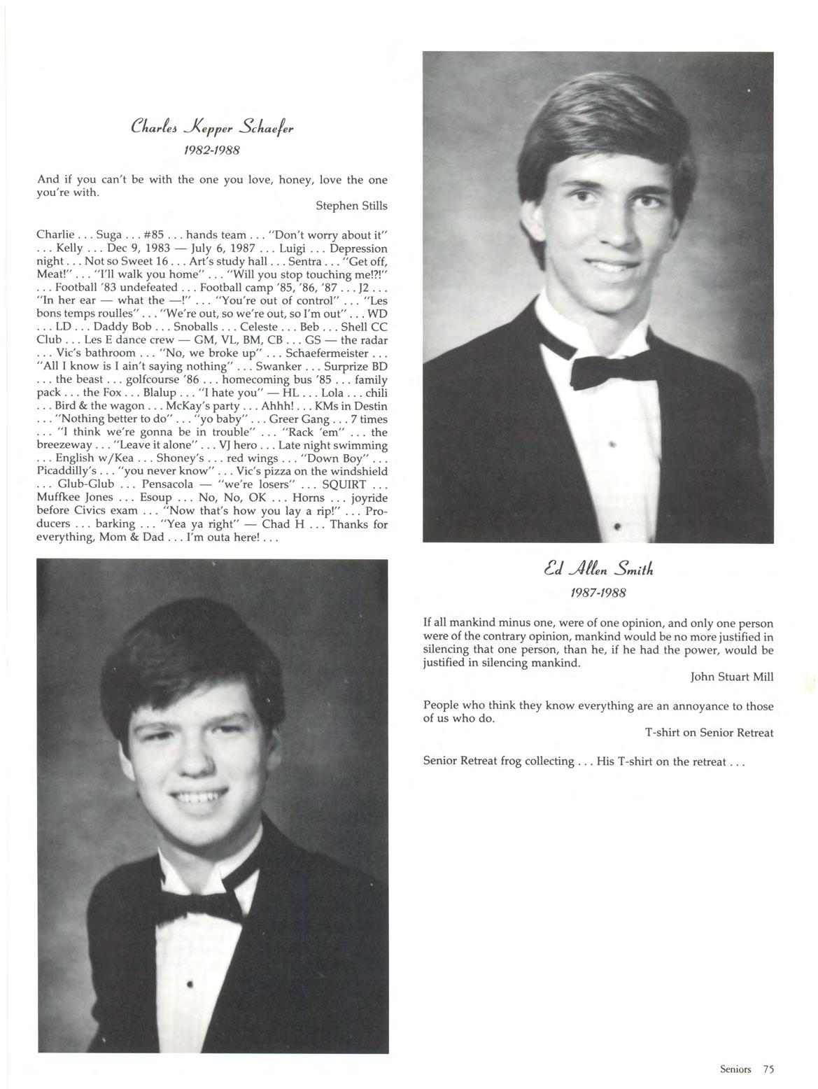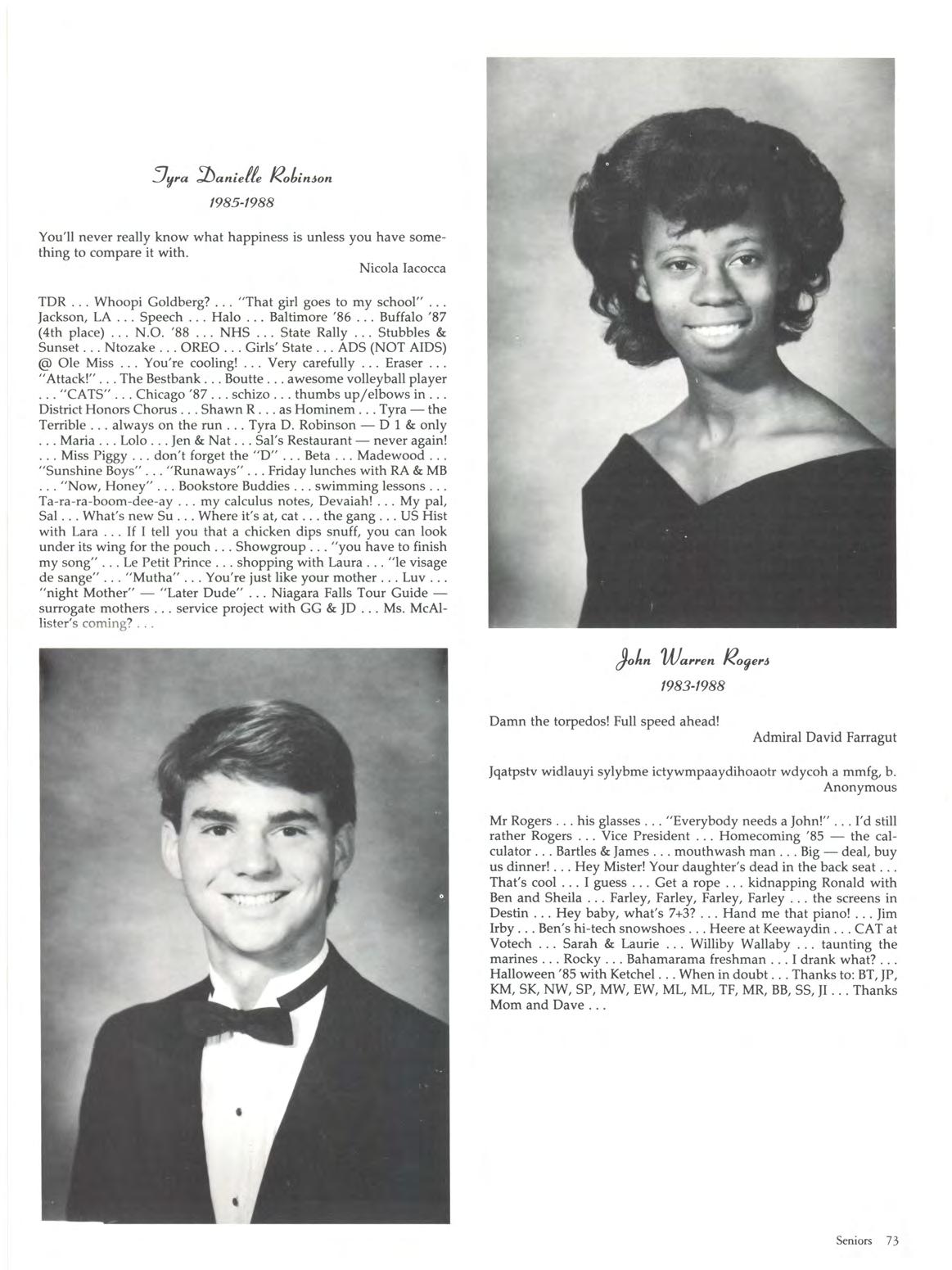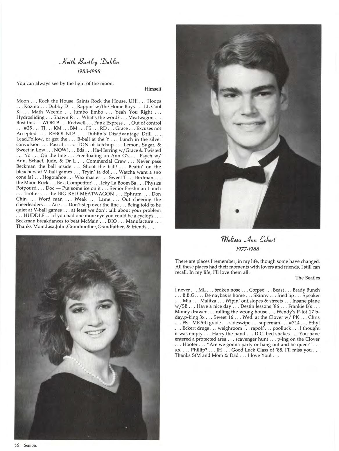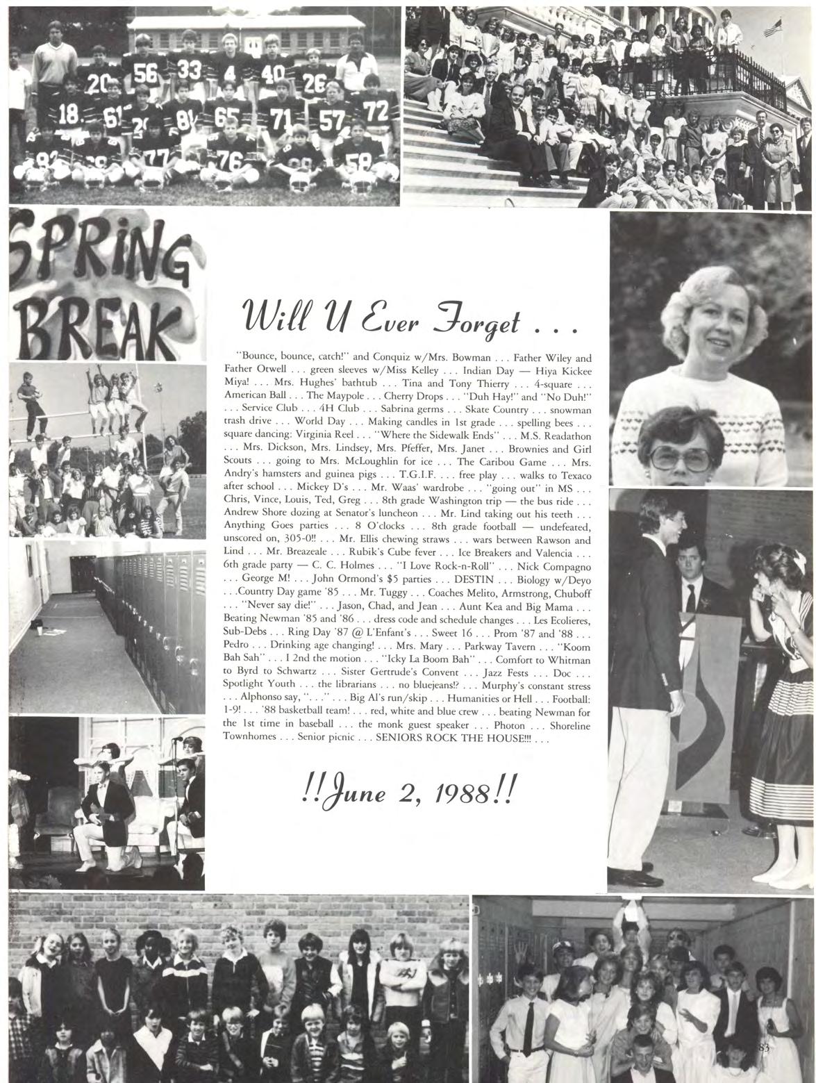 The Class of 1988 is a strong class and it is a great class Like your school, you have been supportive, responsive, caring and stable. You are a class united. May you keep your perspective on individuality and may you remain close for years to come.