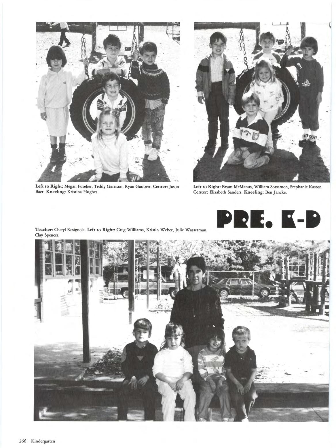 Gwen Grundman Billy Bower Gretchen HughesThe Extended-Day Kindergarten began at noon with lunch, a rest, a snack, story time, activity time and then play time. For some of the more memorable activity periods, kindergarceners had airplane races, played with coys on Car and Truck Day, and brought scuffed bears for Bear Day. The children also had mini-tours, so a trip co the wrestling room was a definite favorite. Cooking is also a favorite pastime, and the food they concocted was appetizing along with a cake for Jesus' birthday and "garp" for a hiking snack. Our afternoons were busy!