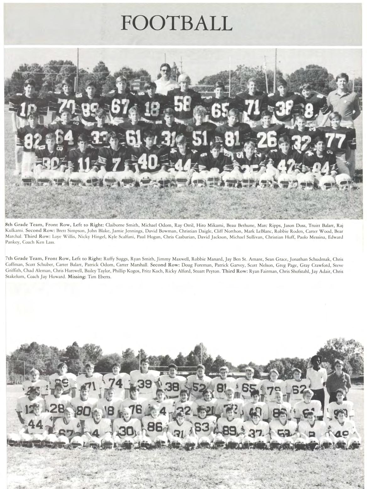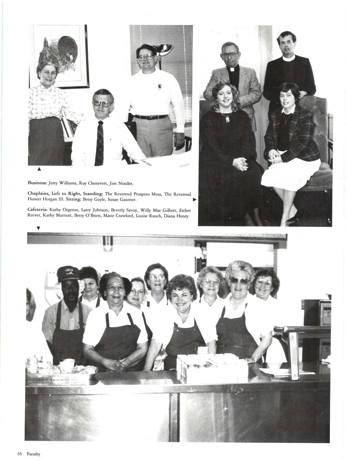 Cafeteria: Kathy Orgeron , Larry Johnson, Beverly Savoy, Willy Mae Gilbert, Esther Reever, Kathy Marriott, Betry O'Brien, Marie Crawford, Louise Rauch, Diana Henry.