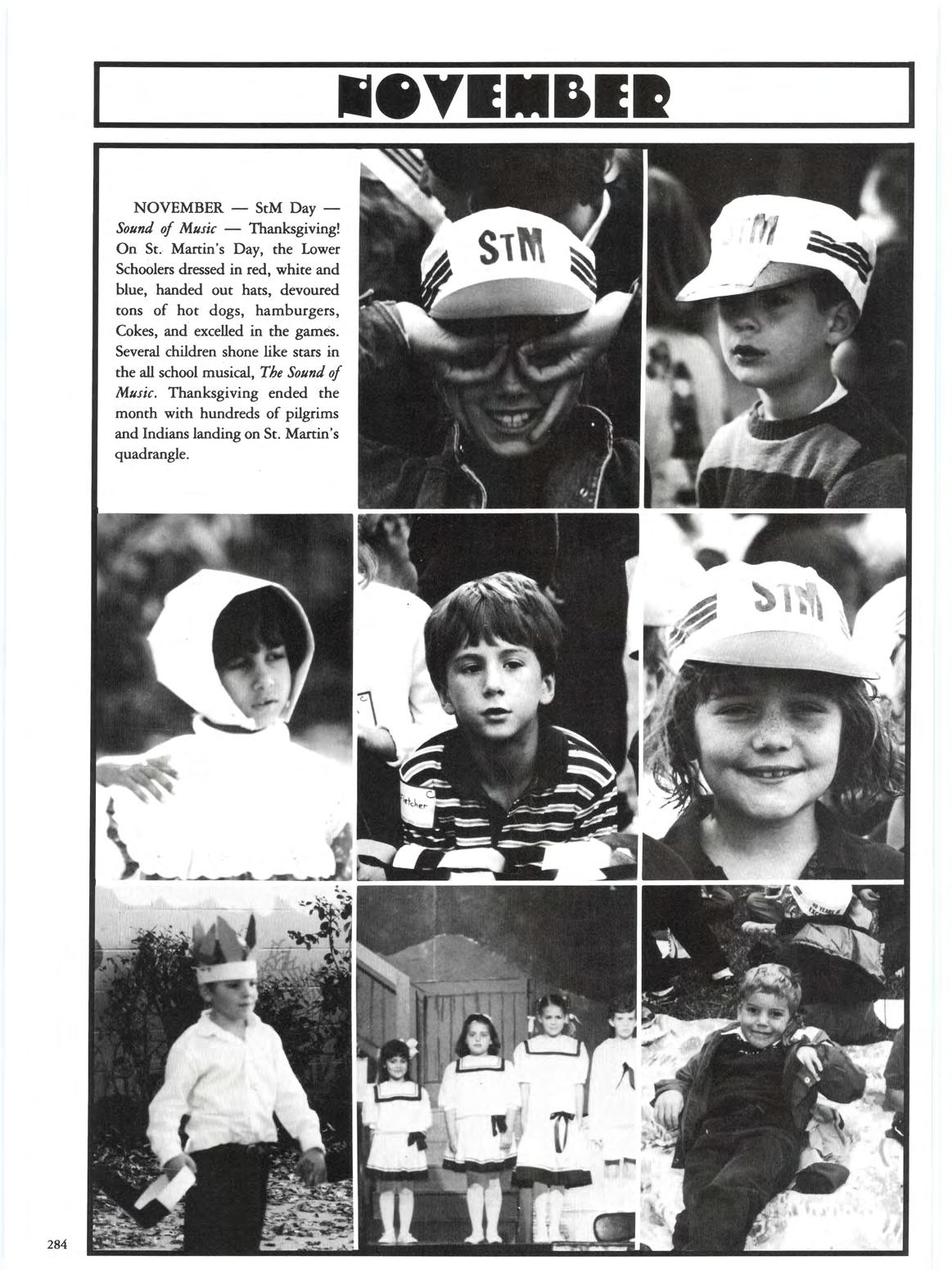 On St. Martin's Day, the Lower Schoolers dressed in red, white and blue, handed out hats, devoured tons of hot dogs, hamburgers, Cokes, and excelled in the games. Several children shone like stars in the all school musical, The Sound of MuJic. Thanksgiving ended the month with hundreds of pilgrims and Indians landing on St. Martin's quadrangle