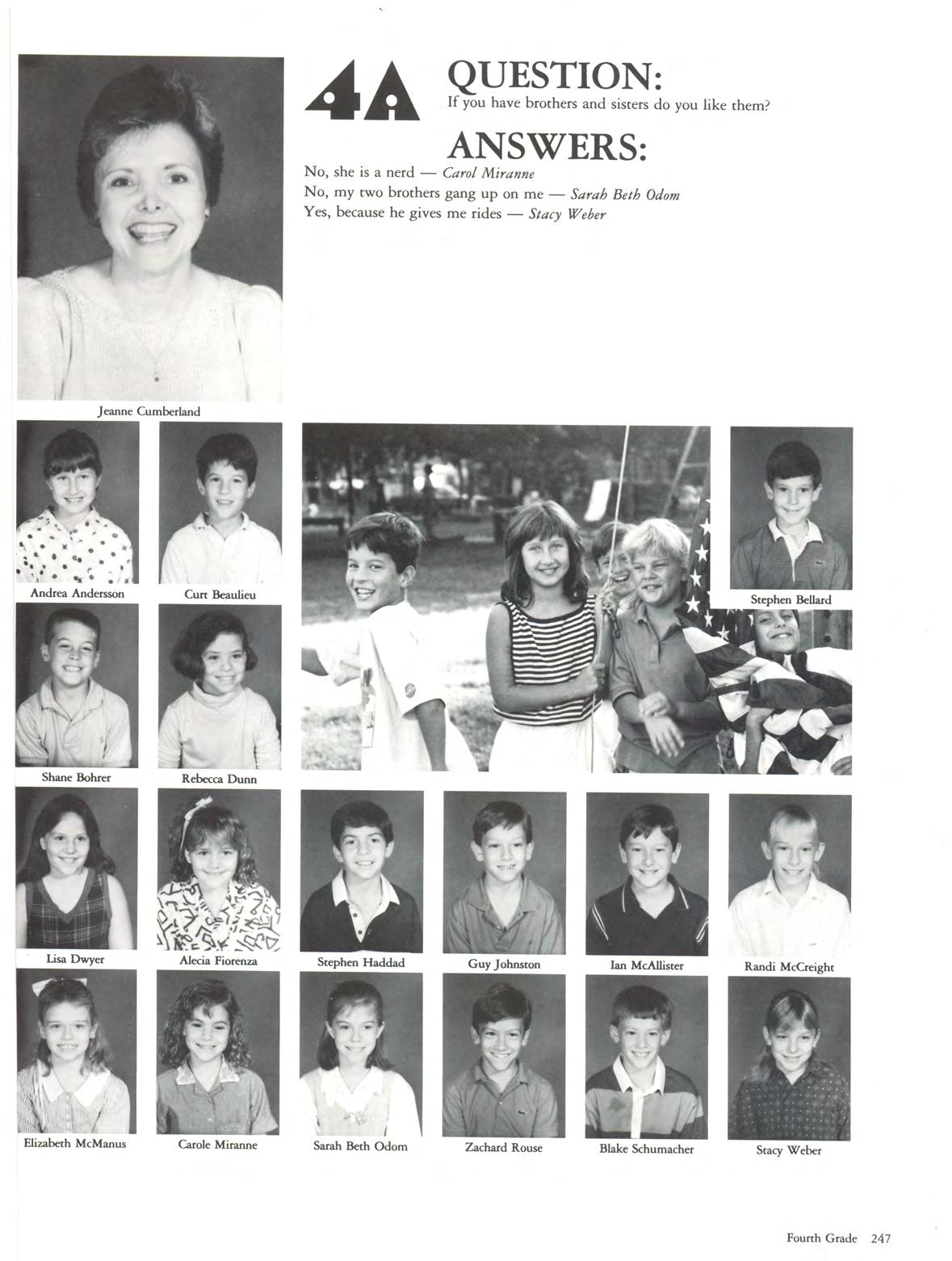 Left to Right, 1st Row: Sarah Simpson, Nicole Irving, Gretchen Garrison, Elizabeth McManus, Lisa Dwyer, John Godchaux, Ian McAllister, Steve Bellard, Kim Milano,Jonarhan Houston. 2nd Row : Amanda Reed, Ryan Ann Murphy, Rebecca Dunn, Carla Dugas, Elena Arensman, Courtney Schupp, Jennifer Denuna, Ruth Thieneman, Elizabeth Husserl, Stacy Weber. 3rd Row: Allison Martinez, Bridger Dugan, Amanda Maxwell, Carole Miranne, Sarah Beth Odom, Ashley Bower, Coleen Kenny, Tori Hodgges, Alecia Fiorenza, Randi McCreight, Andrea Andersson 4th Row: Brian Washington, Chike Ozah, Blake Schuhmacher, Brandon Voss, Stephen Haddad, Guy Johnston, Curr Beaulieu, Matthew Wessel, Greg Frank. 5th Row: Chip McGeehan, Stephen Sr. Pierre, John Abernathy, Christophe, Bowman, Shane Bohrer, Zach Rouse, Michael Brown, James Kahn, Marc Rivers.SEPTEMBER - school days - laughter - confusion - old friends - new friends'