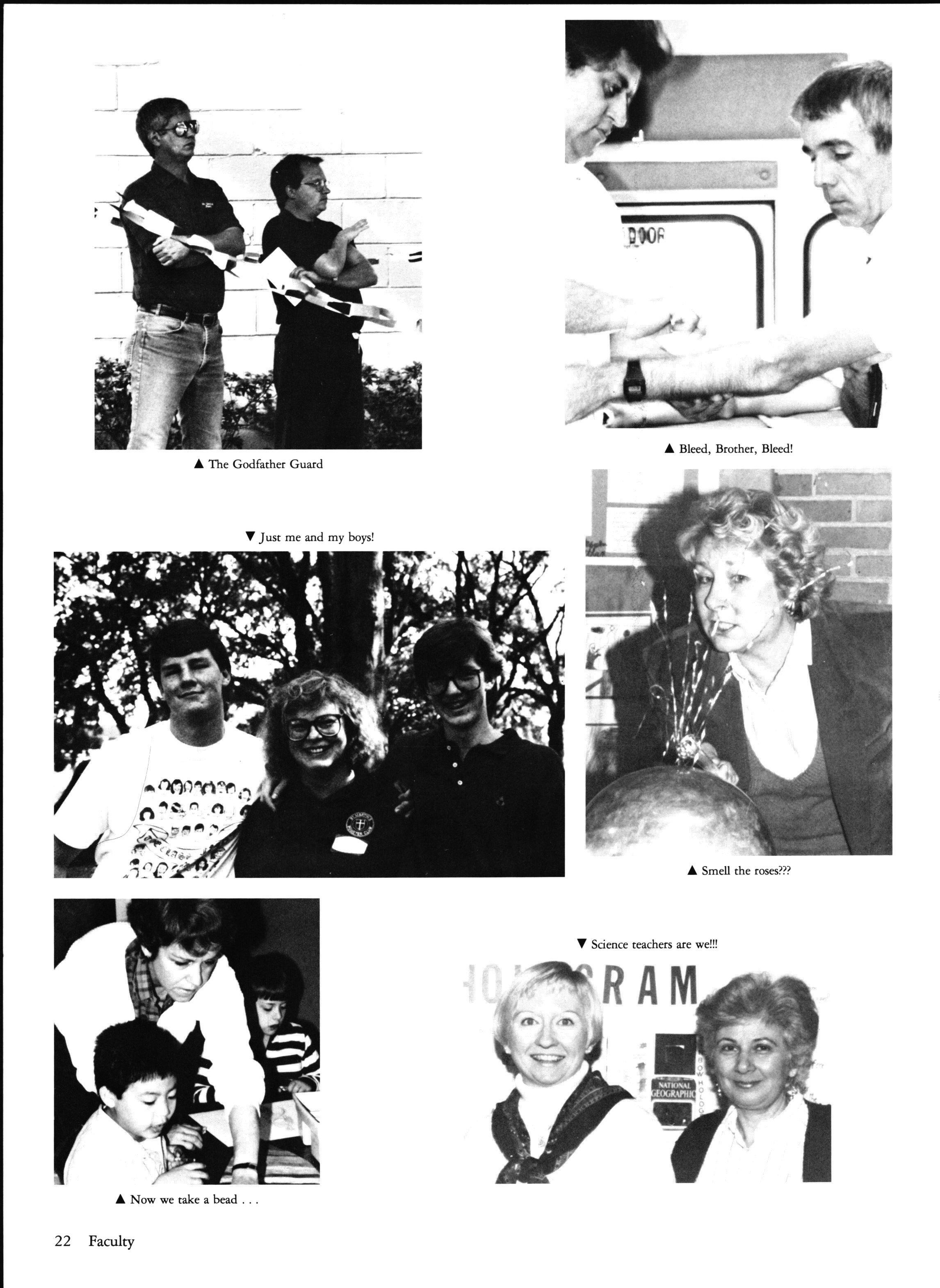 On May 6, 1989, the Lower School playground and baseball fields were transformed into a fairground. From pony rides to dunking booths, there was something to enteftain the whole family. Before the festivities began on the playground, the piner patter of running feet could be heard. If you did not have enough exercise running in the races, baseball games were played all day, and everyone was induded, fathers, daughters, sons, and faculry.