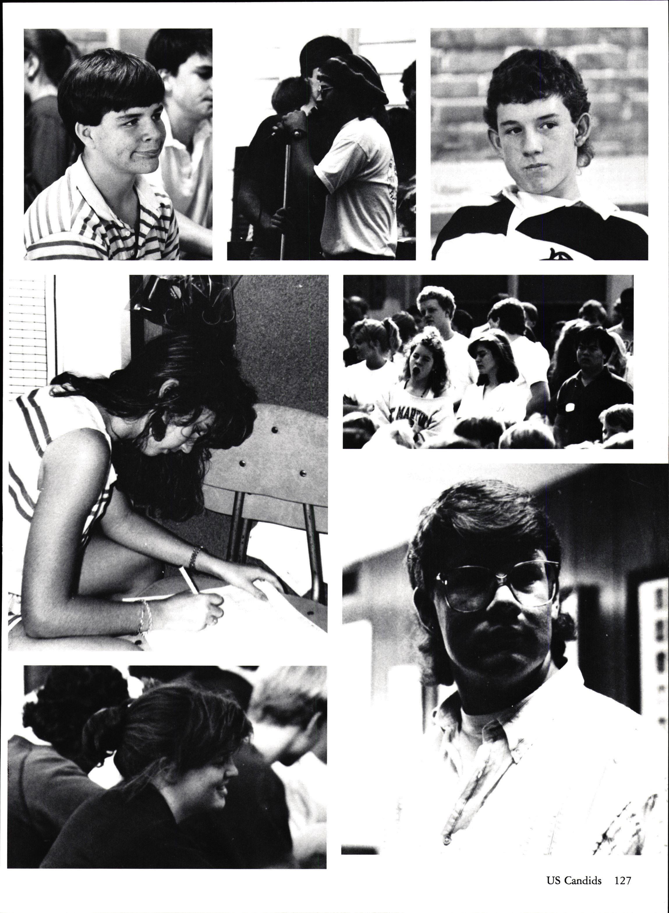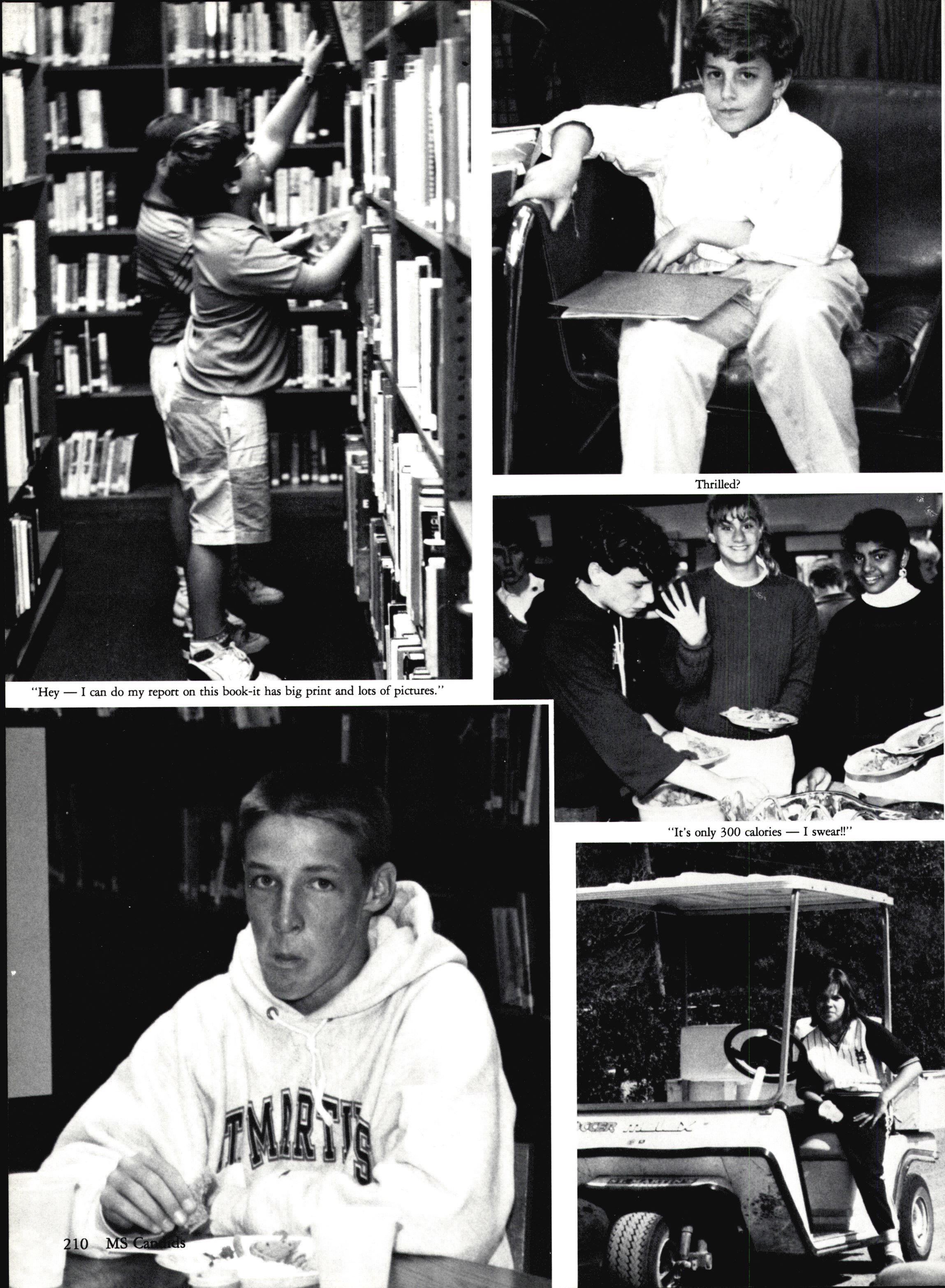 On October 28, 1988, an eerie mystique filled the cafeteria as a masked mob of seventh-graders prepared to celebrate their Halloween dance. The ghastly event attracted such notorious "stars" as the coneheads, Seasame Street's Oscar, and several members of Metallica and other Hard Core Rock Bands. The more generic genre was also represented by pirates, cheerleaders, pumpkins, and the mundane mass murderers. These horrid creatures danced, ate, and enjoyed their wicked company until the festival was ended by a call to sweet sleep.