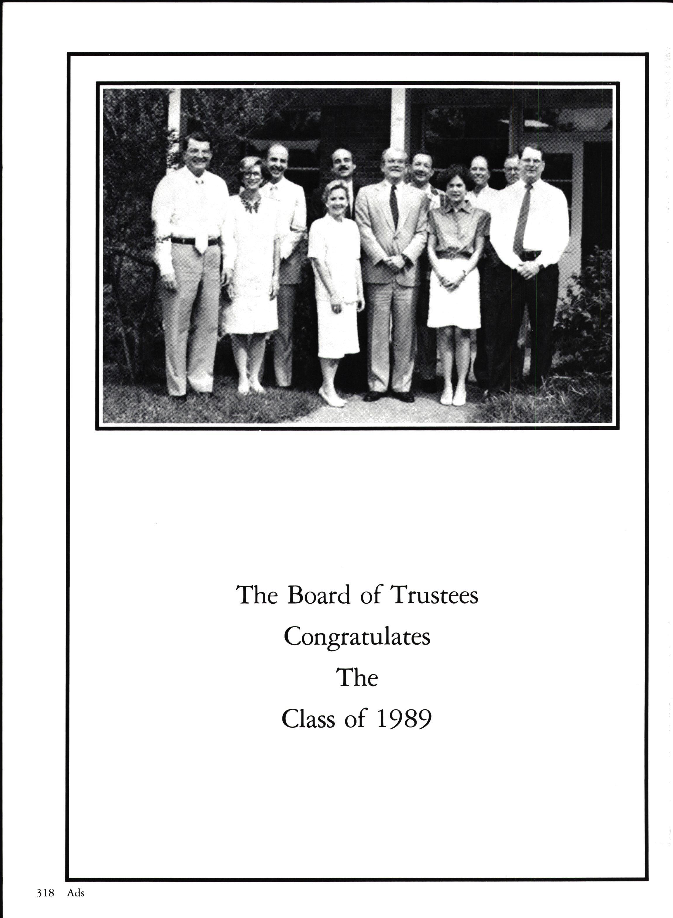 Second, the Class of 1989 has earned a special place in the hearts of the faculty. Over the years, each class develops a distinct personality which seems to be remembered by both members and flaculty. You will be remembered for your class unity and your willingness to rise to a challenge. You seem to have remembered the value of each classmate and to each you gave support and a place. There is no Christian ideal greater than valuing your fellow man.