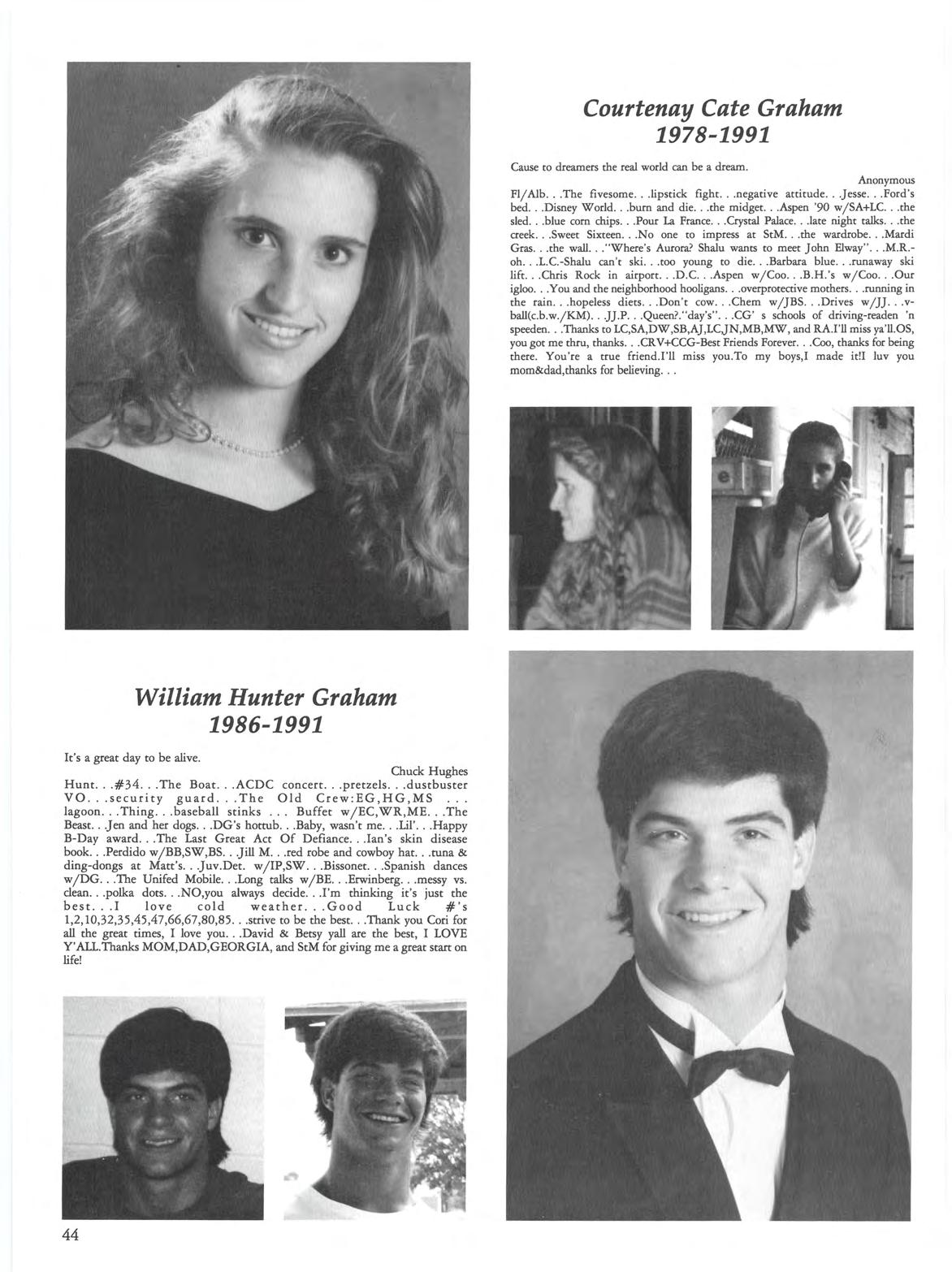 The goodbye makes the journey harder still. Cat Stevens Betsy SC pres Wella Gee coco BE&MC-BFF the rebel. Mardi gras '88' 90 w/MC. French Quarter. out w/EC,SH,LL. Mad Dog Bud's LP '88 w/MC,AC,KM,MD around MD's block. Plum St SCCC '87 Met.playground(snoballs) I never on EG's boat one&one Awesome 4some the exclusives AT's w/MC,MW Kenna ' w/SA .J .B uffett concetts Prom '89 w/MD,AK,NB,SB,ATN P.Passion jug long talks w/HG you always decide mental affair picky eaters polka dots Uncle Hunt weakest moments clean vs. messy cheerbop ·87- '91. EW -camp roomie chair in shower 7th per.study hall '89 "Paige-When I was a freshman" Becksy Get out of the car, Jeff. God Bless Sewanee w/ME,GM,JK. Monique-Prom date '90 knees The jerk. Good luck PN and SJ Thanks for everything MDIloveU Thanks Mom,Dad,Gin,Martin&MAG-ILOVEU TO MY BEST FRIENDS-MC & WHG: I LOVE YA'll & I'LL MISS YOU THANKS FOR GREAT MEMORIES STM!