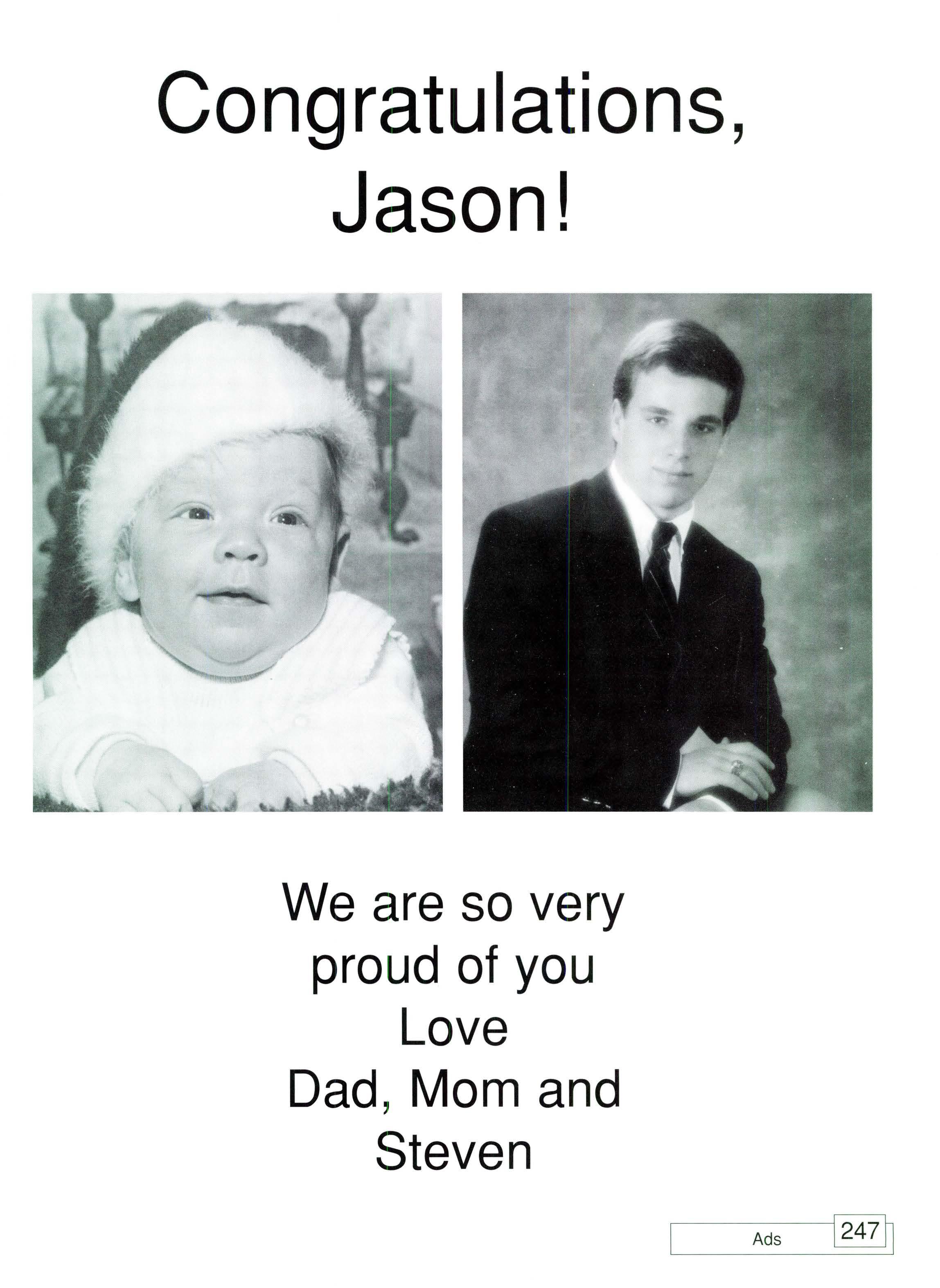 We a lways end th e year w ith a farewell to o u r friends a nd our teachers , but thi s yea r when you rin g th e bell nin ety -four time s, you w ill also say good - bye to your a lm a mater. During hi g h sc hool , yo u probably aske d, "When will this e nd ?" or remarked " I ca n ' t wait until I leave." Well, you are finally out of here . After the next few months, though yo u will wish you were ba ck. You can a lways come back to vis it , of co u rse, and your memories will las t a lifetim e. To help you remember , we ' ll show you so m e pictures from t he past. Yes, in the black tu xedos and drap es, yo u all look ha ndsome and beautiful , but who's go in g to remember that ? Funny faces , sad lo oks, and the s mil es are what you will c heris h for the rest of your life. Treasure this yea rbook , and never forget
