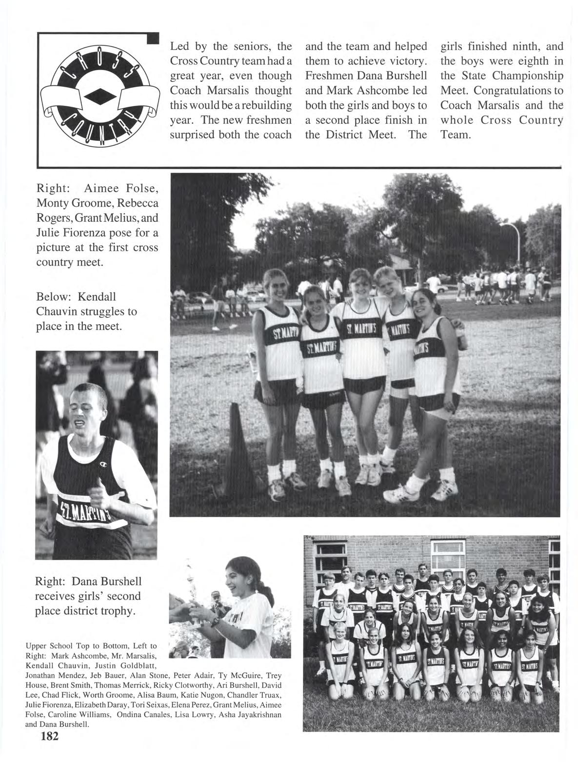 On the night of November 2, 1996, the entire St.Martins upper school gathered in the gym. It was a night of dancing and fun led by the d.j. Around I 0:30 everyone gathered for the procession of the homecoming court and the crowning for queen. As the court moved