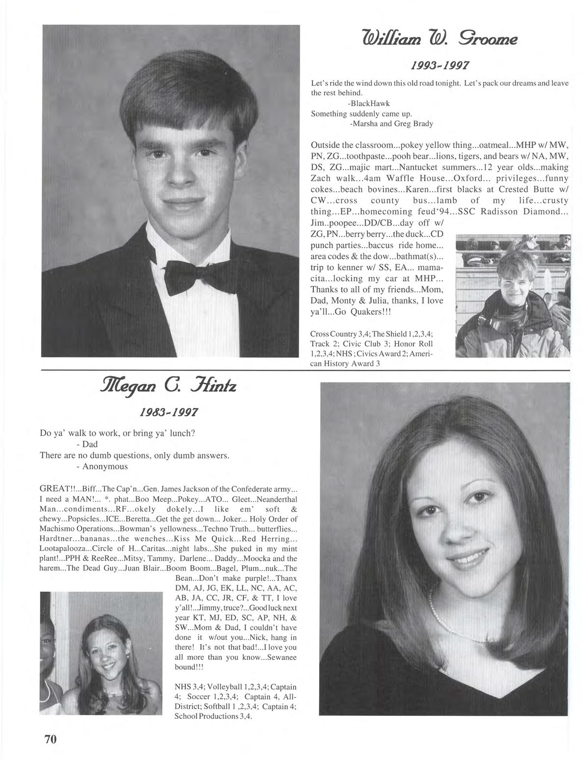 -James Hetfield, Meta l licaMe Pi l iar. #35 Oaf.. .Jack Phi lo sop her. length What? 1 Great Awakening?!? Ham&Cheese Prom '96 Freesia Princess Stalling Mr. M i stoffelees Ri bena Homecoming '96 Goosemer Chihuly . .. WYSE-fainting w/ AC. .. A Long December. .. Endymion '97 ... Mardi Gras w/ AB ... Yellow Cup! ... 105.3 80's lw .. .l would walk 500 miles St Stanislaus Newman by 1 !...Blackjack w/ AC,AB,&CC Deep in terms of depth Pooh socks 33 pts Keep i n to u ch!: AC,AB,CC,LL,EK,JR, ZG Al43 Good Luck Mark; Mom, Dad, I Love You . .. Later U.S.A. Hello Nottingham. Basketball 1,2,3,4 captain 4 A ll -District 3,4 MVP 3; go lf 2,3,4 MIP 2,3; tennis 1,3; NHS 3,4 VP 4; Science Olymp iad I ,2,3,4;JETS 3,4;Civic club 3; Boys' State4;Jefferson&Yale book awards 3; Ra ll y 1,2,3.
