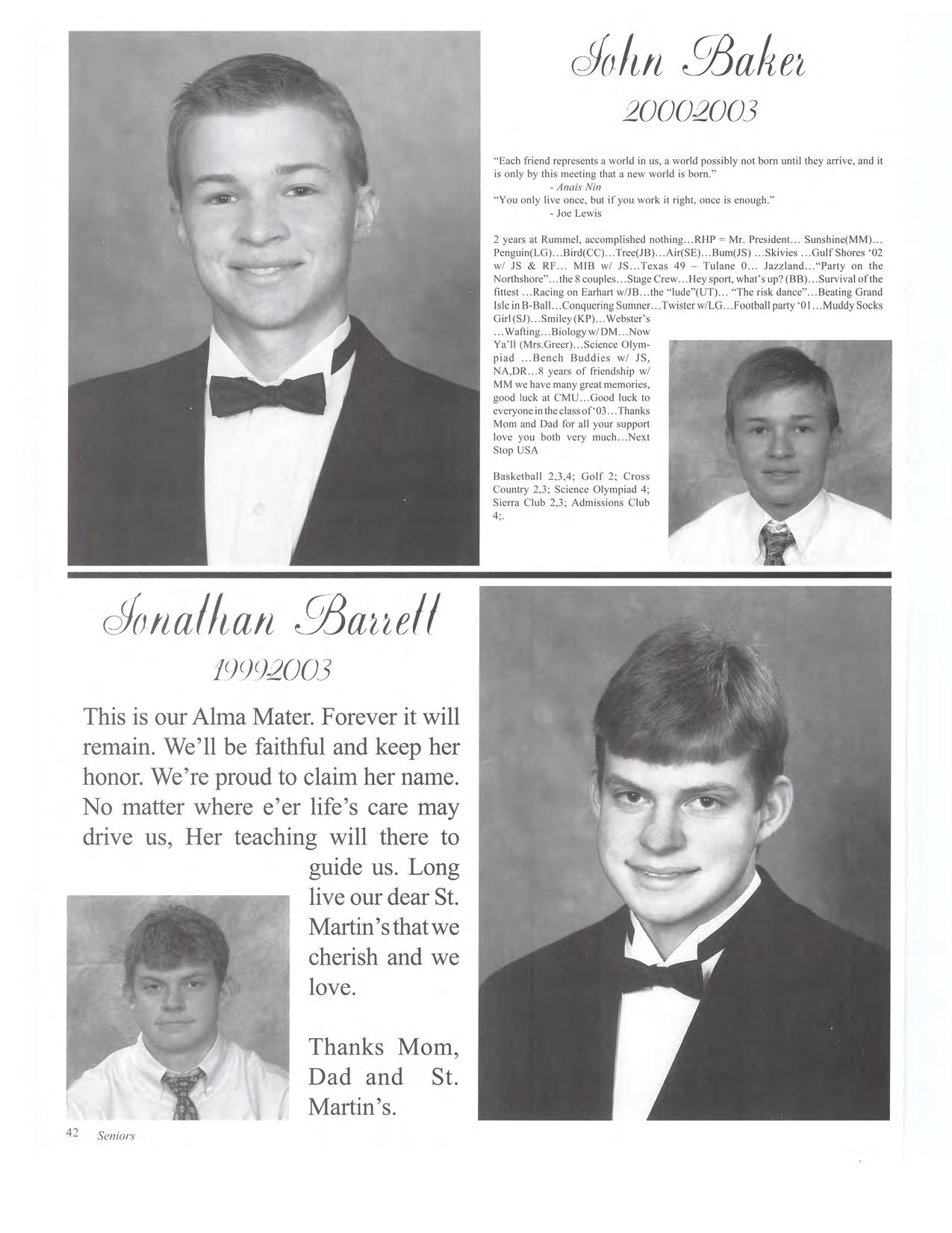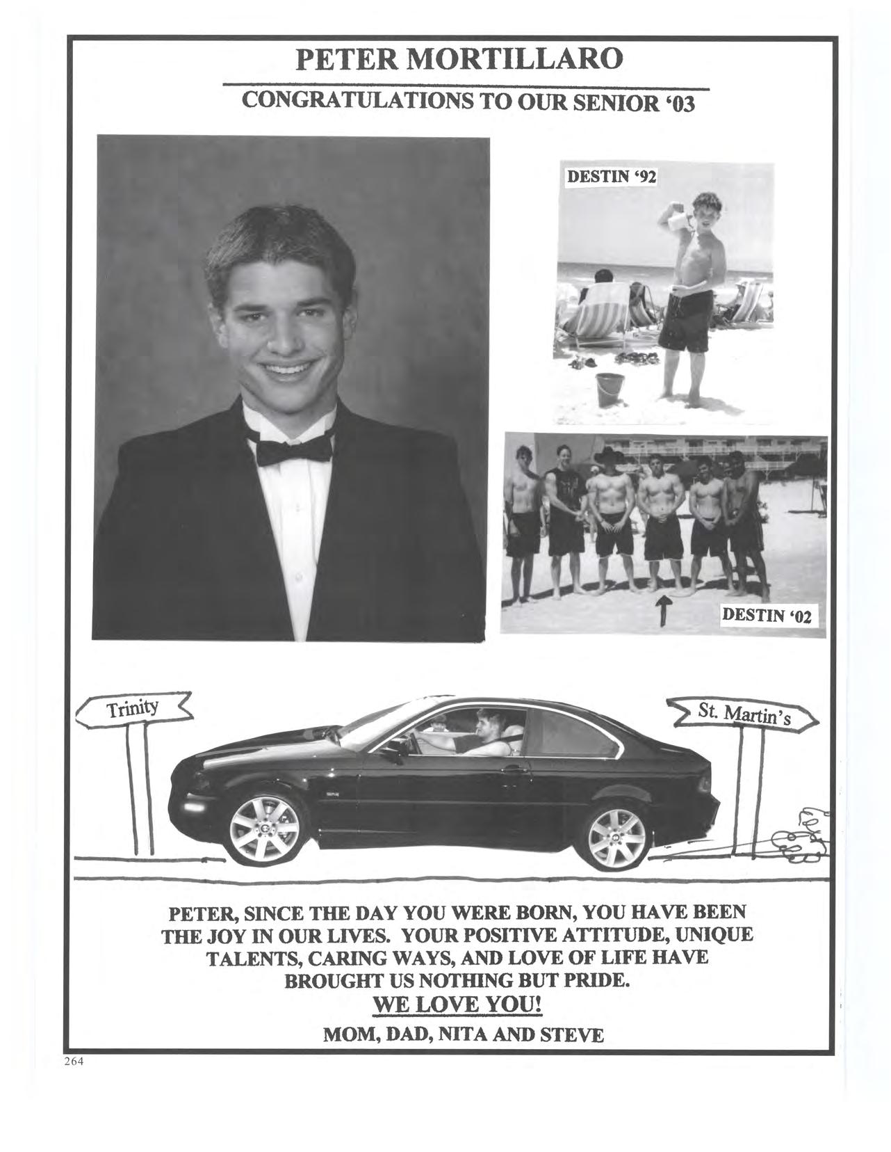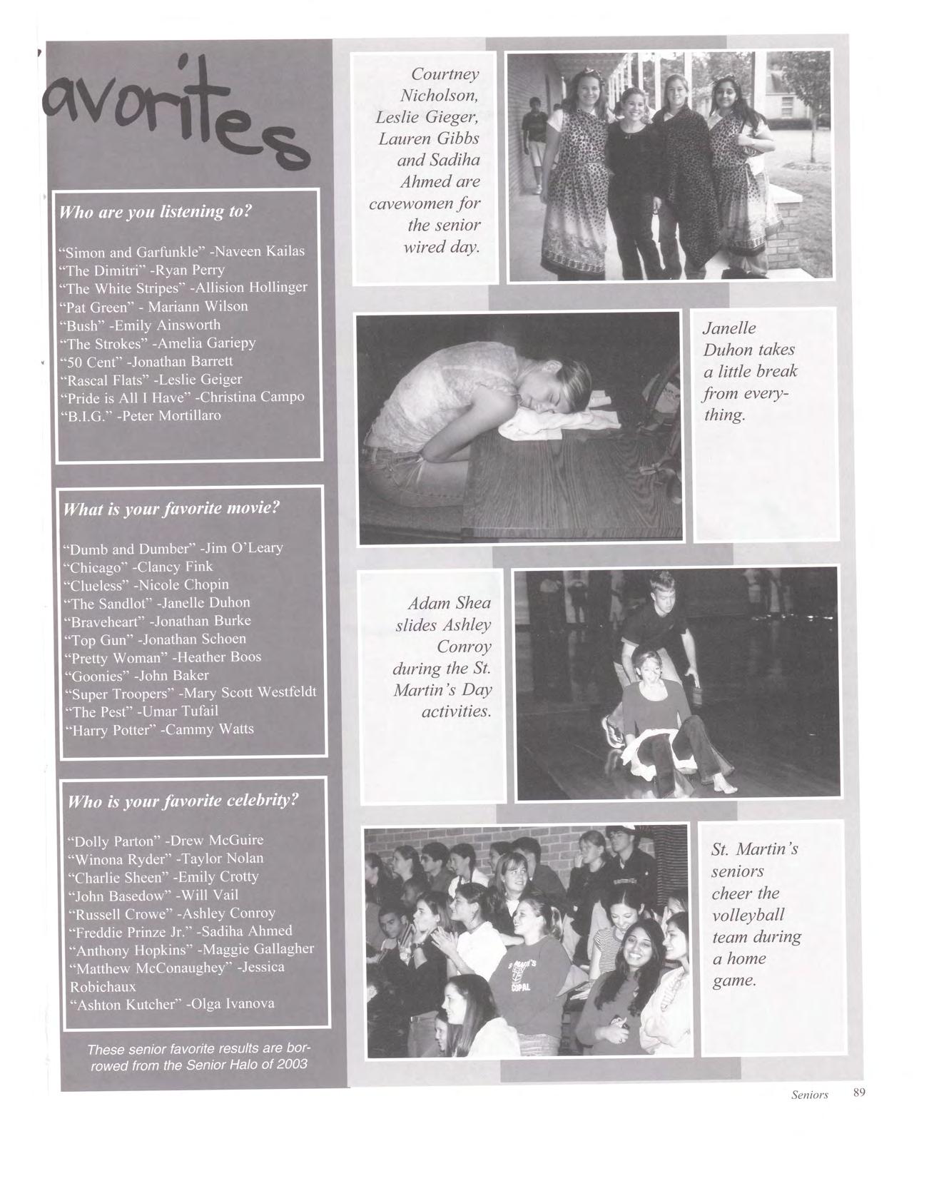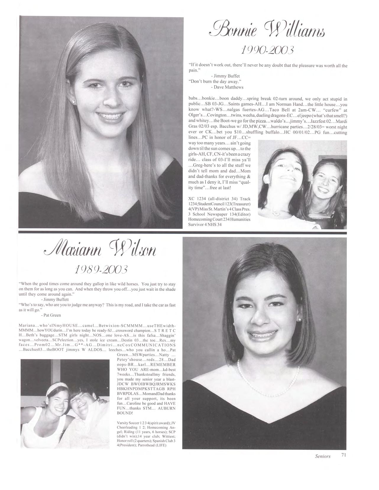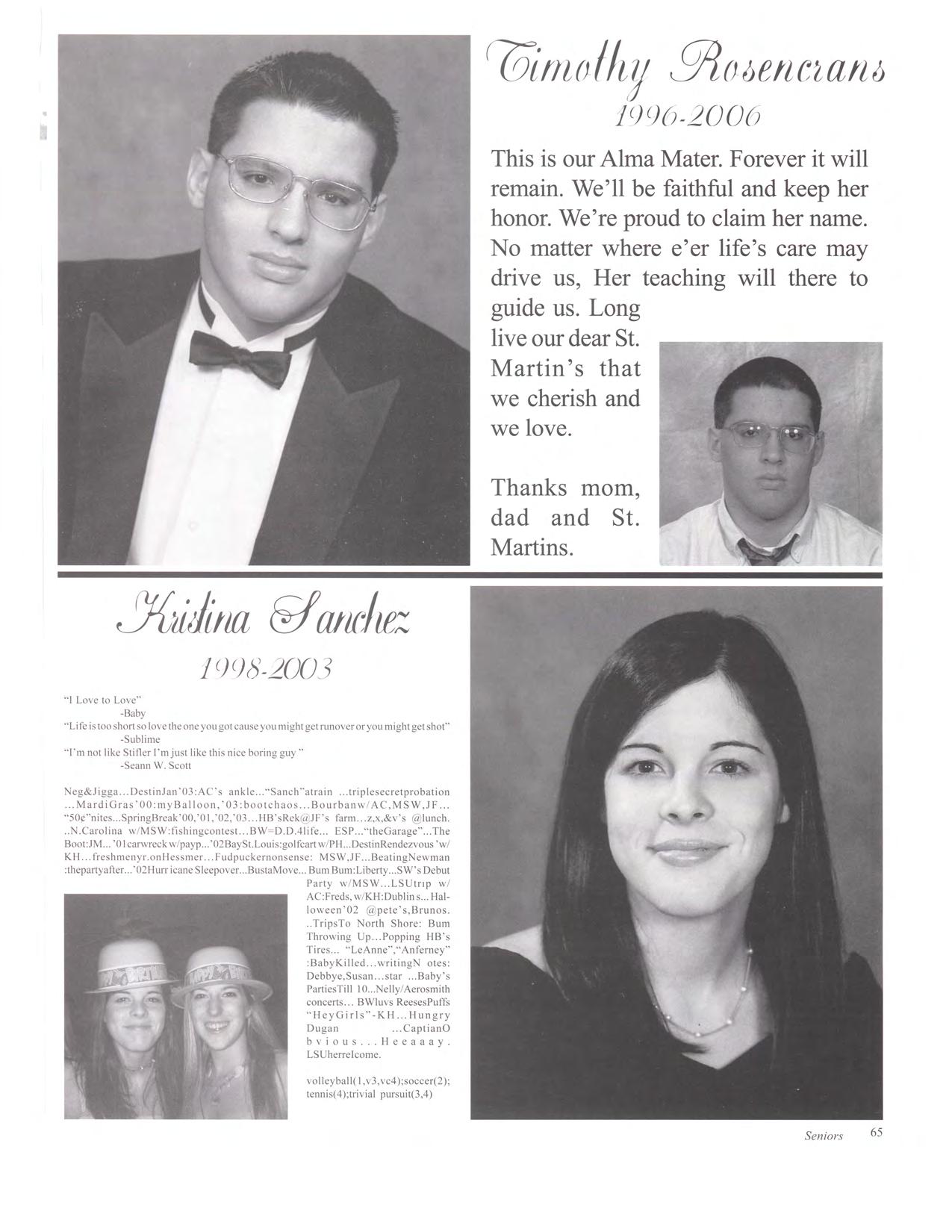 With enormous pride, love, and wonder we have watched as you entered St. Martin's as a beautiful but dependent member of the pre-kindergarten class in 1989 and now as you prepare to leave St. Martin's as a beautiful, independent, intelligent, and dignified young woman and member of the graduating class of 2003.