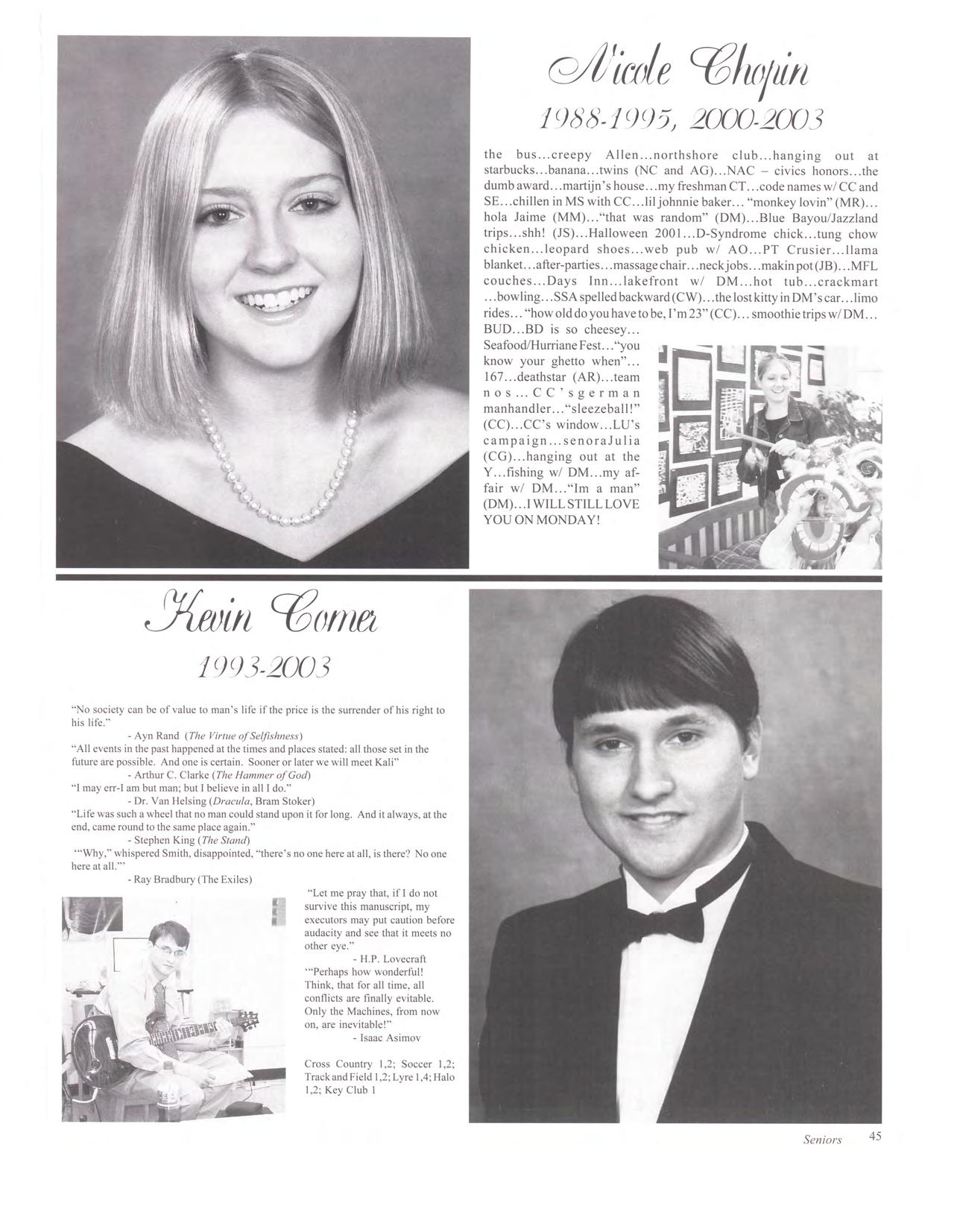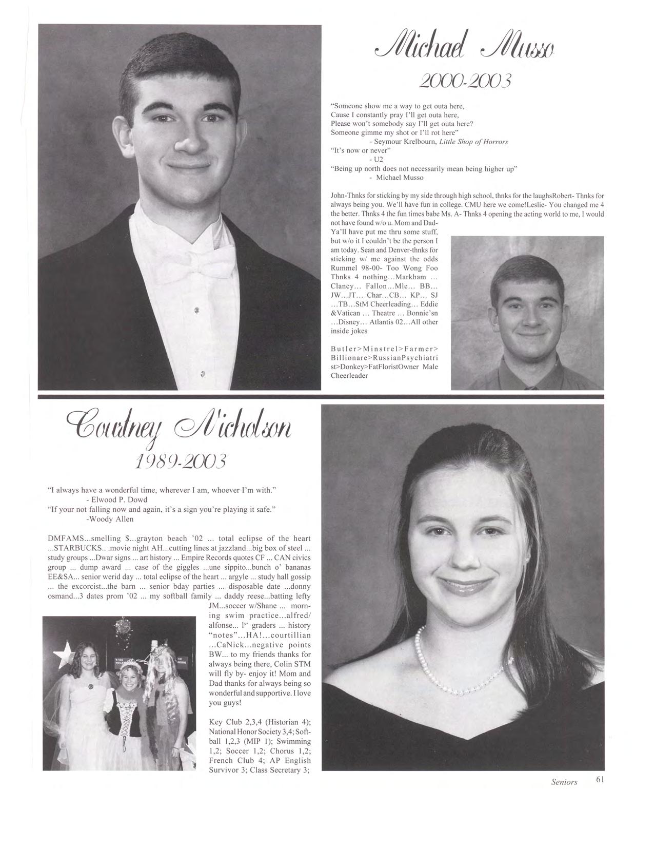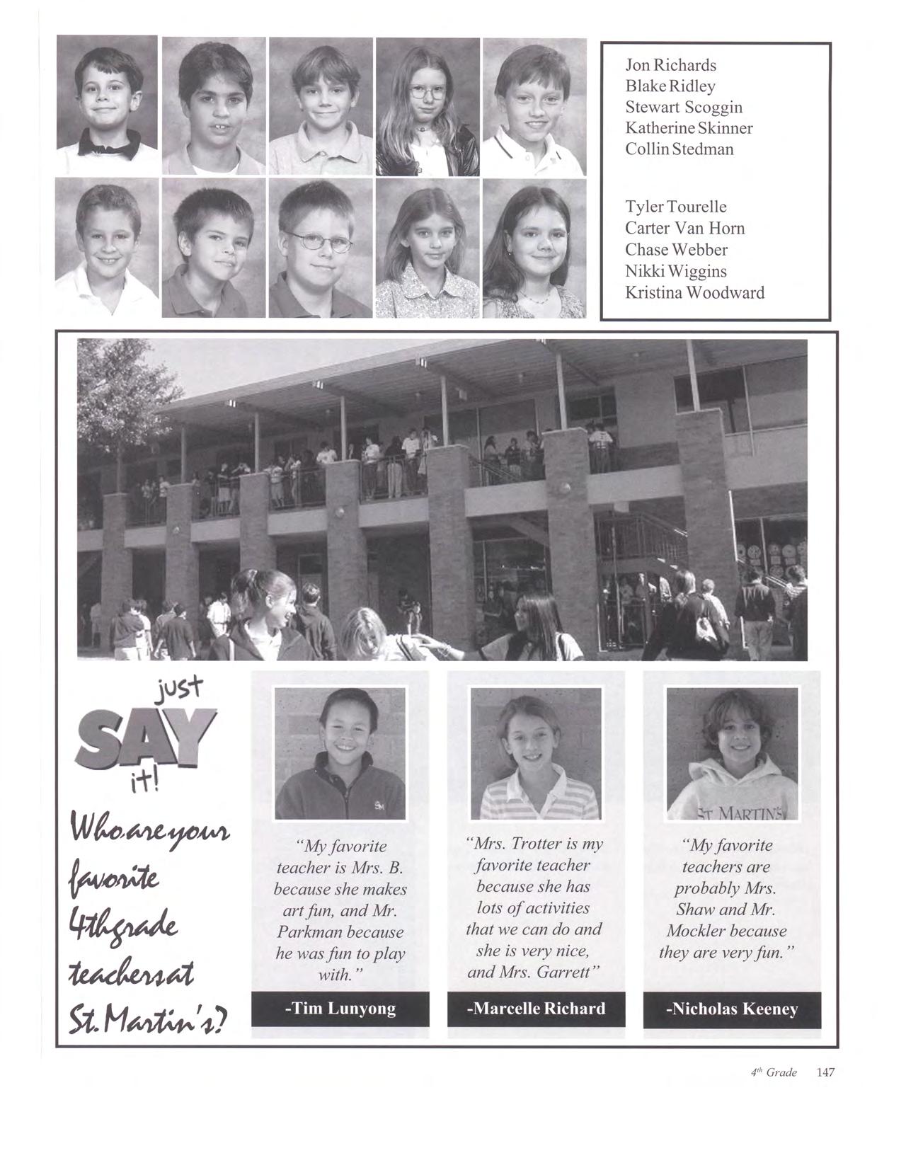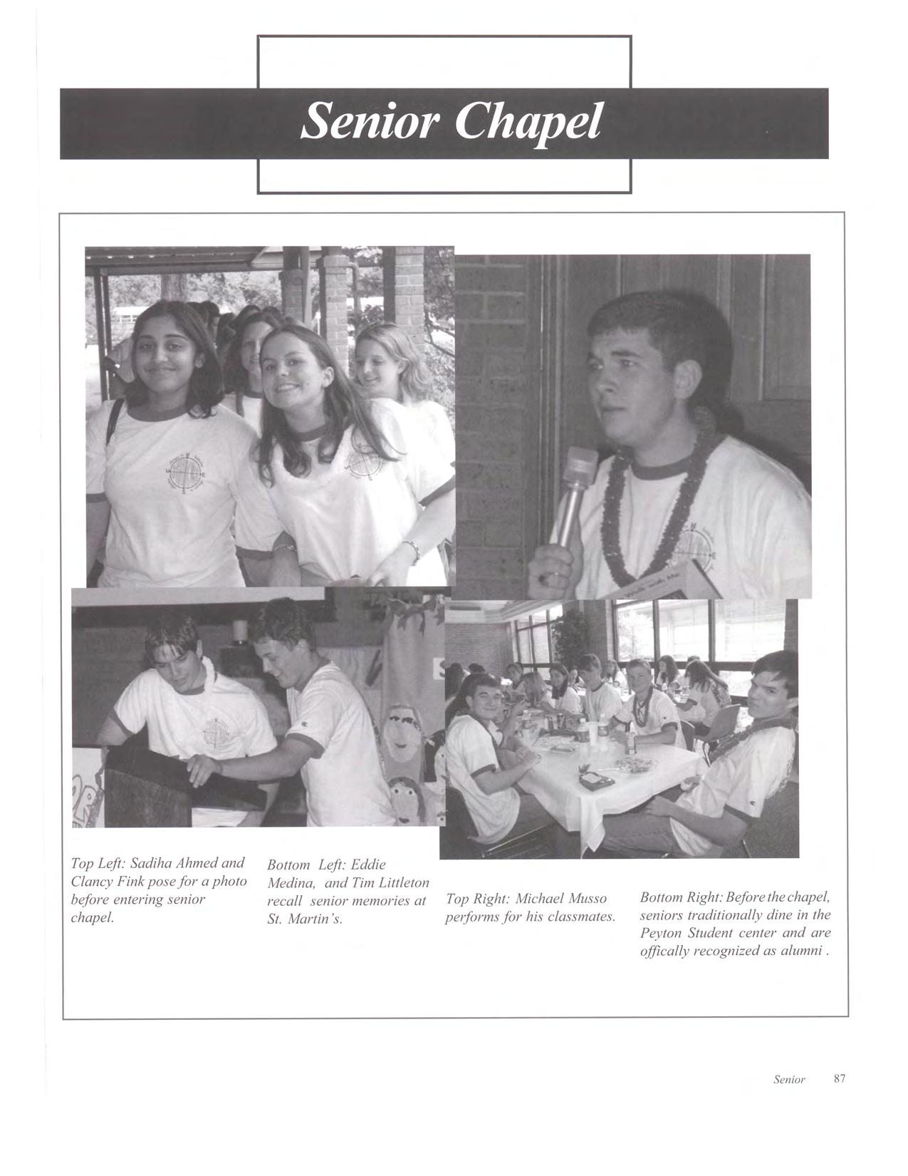 With enormous pride, love, and wonder we have watched as you entered St. Martin's as a beautiful but dependent member of the pre-kindergarten class in 1989 and now as you prepare to leave St. Martin's as a beautiful, independent, intelligent, and dignified young woman and member of the graduating class of 2003.