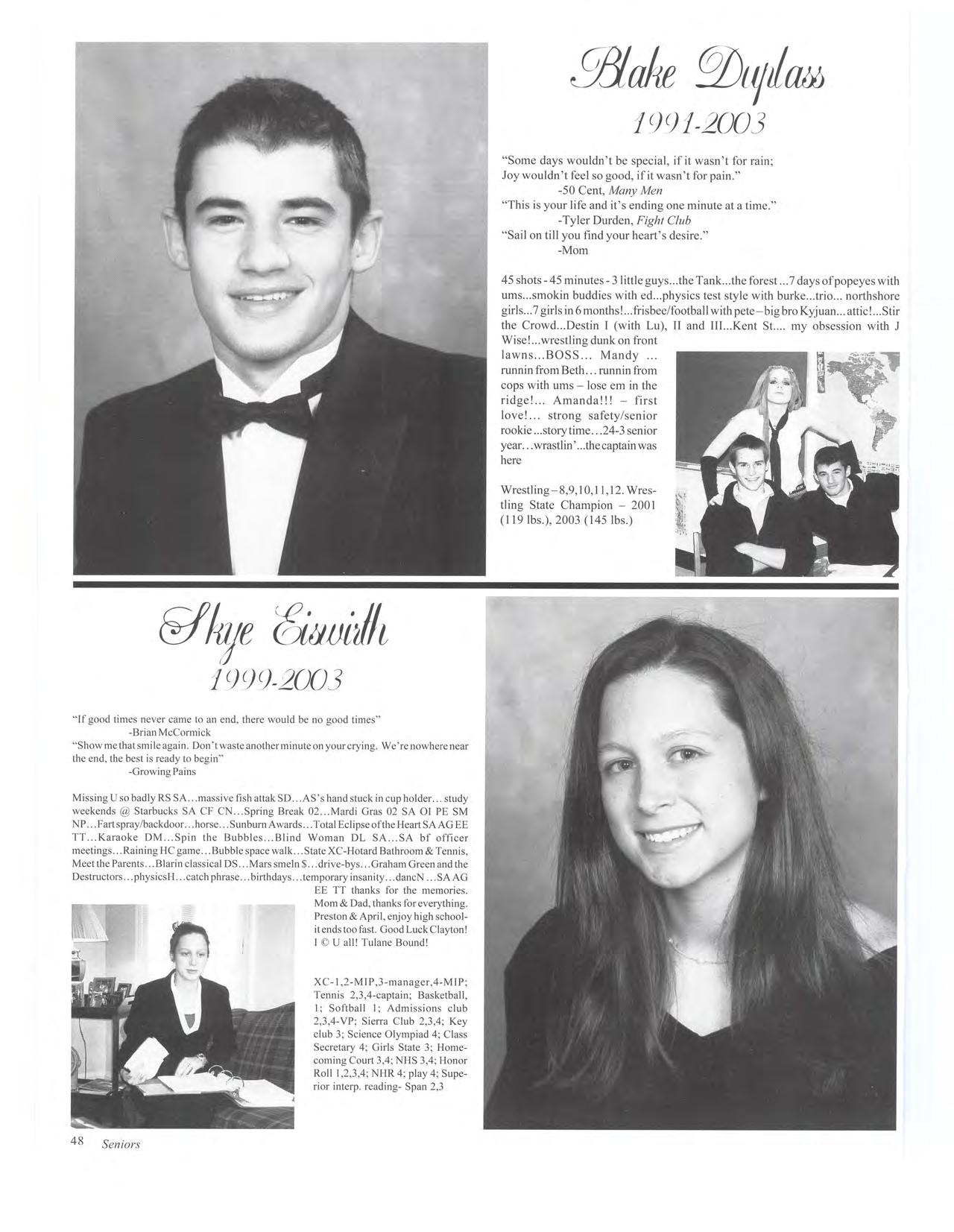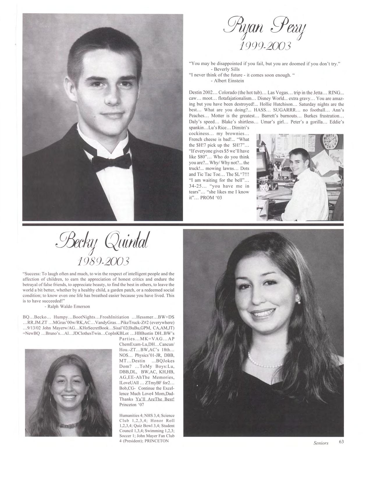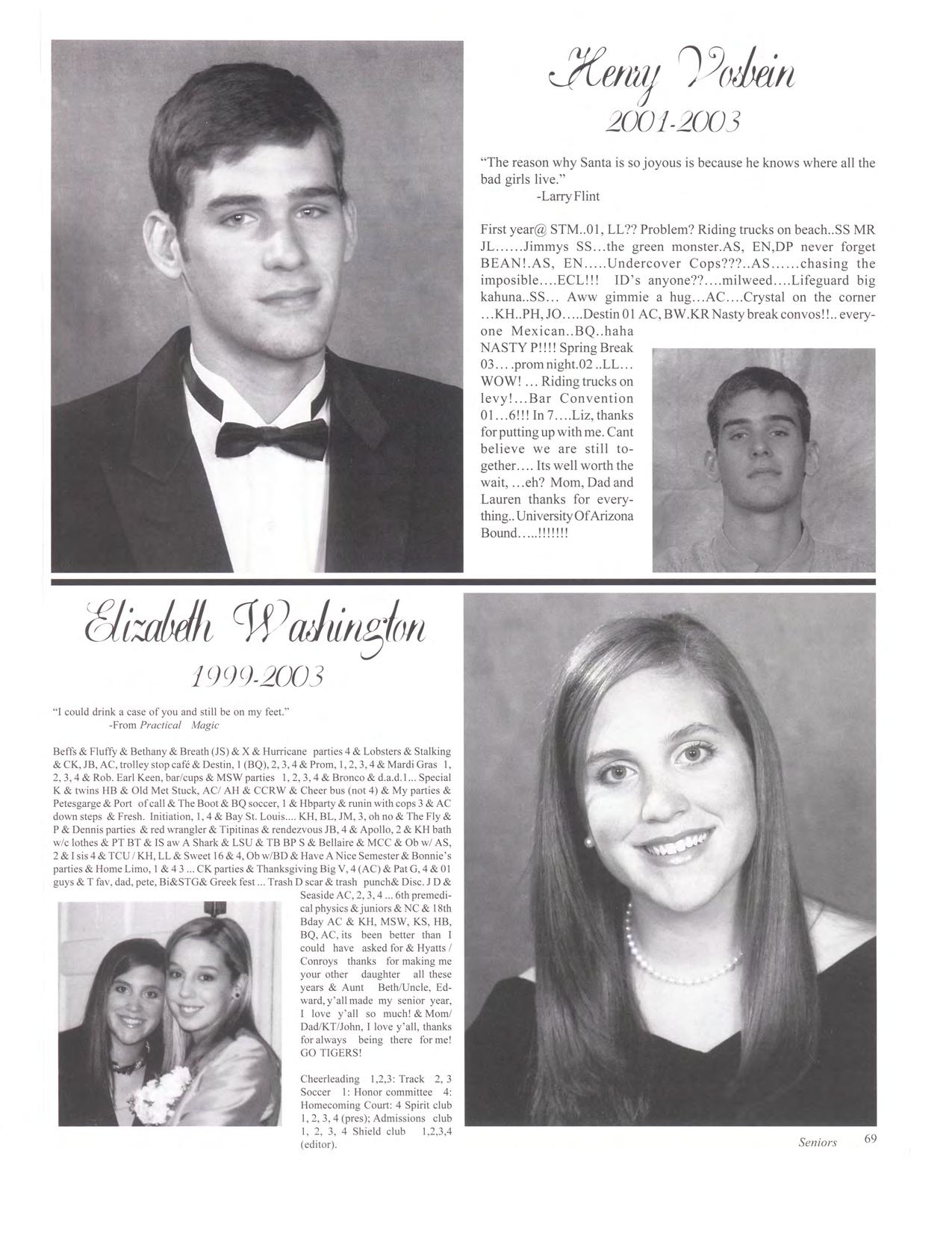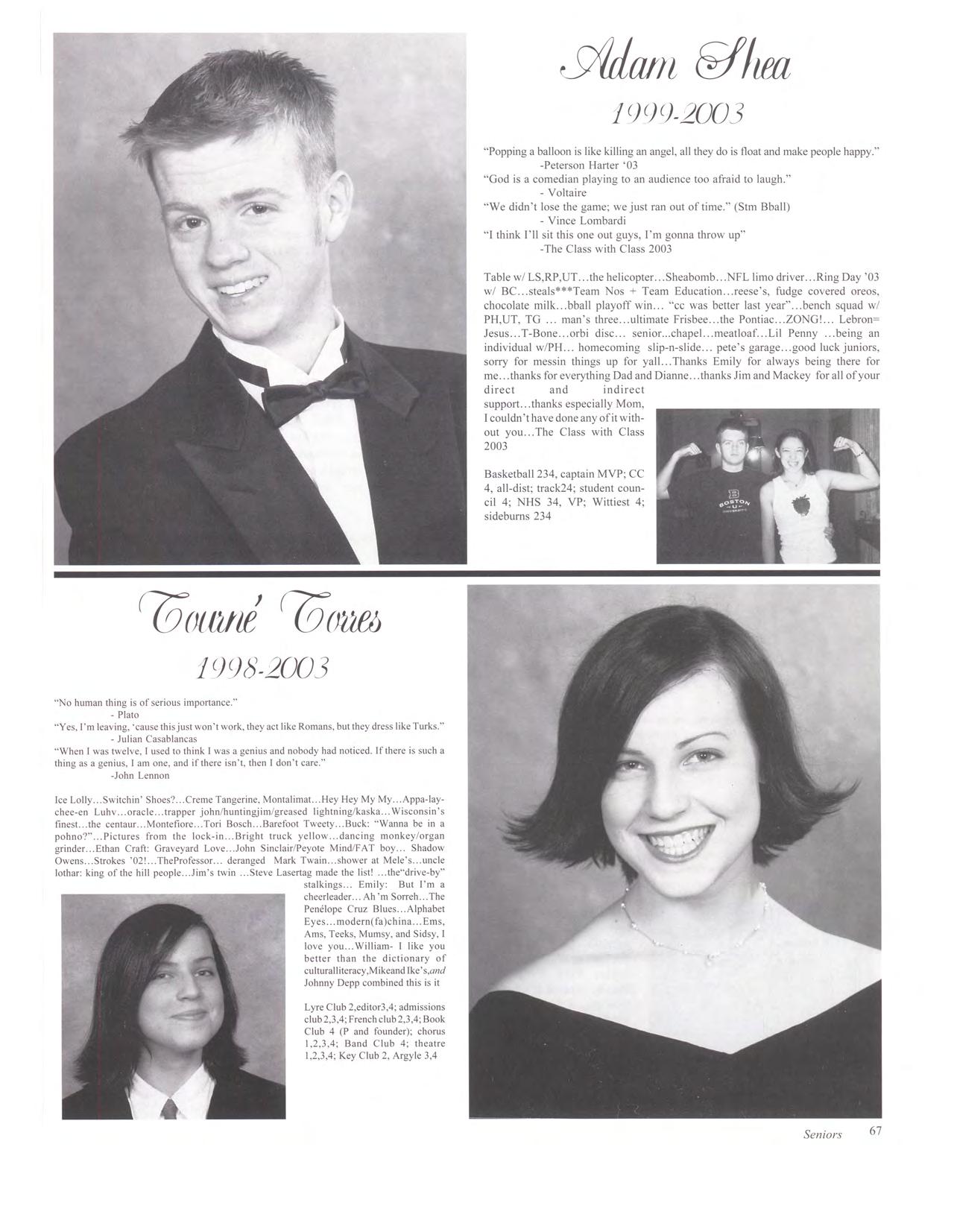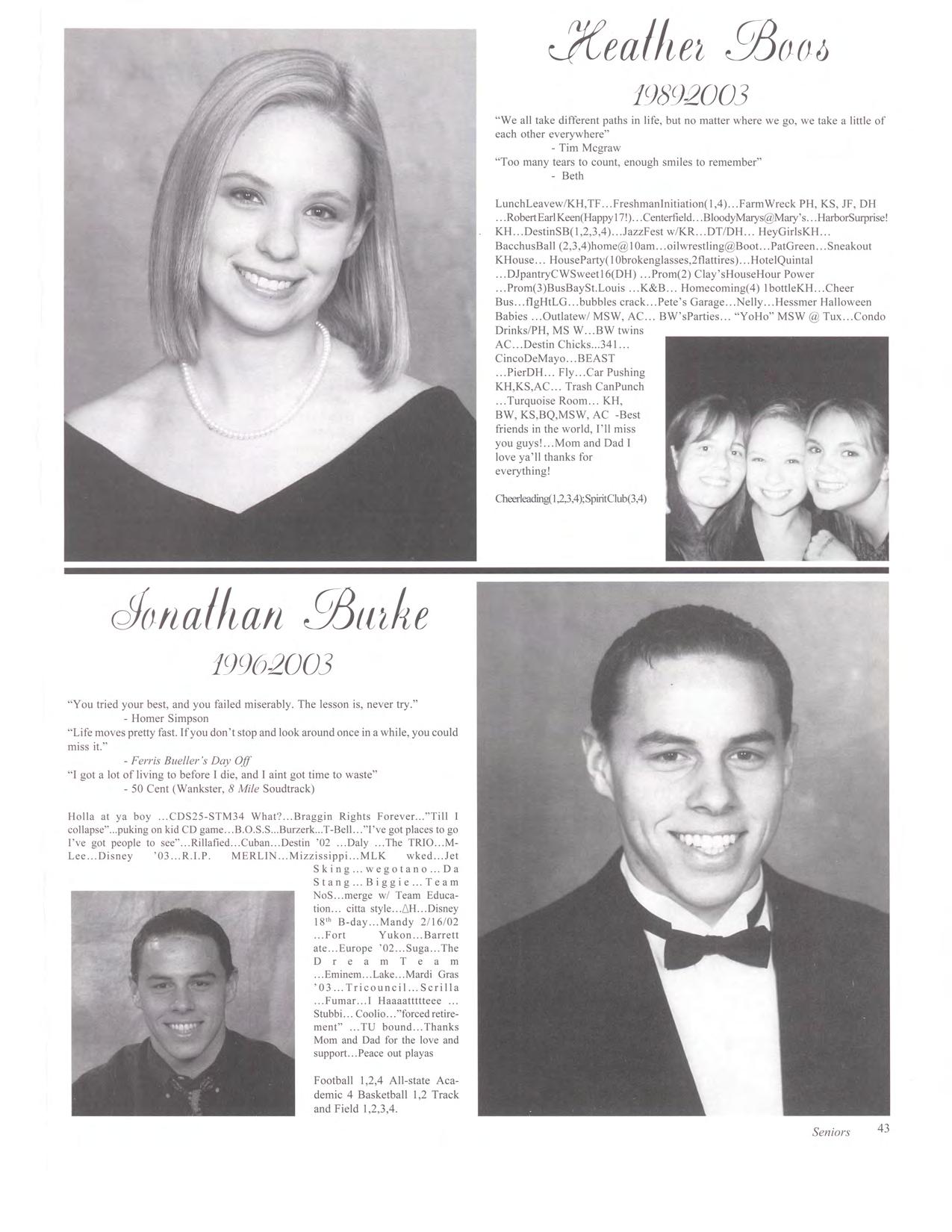 With enormous pride, love, and wonder we have watched as you entered St. Martin's as a beautiful but dependent member of the pre-kindergarten class in 1989 and now as you prepare to leave St. Martin's as a beautiful, independent, intelligent, and dignified young woman and member of the graduating class of 2003.