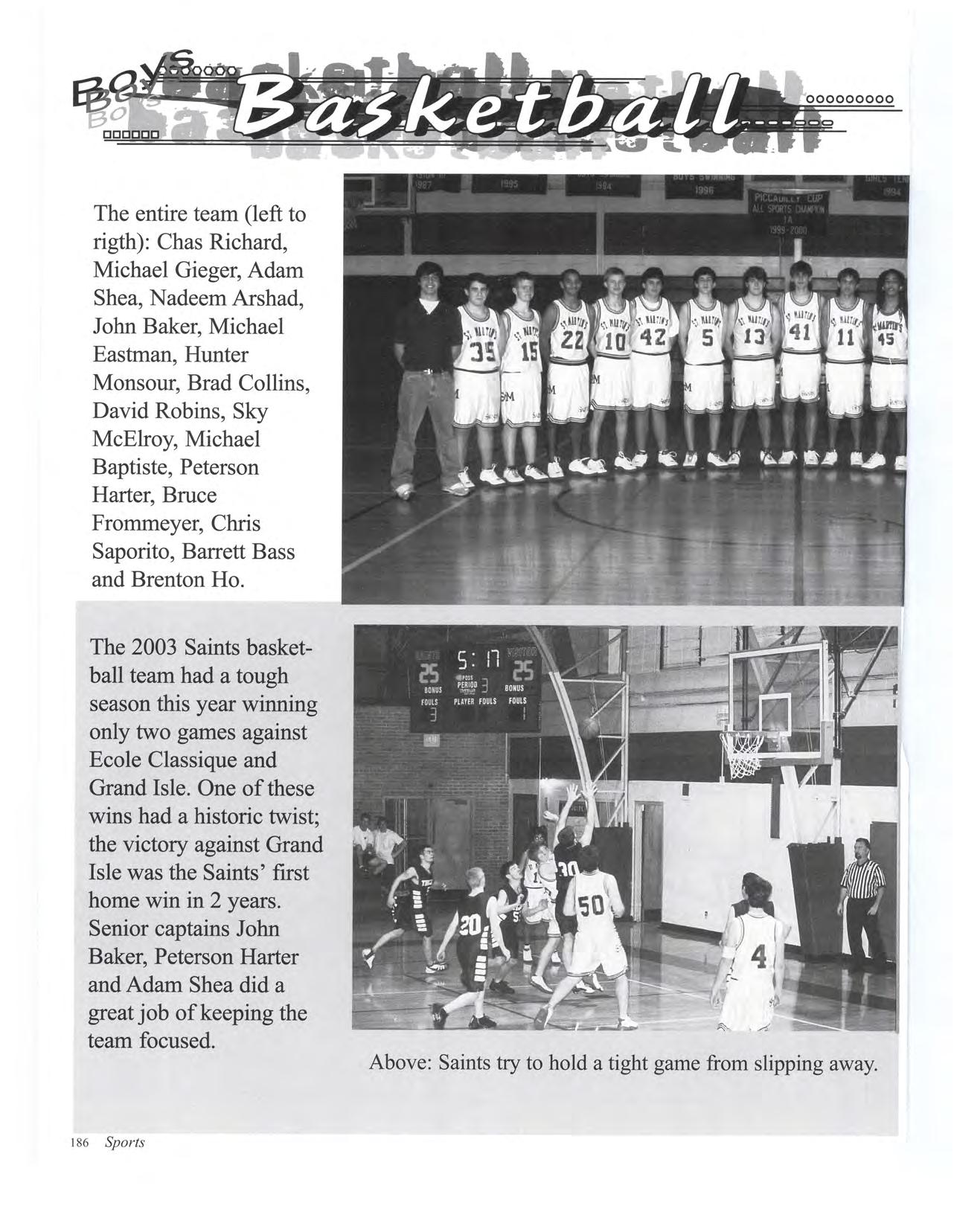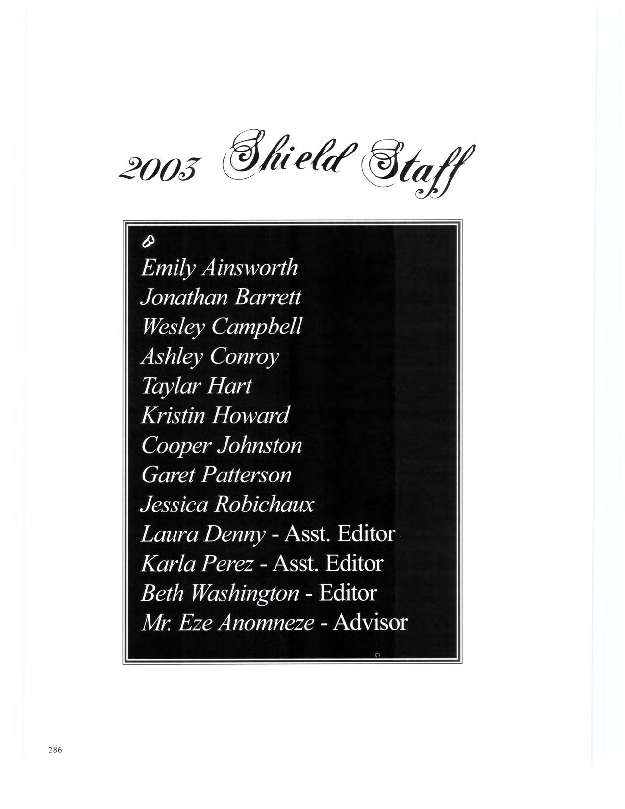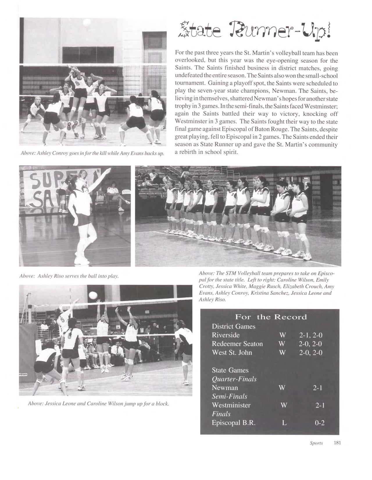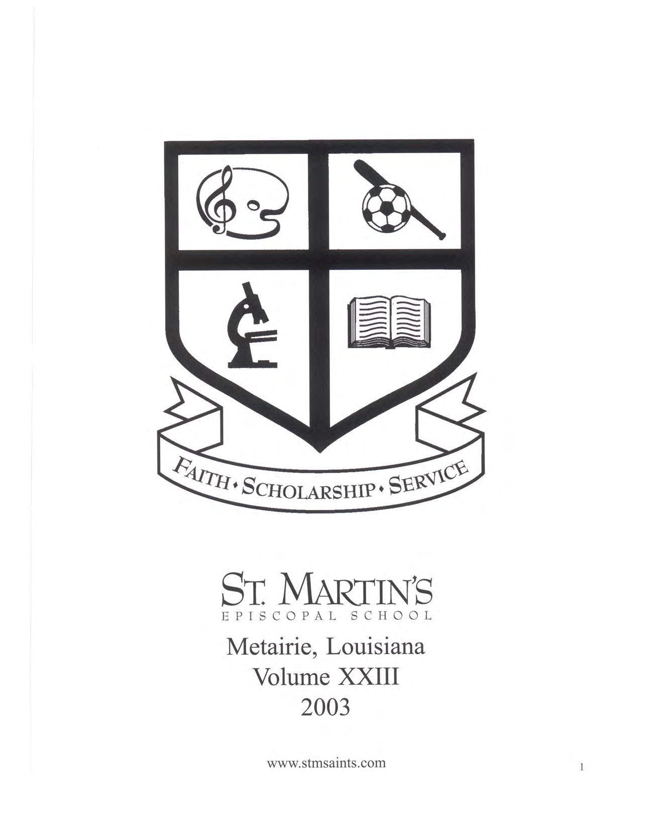 ----:::=-----=-~ •SCHOLARSHIP• ST. MARTIN'S EPISCOPAL SCHOOL Metairie, Louisiana Volume XXIII 2003 www.stmsaints.com