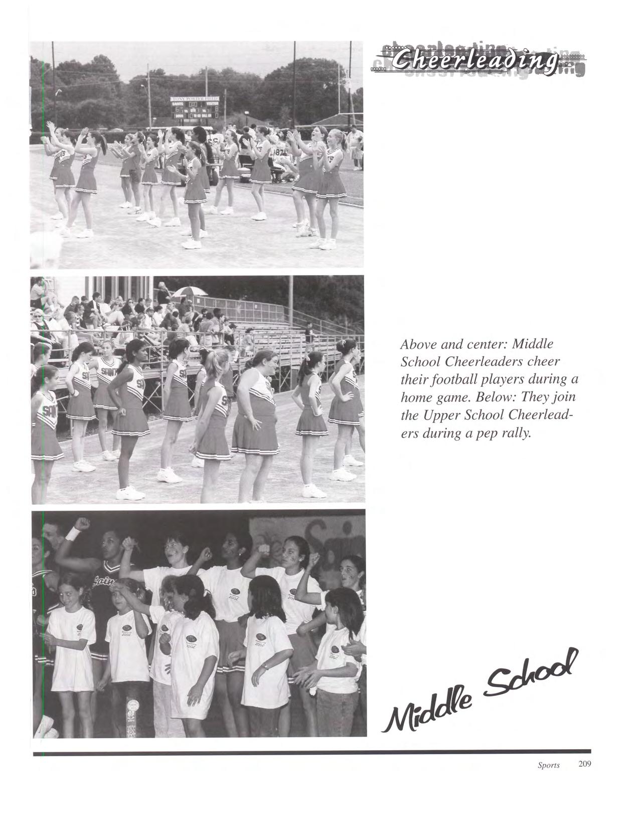 Above: The Middle School cheerleaders prepare to support the team. From left to right: Lauren Milner, Kayla Marmillion, Blake Johnston , Sarah Beth Pansano, Shannon English-Rhoden, Lauren Waters and (below) Megan Dodge.