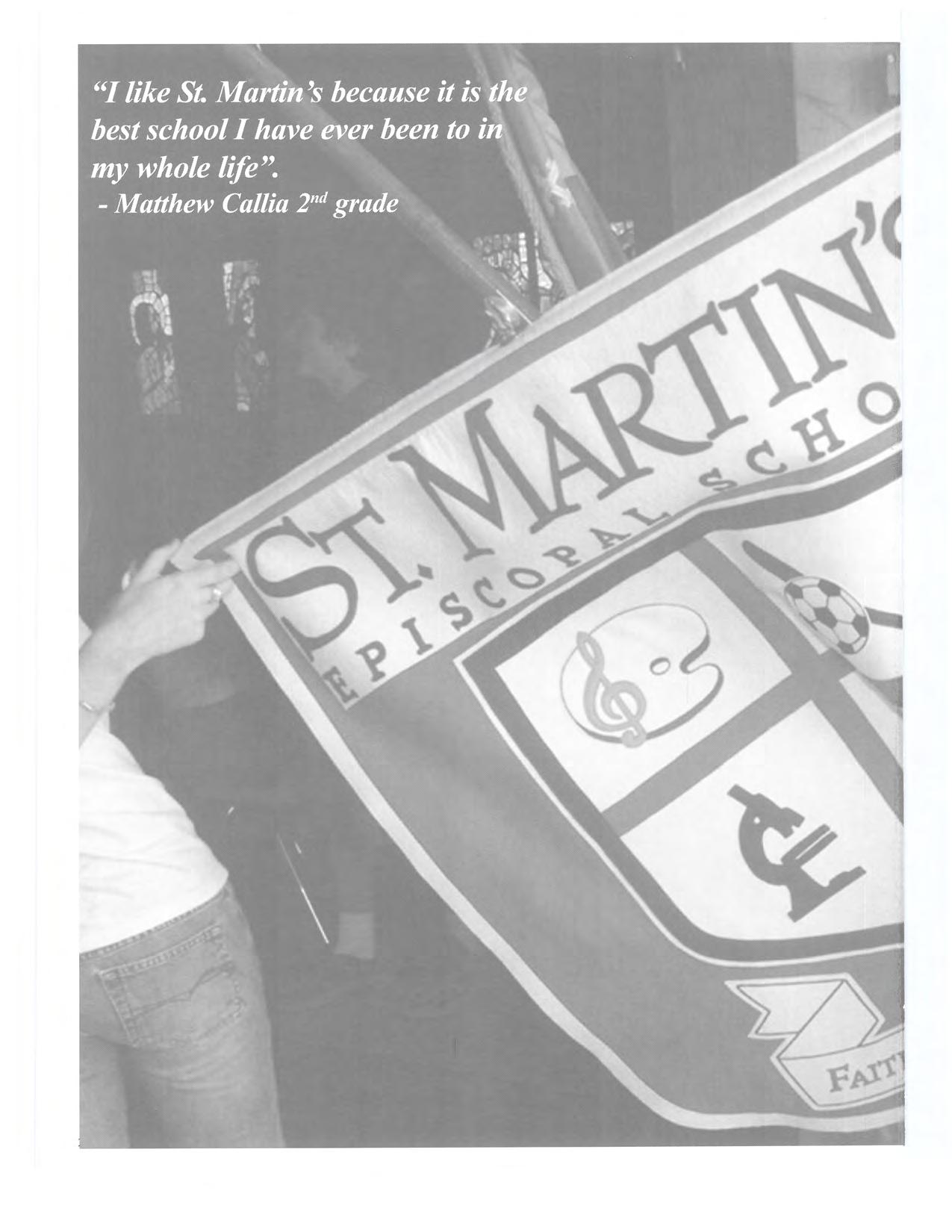 You worked hard and played hard, and learned enduring lessons on the field and in the classroom. In the fourteen years at St. Martin's you have emotionally, spiritually, and intellectually developed in many ways. Each bit of wisdom and experience has added another bright facet to your bright and wonderful life.