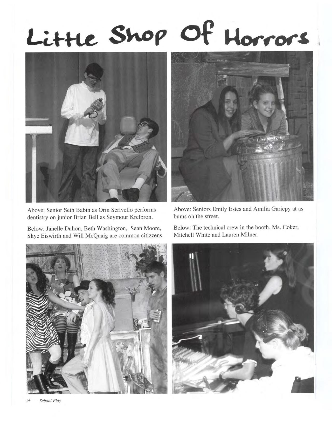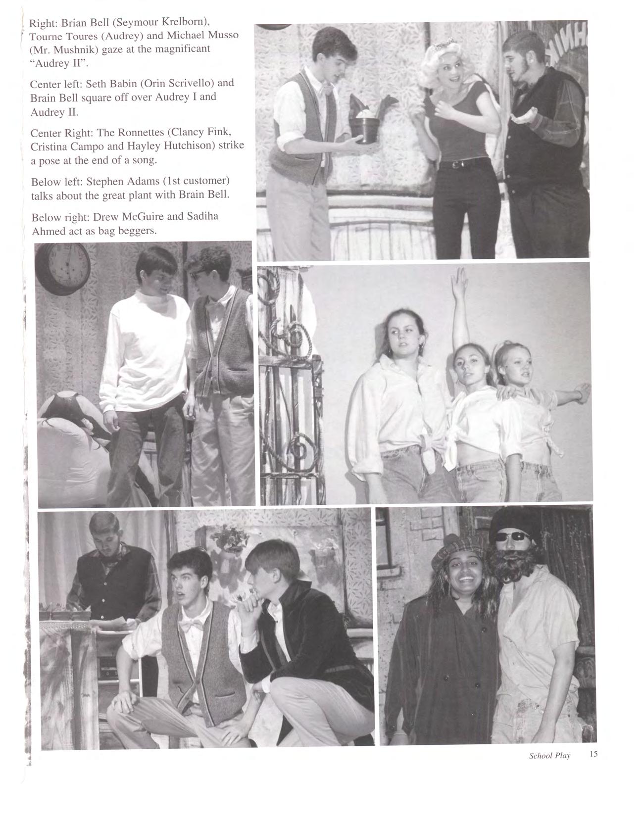 Right: Brian Bell (Seymour Krelborn), Tourne Toures (Audrey) and Michael Musso (Mr. Mushnik) gaze at the magnificant "Audrey II".