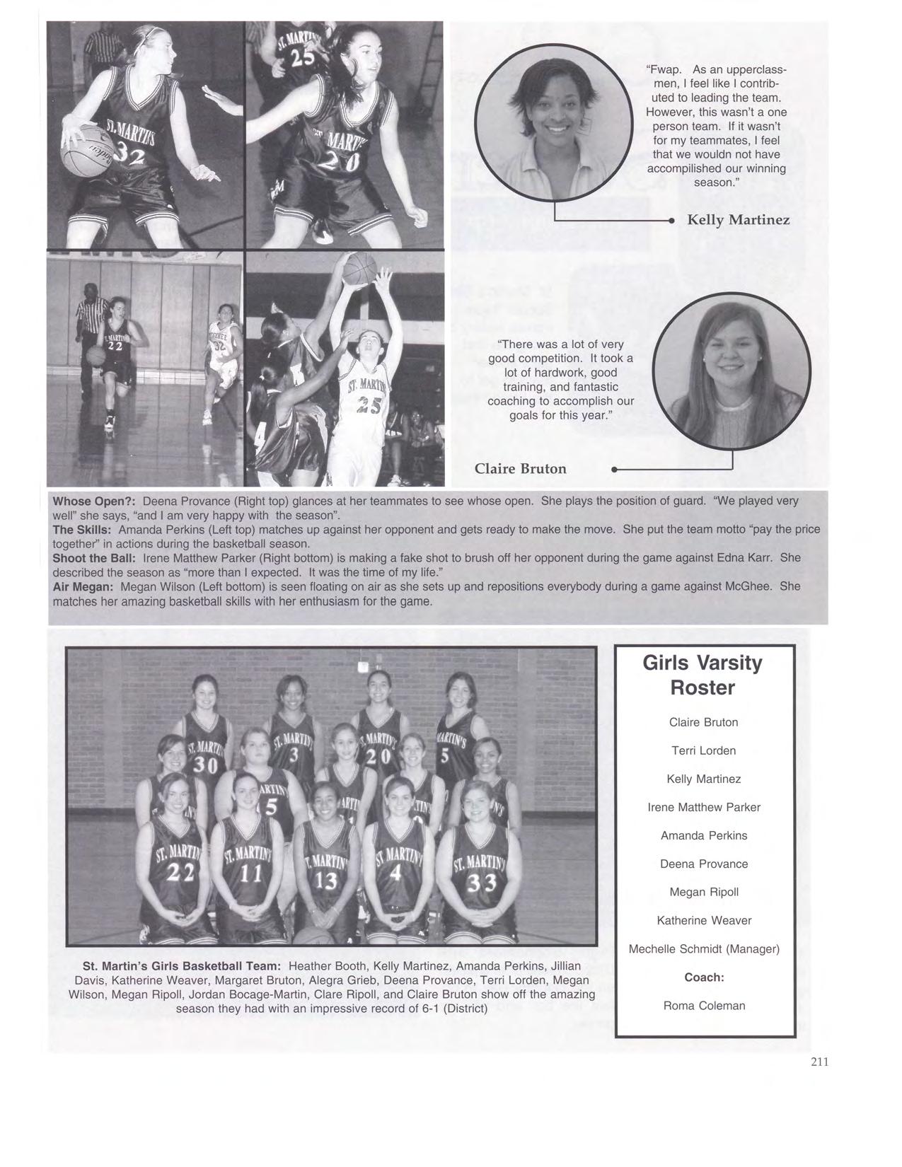 We traveled together with several very talented club volleyball teams; and the "Gibbles' serve" was a " killer" known throughout the south With dedication, competency , and enthusiasm you represented St. Martin ' s on the varsity softball team and junior varsity volleyball team. You were always a team player and , regardless of the circumstances, consistently cheered for your fellow teammates and always brought honor and glory to your team and to your school.