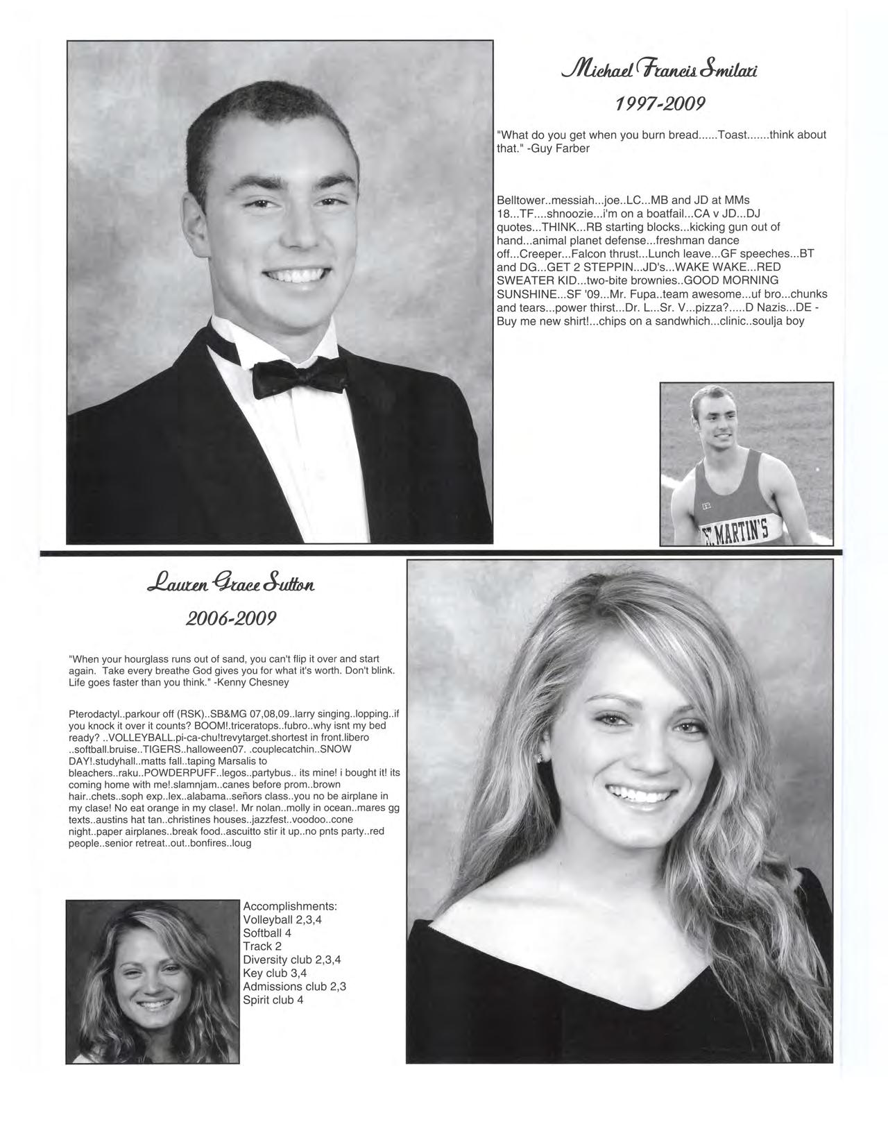 From a boy to a man we've watched you grow Now it's time to spread your wings and fly Cherish all the high school memories you have Carve a future far and wide .....,______
