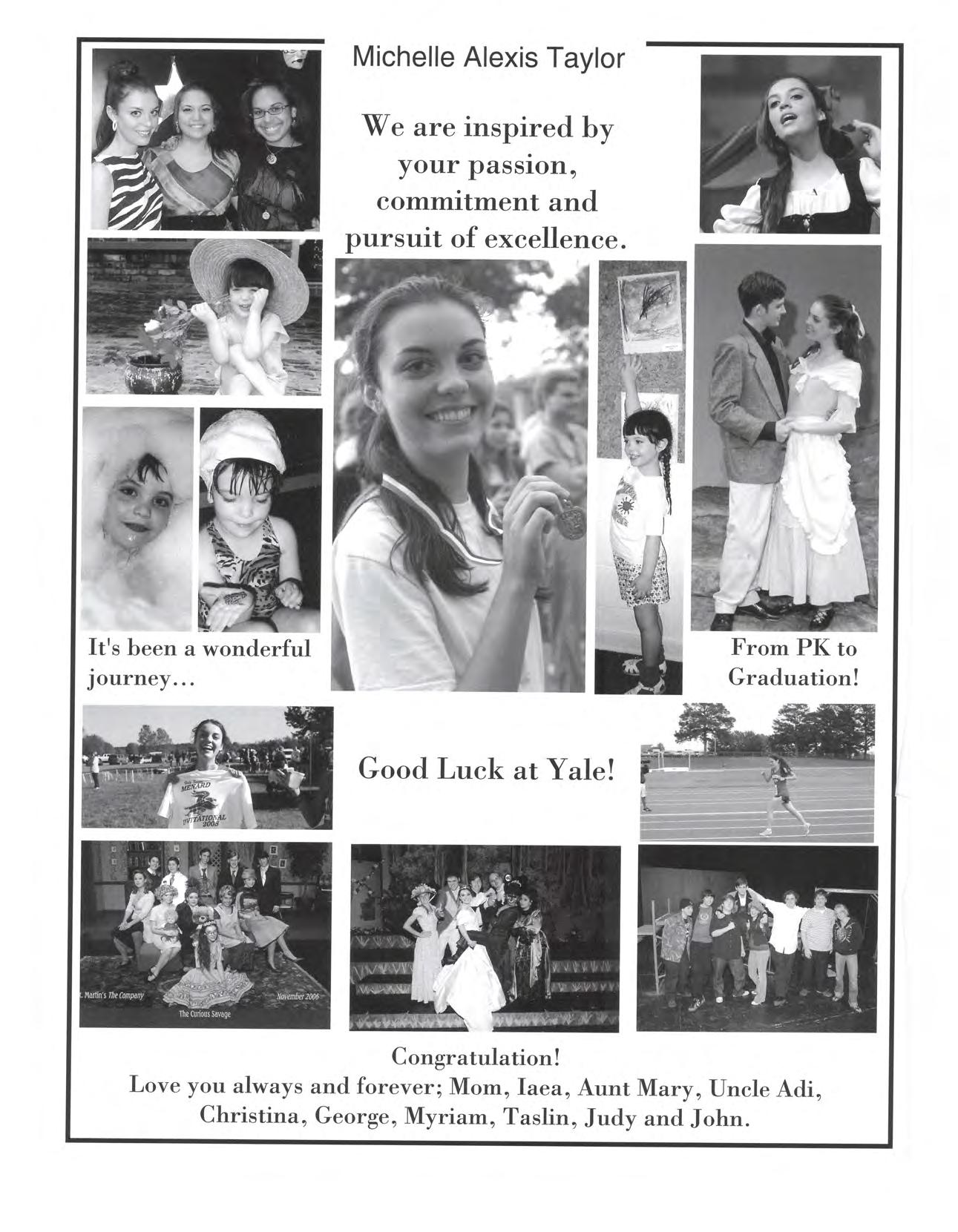 Love you always and forever; Mom, Iaea, Aunt Mary, Uncle Adi, Christina, George, Myriam, Taslin, Judy and John.