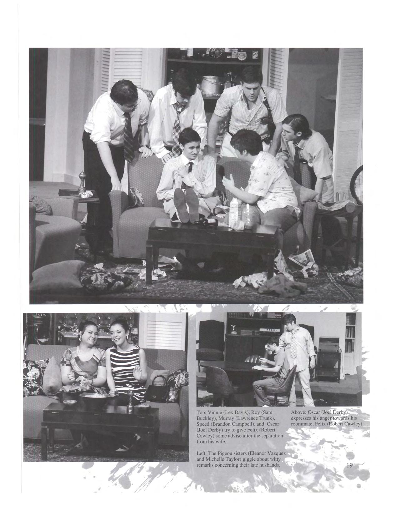 Above: Oscar (Joel Derb)() expresses his anger1towar s his roommate. Felix (Robert Cawley).