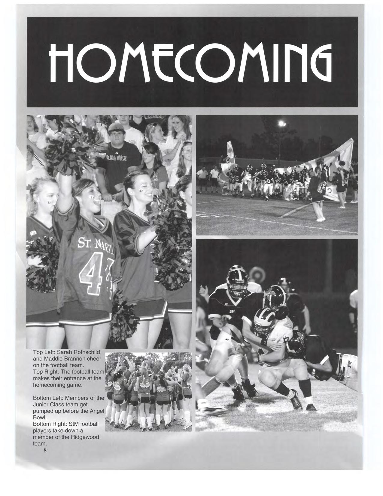 Top Right: The football team makes their entrance at the homecoming game.