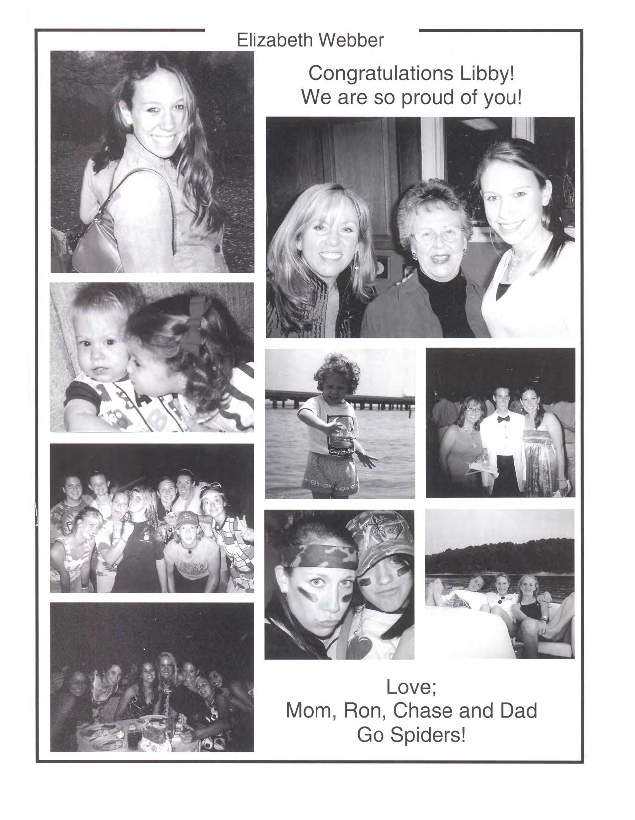 Elizabeth Webber Congratulations Libby! We are so proud of you! I Love; Mom, Ron, Chase and Dad Go Spiders!