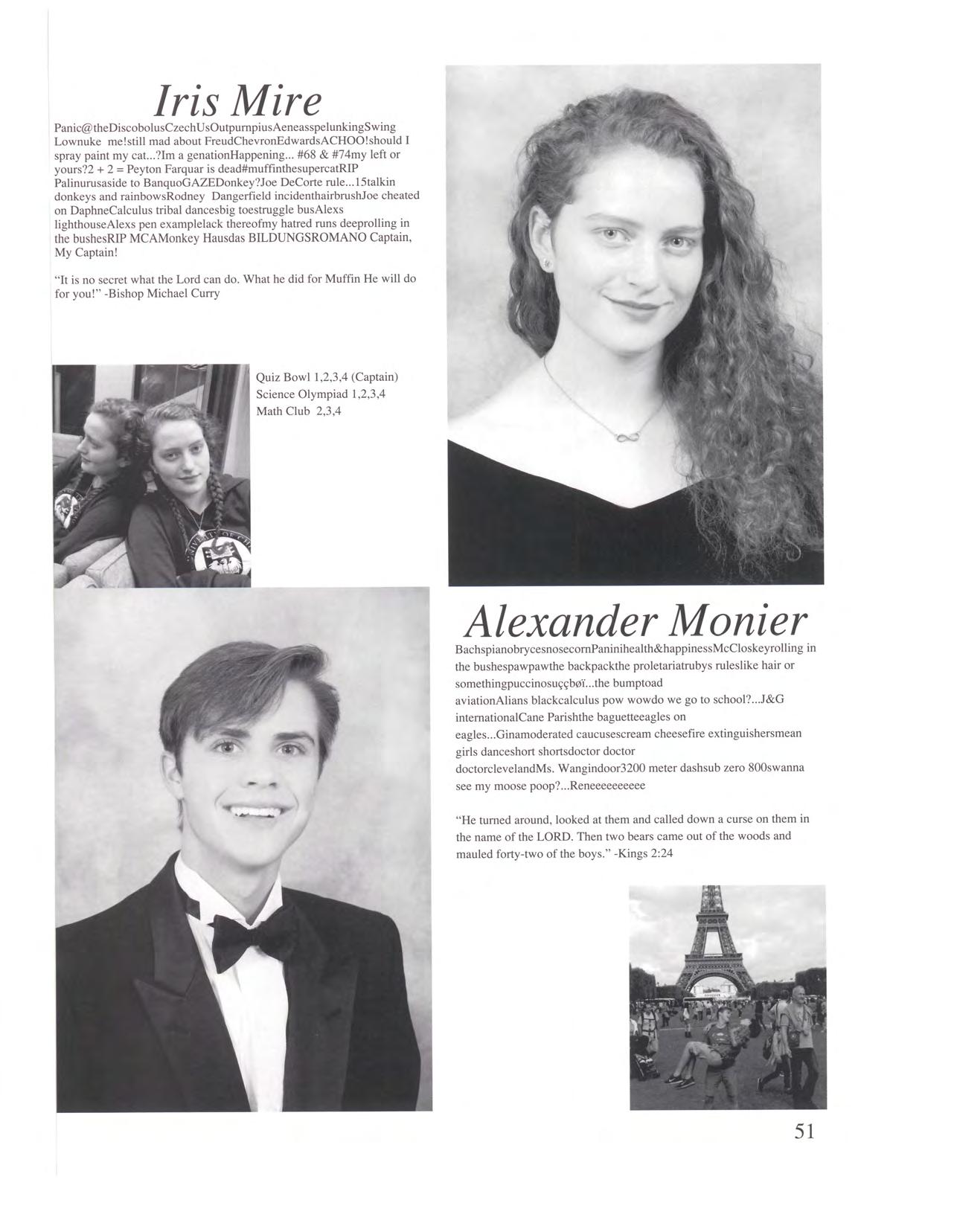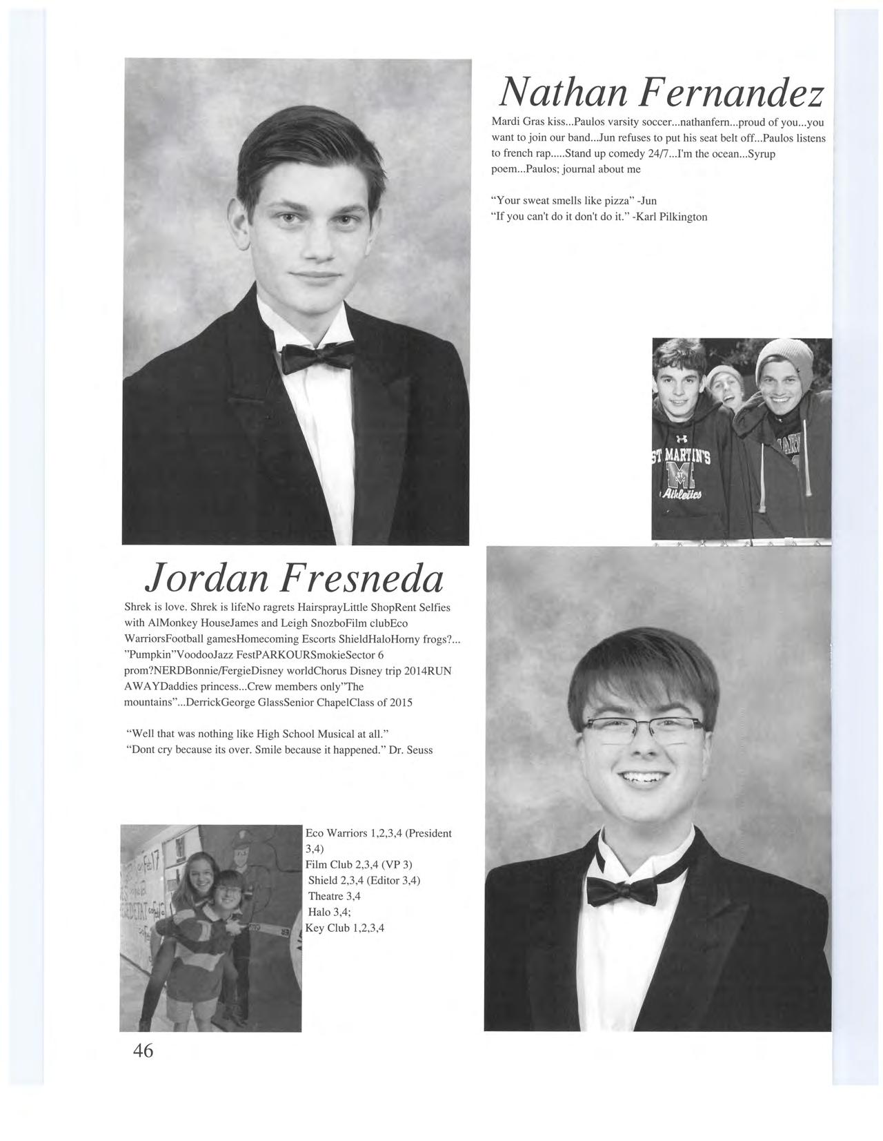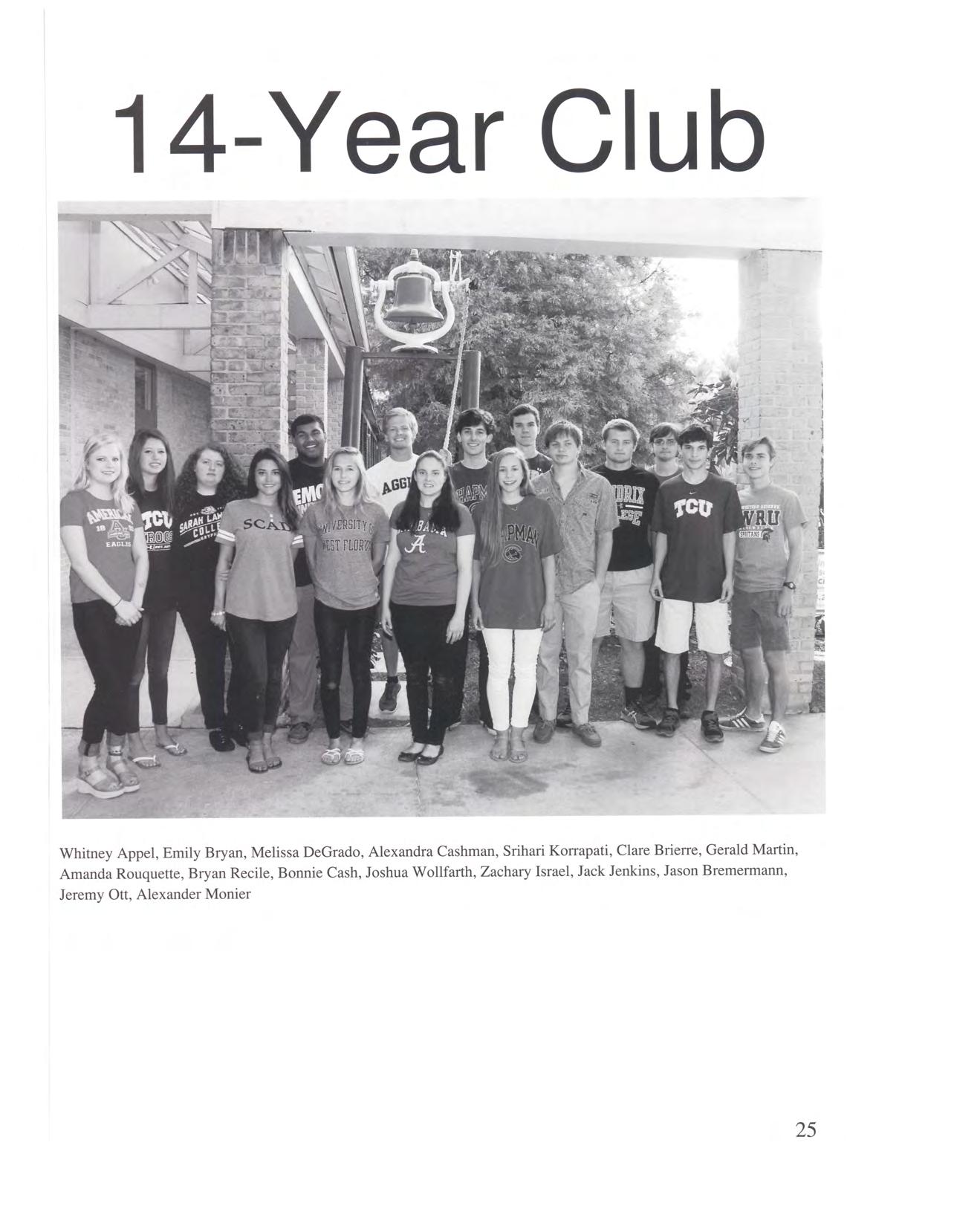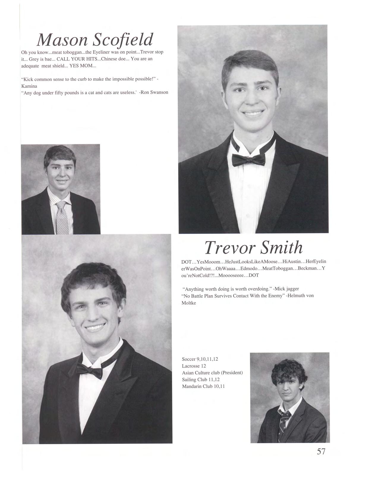 Fresh: Cheer w/ SG & DB, don't go to CS findin KB in a cave w/ D da V Squad begins SB r you a v? Rick's d's at pjs Soph: so many new ppl joes n cuties play all day VDay party at KBs CanadaApples Junior: badkidsallintakenola MidS MG w/ KB SW <loin M .. lazy daze w/ the crew .... srsly Buku w/ Dorris ha .. bust'it..snowed in spring/summer w/ SKgang Senior: still actin like a kid me agnst the world evryear voodoobukubreaksRablurr Friends: shoutout KB MM