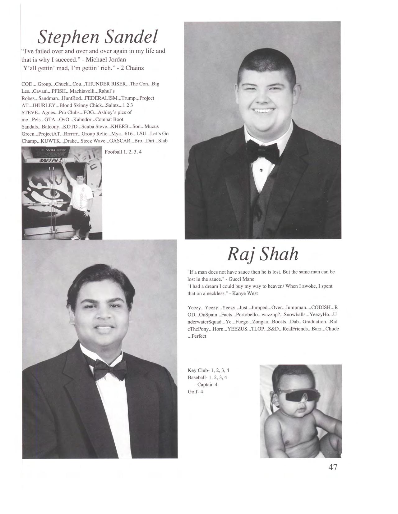 T ... Rah ul&TheTrashCan . .. Eniola&TheB arn ... Study Squad .. . Kev i n&Annie StephenSandel GigivsSmoothieKing Stelly'sSpani shClass HCCourt. SeniorRetreat. " StrandedOnMetRoad" As hley &Sam&Hannah Zito Sweet 16' s