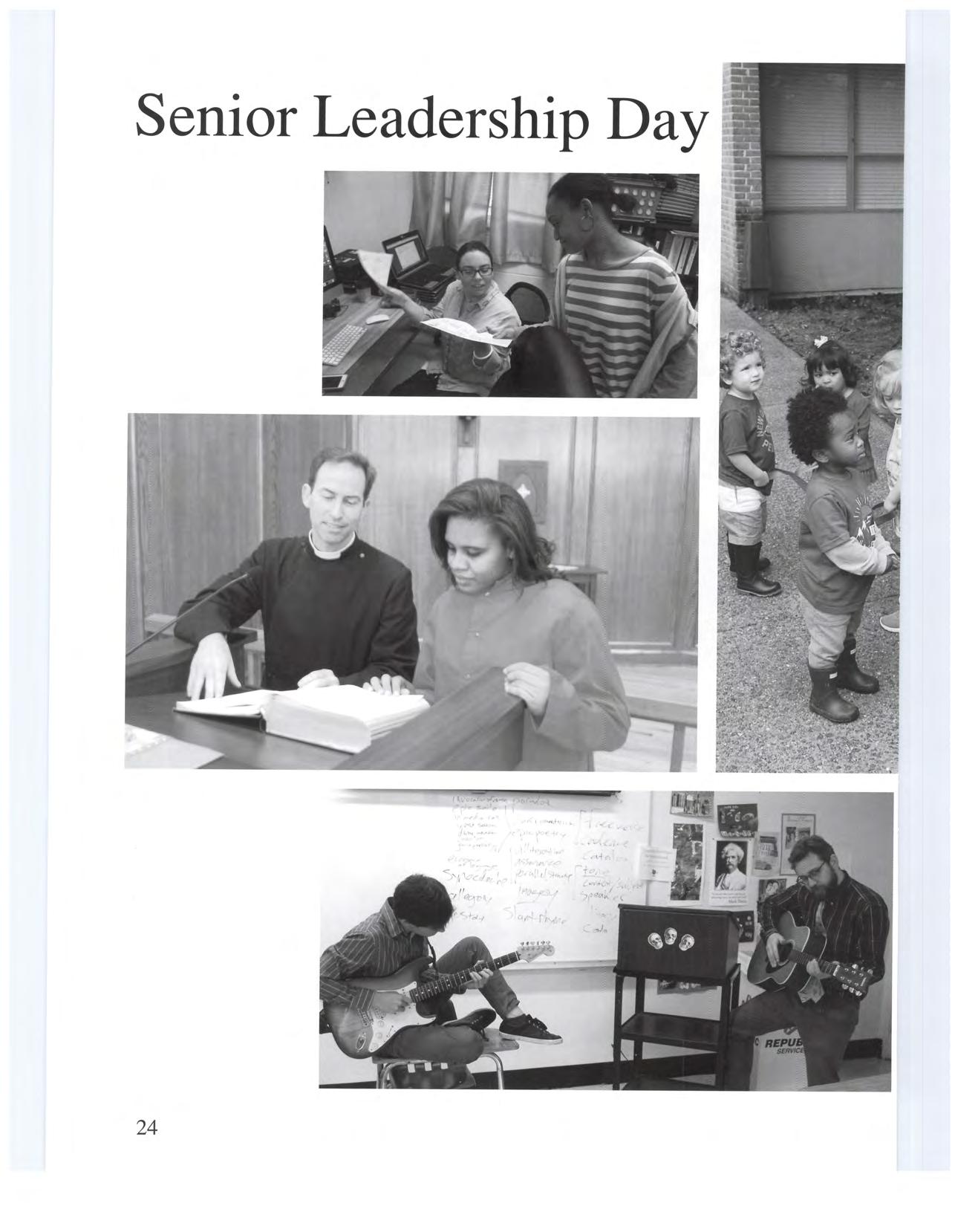 The Student Counci l President, Julia Reggio, and Head of School, Merry Sorrells , announce the winners of the Saint Martin's Day scavenger hunt.