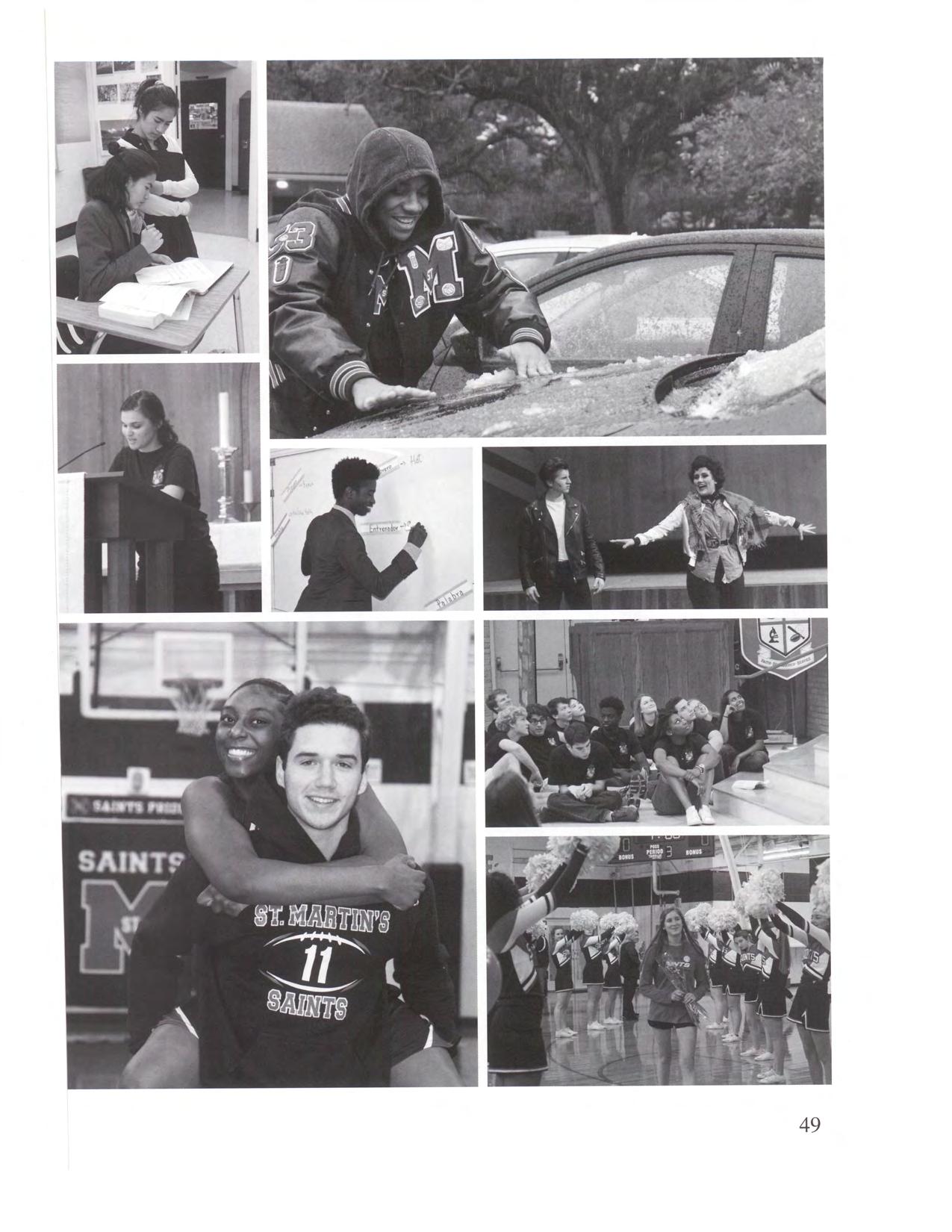 This is our Alma Mater. Forever she will remain. We'll be faithful and keep her honor. We're proud to claim her name. No matter where e're life's cares may drive us, her teachings will be there to guide us. Long live our dear St. Martin's that we cherish and we love.
