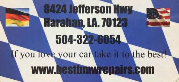 SCOTT W . SM I TH ATTORNEY AT LAW PERSONAL INJURY/ AUTO ACCIDENTS (504) 835-1083 SCOTTWSMITHLAW.COM TheAICCisoneofNewOrleans’ secretmulticulturalgems. Comeexploreournewmuseum, rentourbeautifuleventvenue, takeanItalianlanguageclass,or traveltoItaliawithus! 537S.PetersSt.,NewOrleans (504)522-7294 SID’S EUROPEAN MOTORS 36 37
