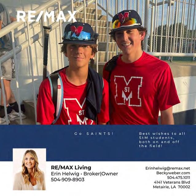 LOVE THE GAME! M MOTIVATION! A APPRECIATION! N - NEVER GIVE UP! N NOTHING BUT THE BEST!! Y YOUR NAN & NANNY LOVES YOU! Look ng for a Real or who can Mot vate you, Appreciate you, Never G ves up and is the best !! Ca Liz Ashe 504 401 4285 or A mee Ashe 504 319 0443 709 Aurora Ave Metair e La 70005 504 837 3000 www demandrea ty com VIEW AND ORDER SPORTS ACTION PHOTOS, TEAM PHOTOS, PORTRAITS, EVENTS AND MORE AT: www.wallyporter.photoreflect.com The Official Photographers of Your StM Saints PICK PACK SHIP Reduced Shipping Rates with All Major Carriers Local Warehousing Available for Any Goods www.EcommSolution.com 34 35