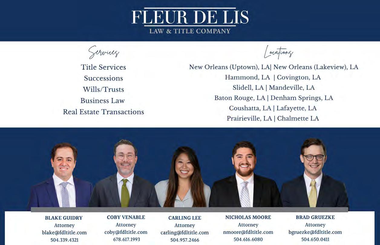Mandina’s Restaurant 3800 CANAL STREET NEW ORLEANS, LOUISIANA WWW MANDINASRESTAURANT COM Karen Mysing o 504.456.1905 | c 225.445.4610 karenm@meleprinting.com www.meleprinting.com DESIGN | PRINT | MAIL Congratulations Timmy Roberts #44! STERLING EVENTS Weddings • Unique Parties • Mitzvahs RACHEL BLACKMAN FRANK 203-957-1776 RACHELBLACKMANFRANK@GMAIL.COM REAL INGREDIENTS. AUTHENTIC FALVORS.NEW DINNER MIXES A STORE NEAR YOU AT CAMELLIABRAND.COM STM Sprots Program Ad Camellia Dinner Mixes 6.6.2022.pdf 2 6/7/22 12:34 PM REAL INGREDIENTS. AUTHENTIC FALVORS.NEW DINNER MIXES GET RECIPES, SHOP ONLINE OR FIND A STORE NEAR YOU AT CAMELLIABRAND.COM C M Y CM MY CY CMY K STM Sprots Program Ad Camellia Dinner Mixes 6.6.2022.pdf 2 6/7/22 12:34 PM REAL INGREDIENTS. AUTHENTIC FALVORS.NEW DINNER MIXES GET RECIPES, SHOP ONLINE OR FIND A STORE NEAR YOU AT CAMELLIABRAND.COM CM CMY STM Sprots Program Ad Camellia Dinner Mixes 6.6.2022.pdf 2 6/7/22 12:34 PM 38 39