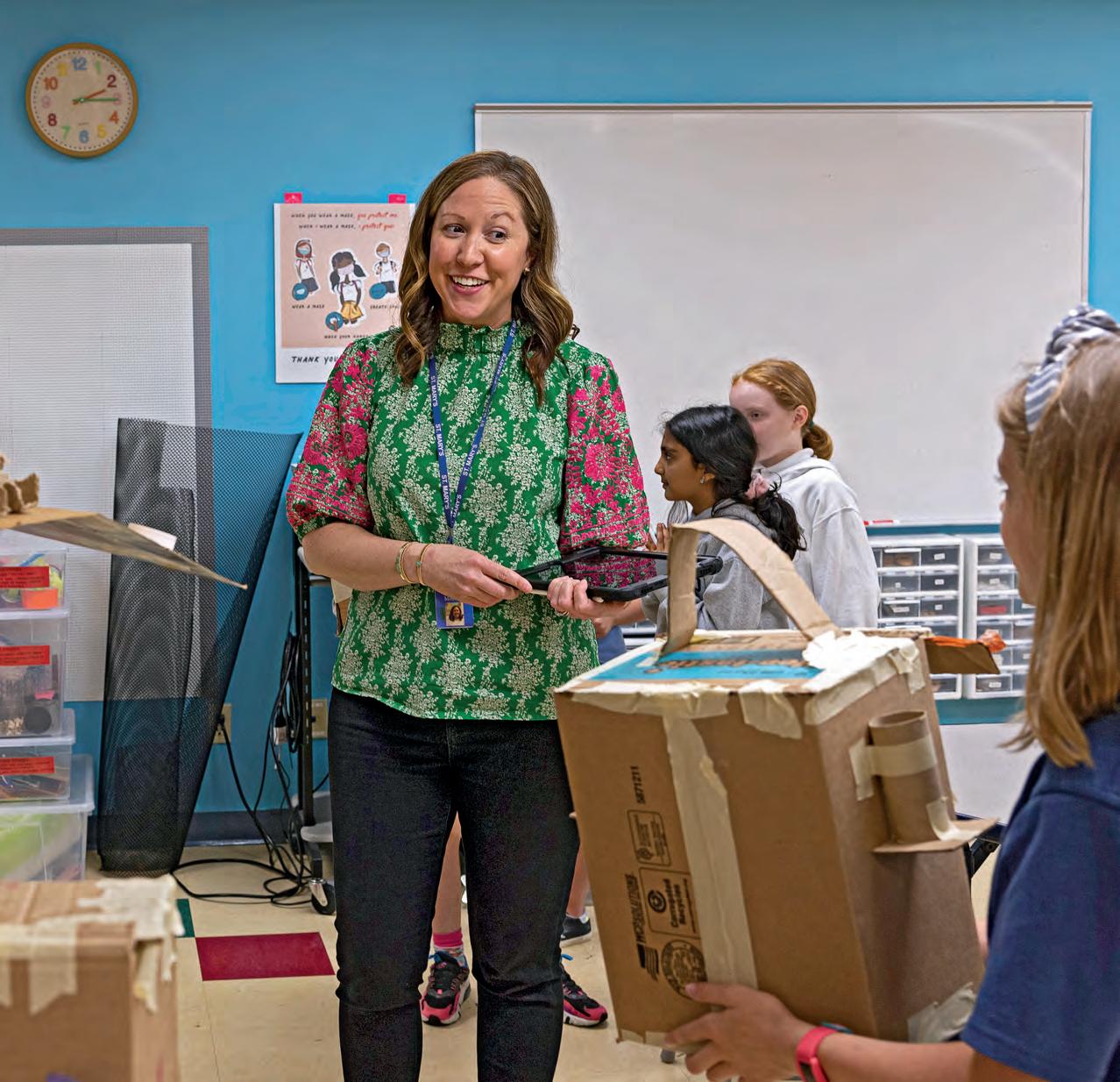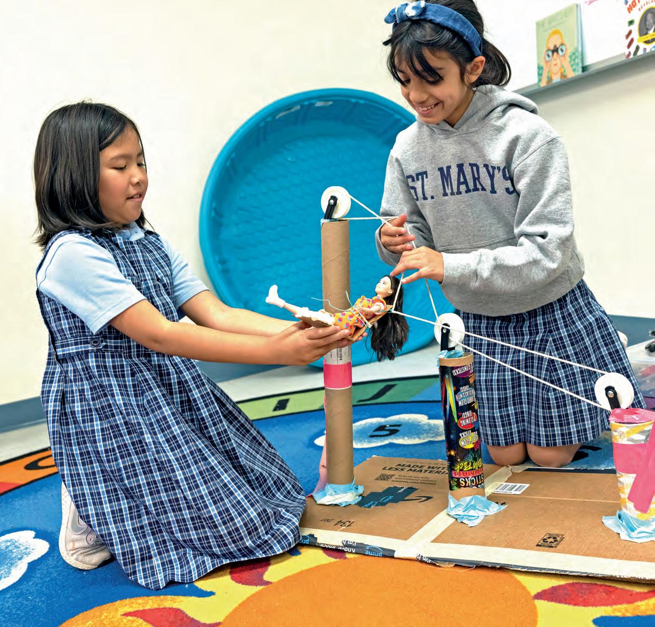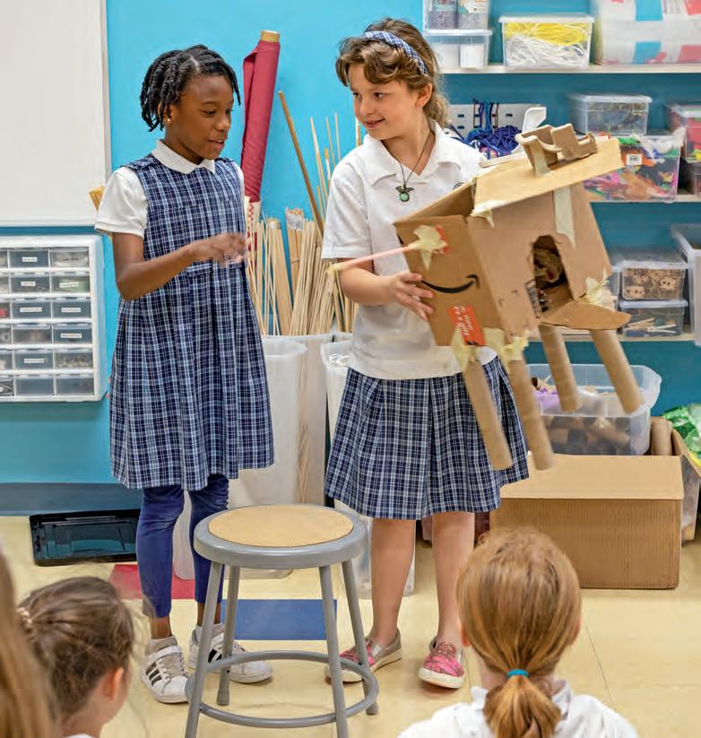 (Above) In a project inspired by the concept of STEMpathy, the 2nd grade brainstormed solutions to real-world challenges. The students worked with Science Teacher Carrie Ruhland and Lower School Counselor Lauren Mitchell to build a model of their device.